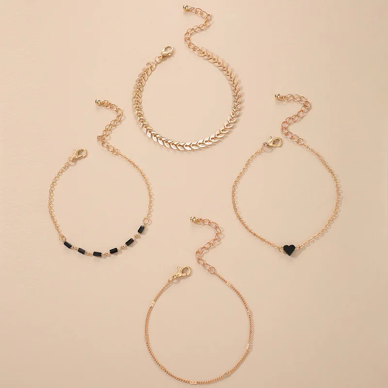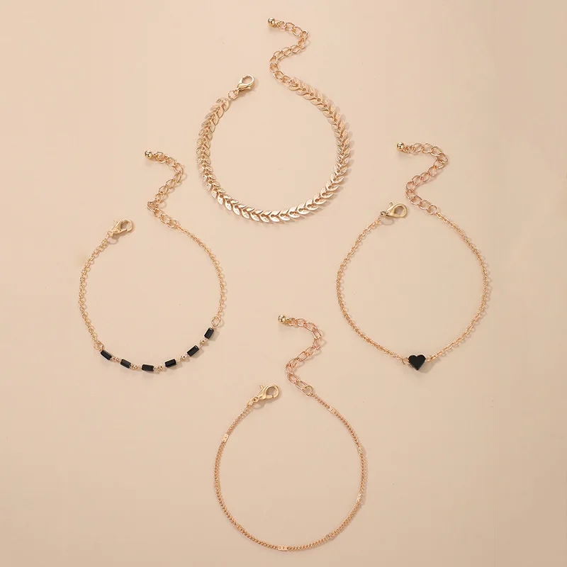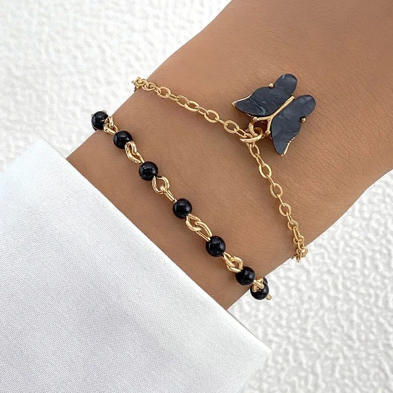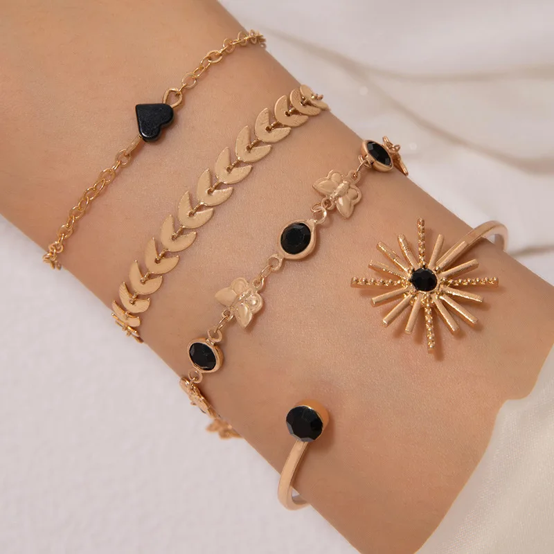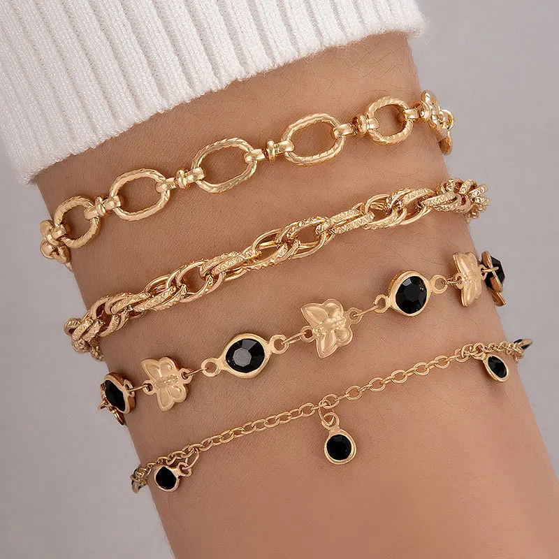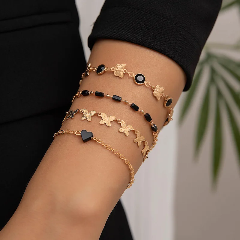 Bohemian Style Black Diamond Bracelet Personalized And Exquisite Butterfly Bracelet 4-Piece Set Chain Link Bracelet