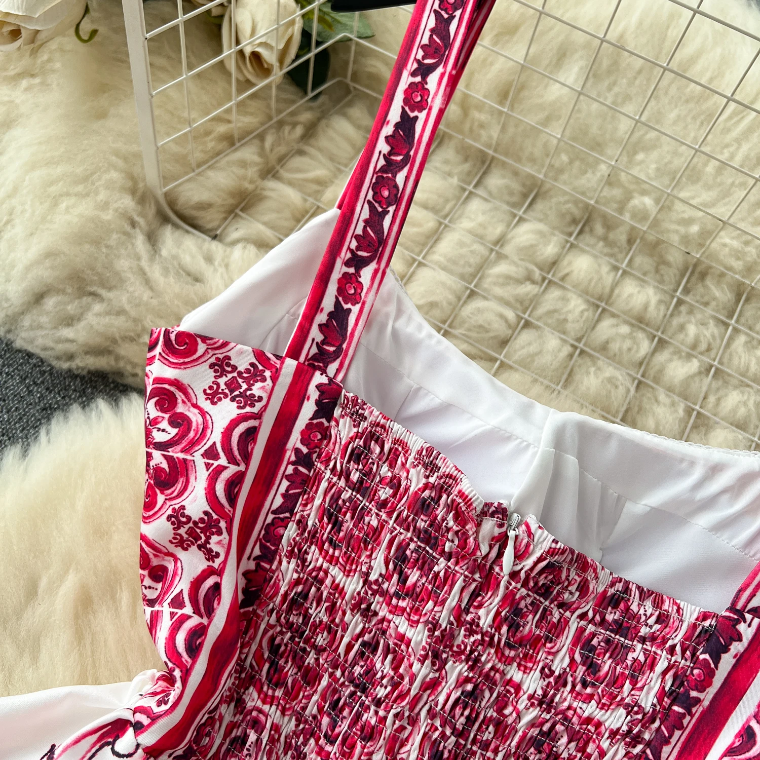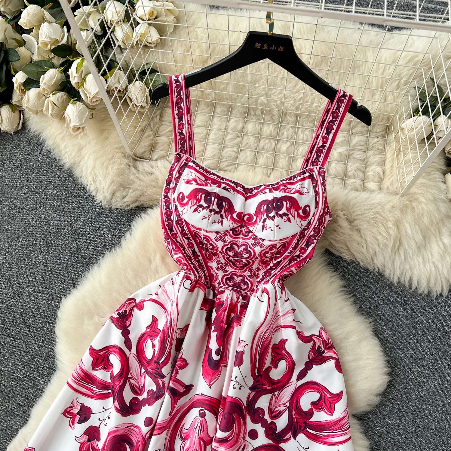 Bohemian style printed dress for women in summer high-end luxurious and elegant large swing long skirt