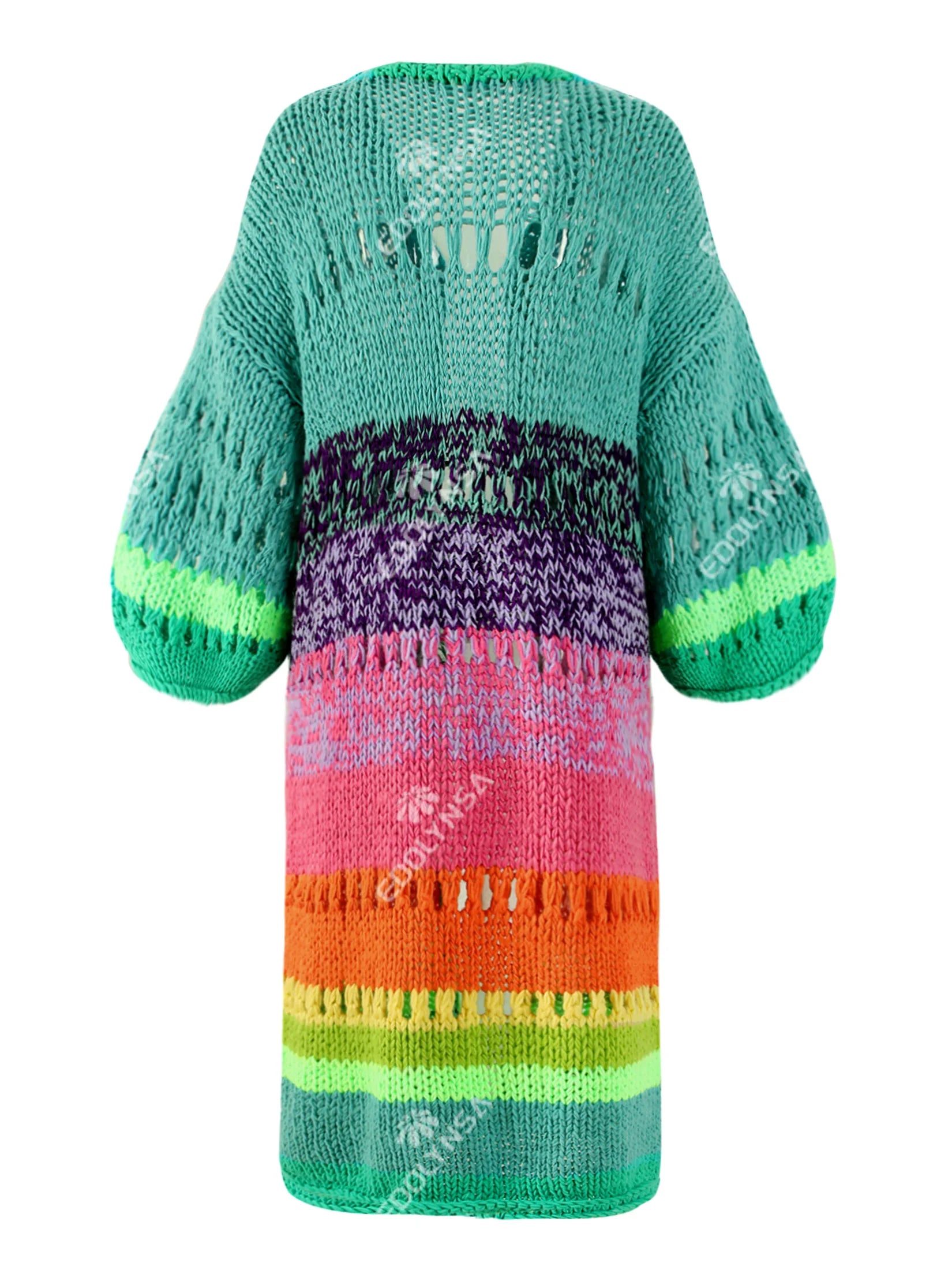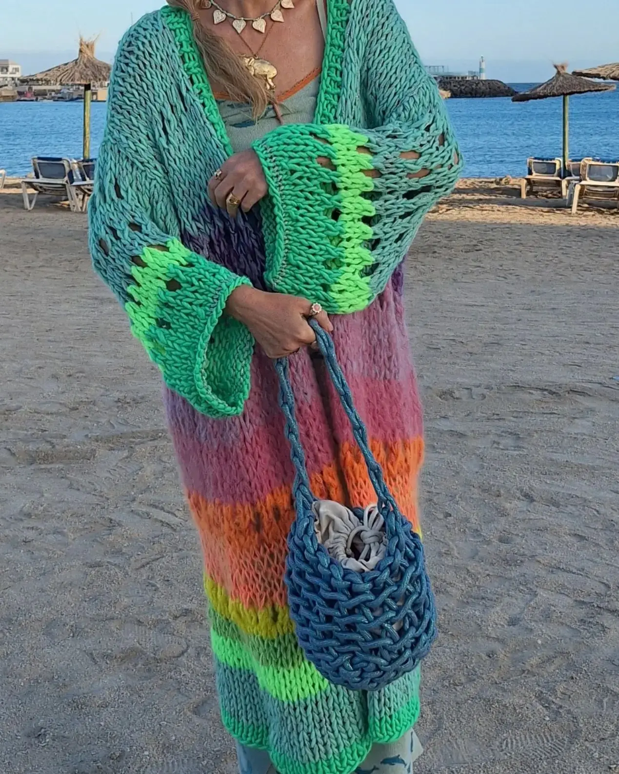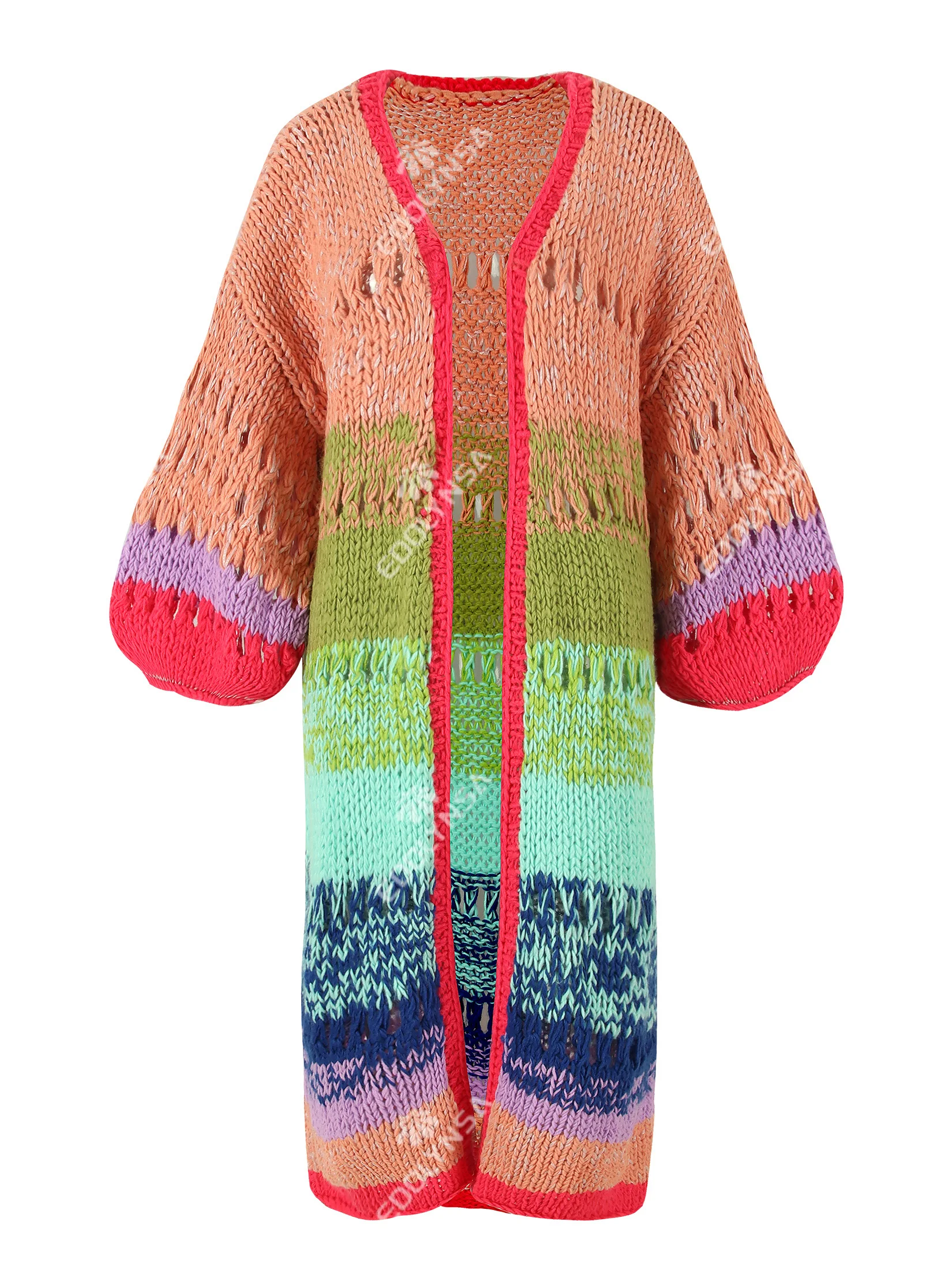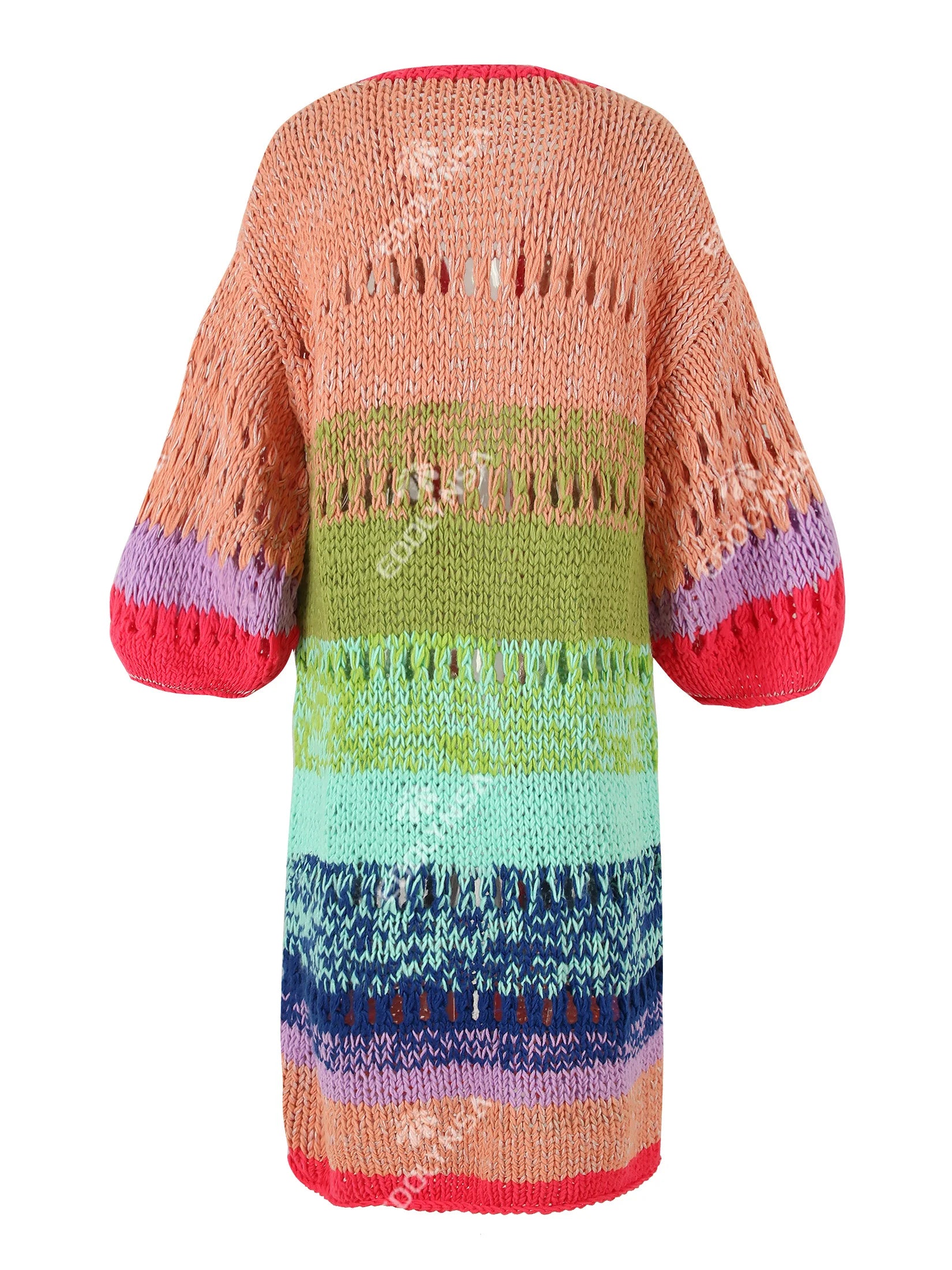Boho Colorful Luxuriously Handknit Bell Sleeve Crochet Loose Kimono Cardigan 2024 Women Fall Winter Coat Beach Coverup Dress K12