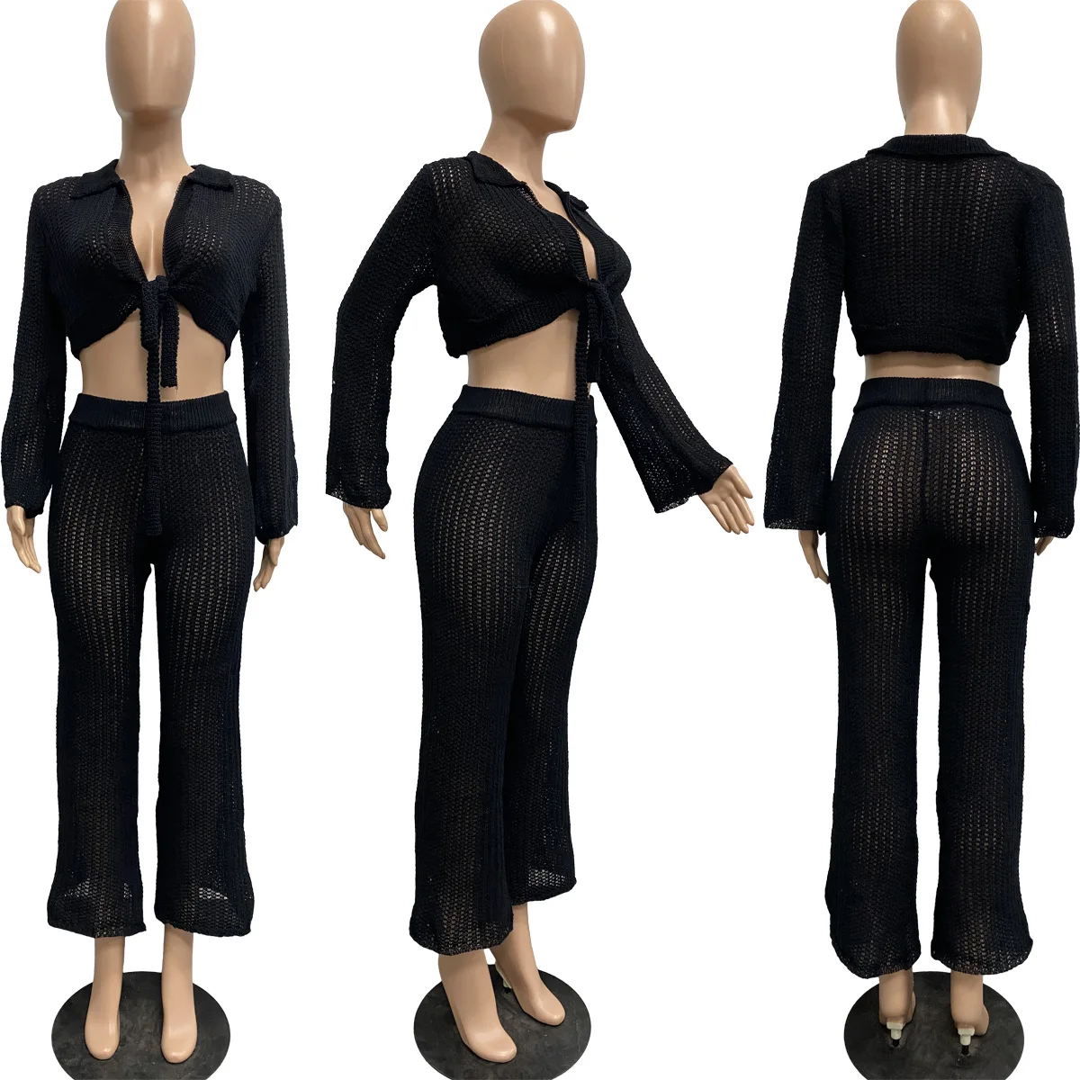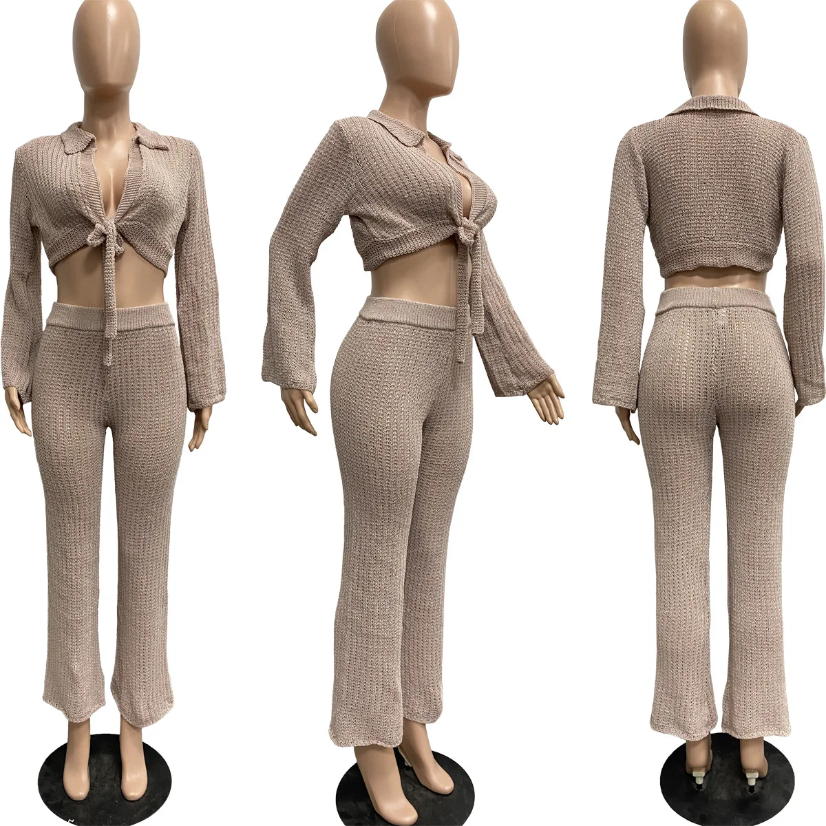 Bomblook C113ST01 2024 Clothes For Women Outfits Solid Tie Up Top With Pencil Pants Sexy Outfits Women Real Knit Two Piece Set