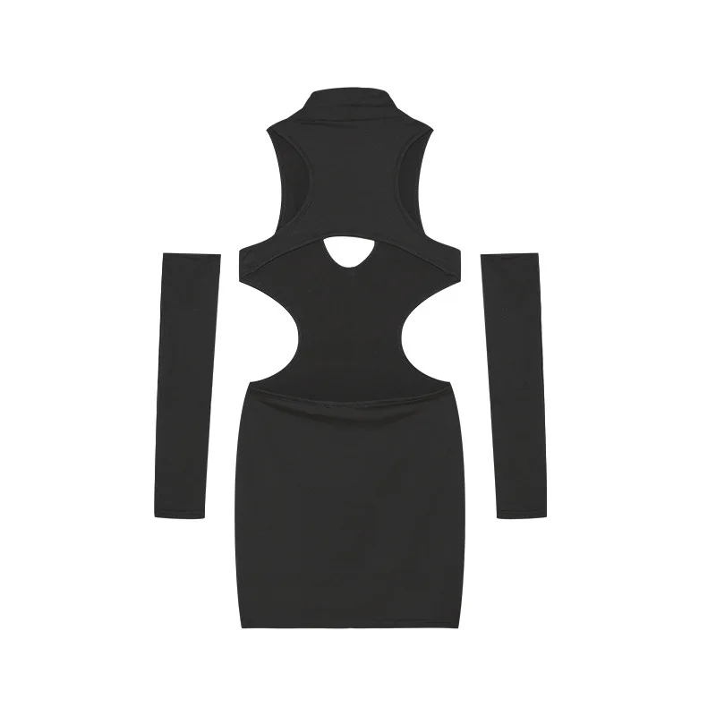 Bomblook C130DS 2024 Spring Sexy Outfits Black Draped Dress For Women Mini Bodycon Dress Hollow Out Dresses