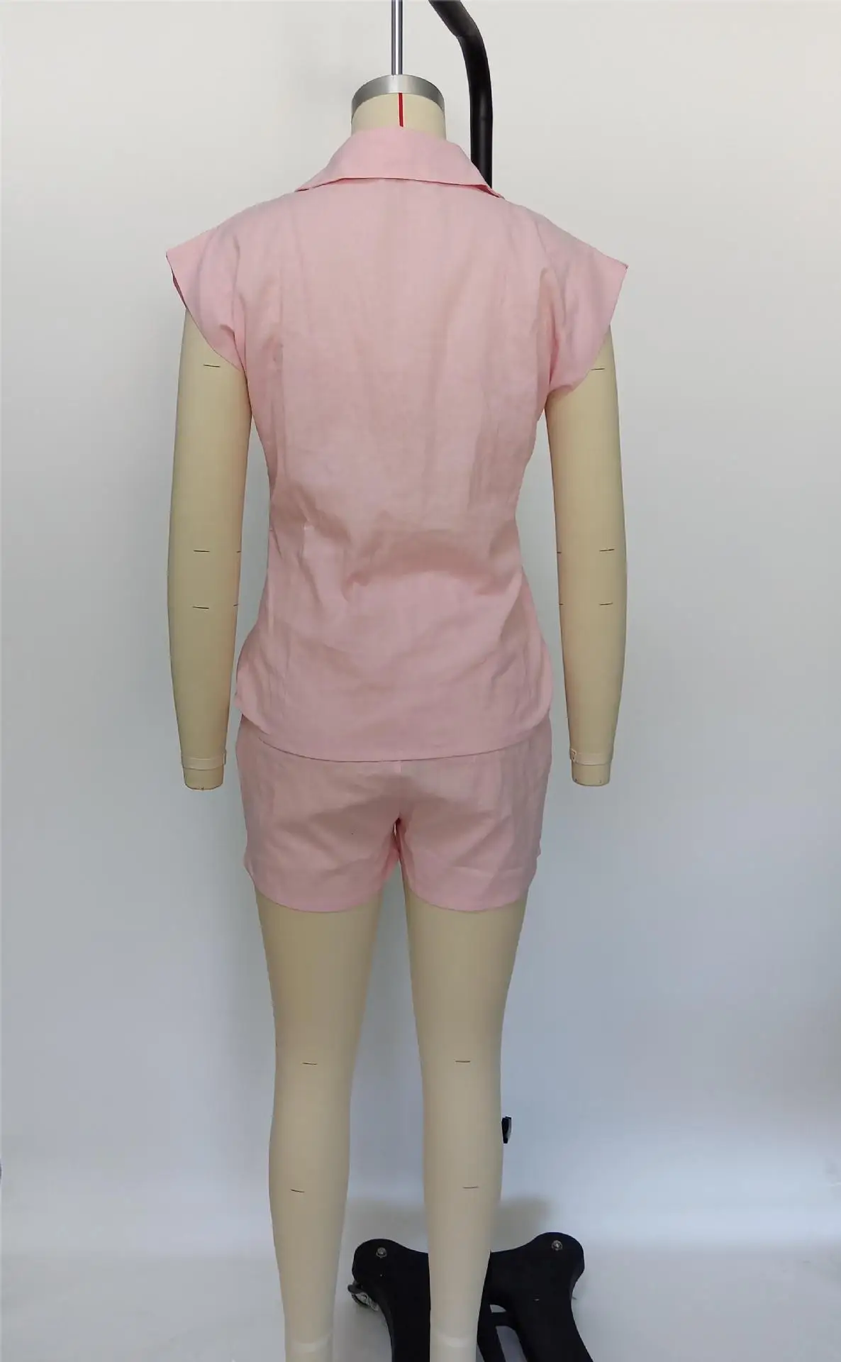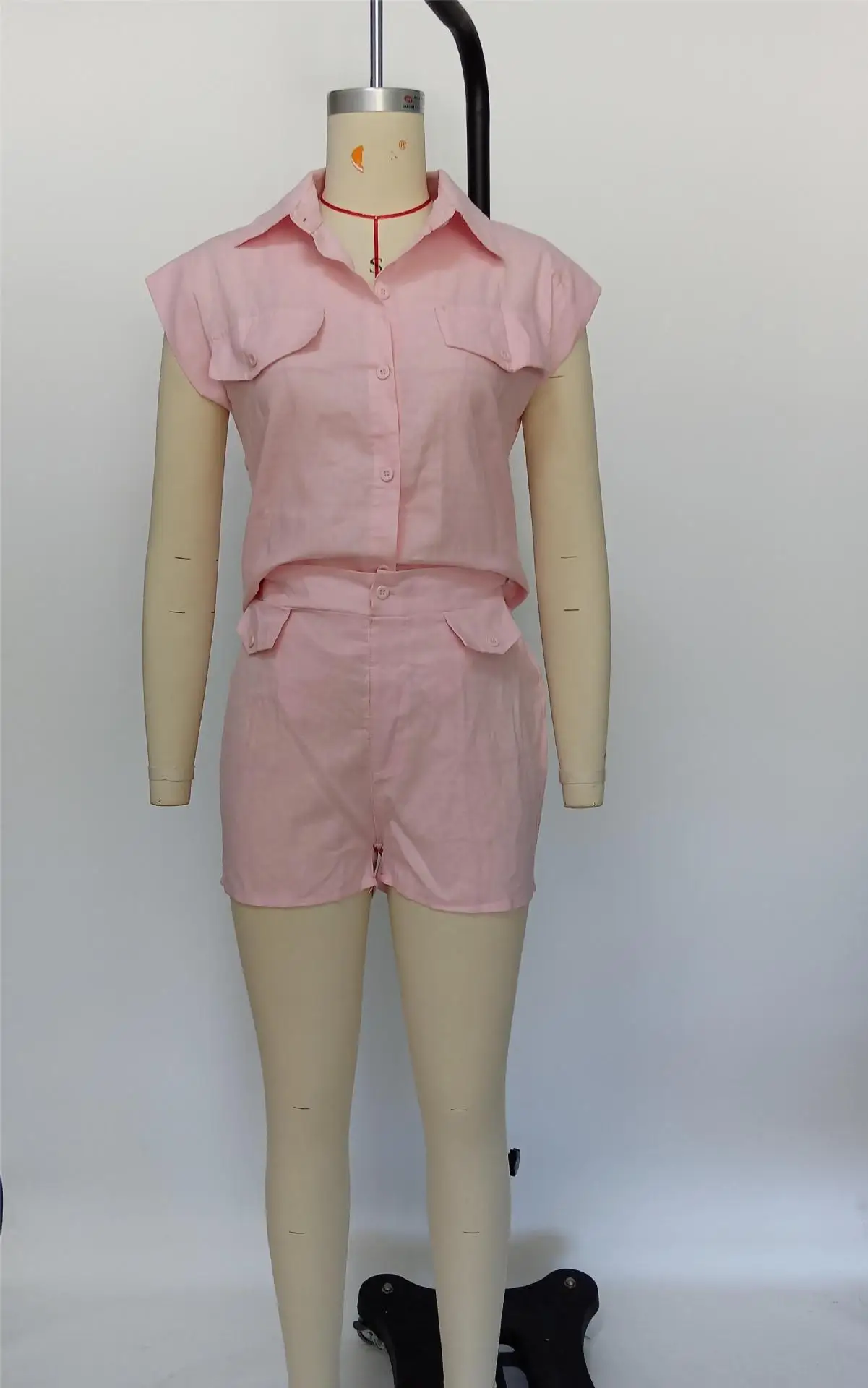 Bomblook C320ST01 Cotton and linen Outfits Solid Color Shirt And Tight Shorts Set Women Casual Suits Women Sets 2024
