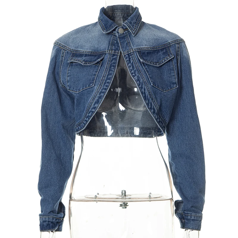 Bomblook K22TP467 2022 new arrivals fashion crop top winter clothes denim jacket woman