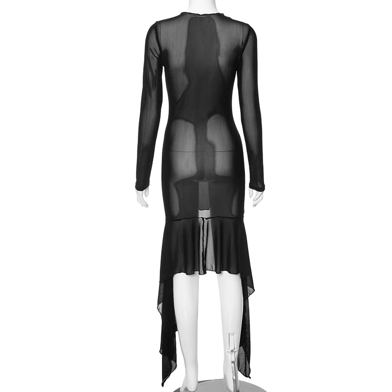 Bomblook K23DS583 2024 Spring Sexy Outfits Dress For Women Sheer Mini Dress With Ruffles Dresses