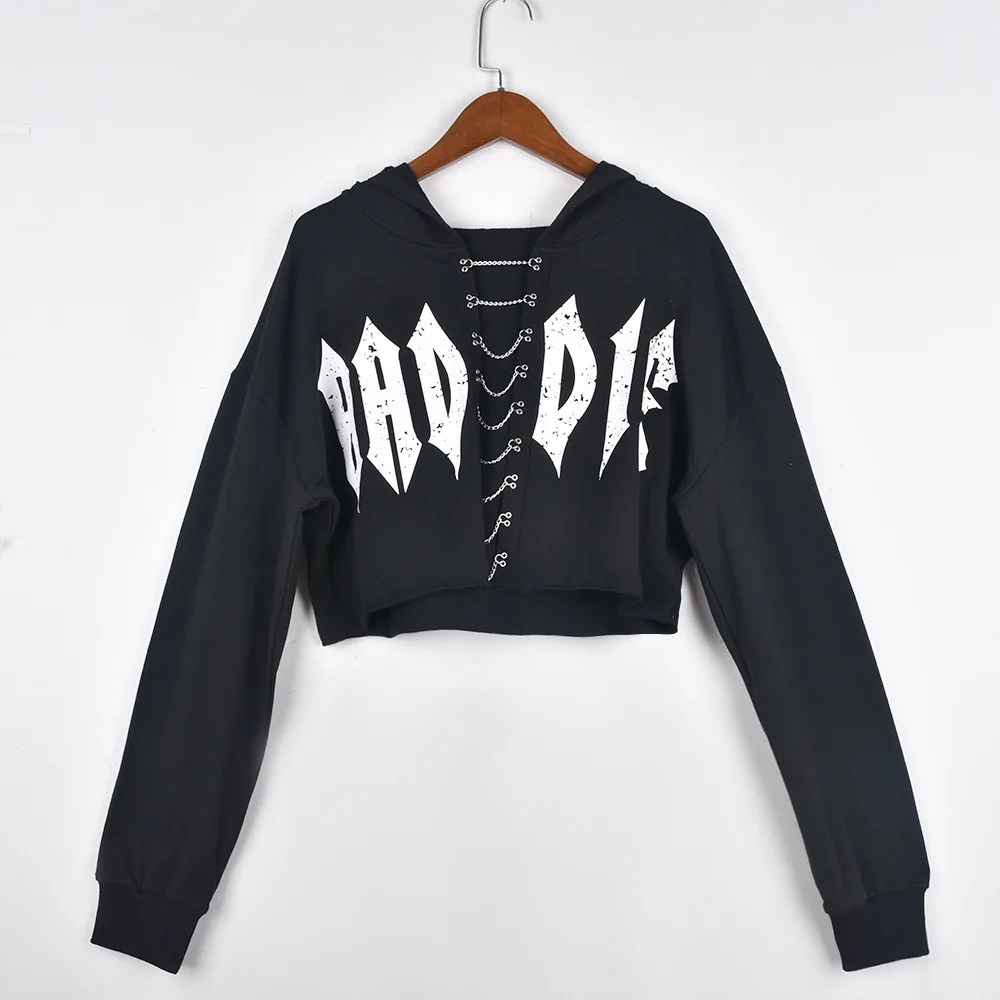Bomblook LCTP41 autumn sexy hollow out digital print tshirt pullover women's hoodies sweatshirt