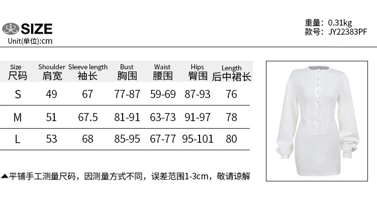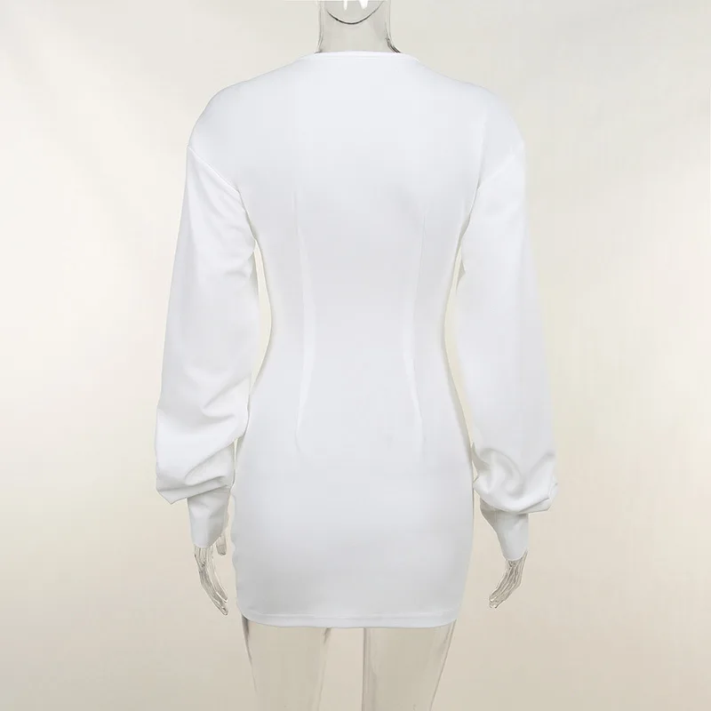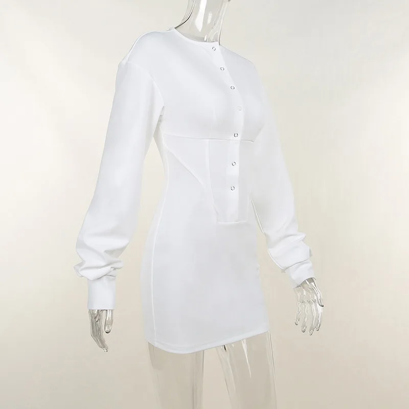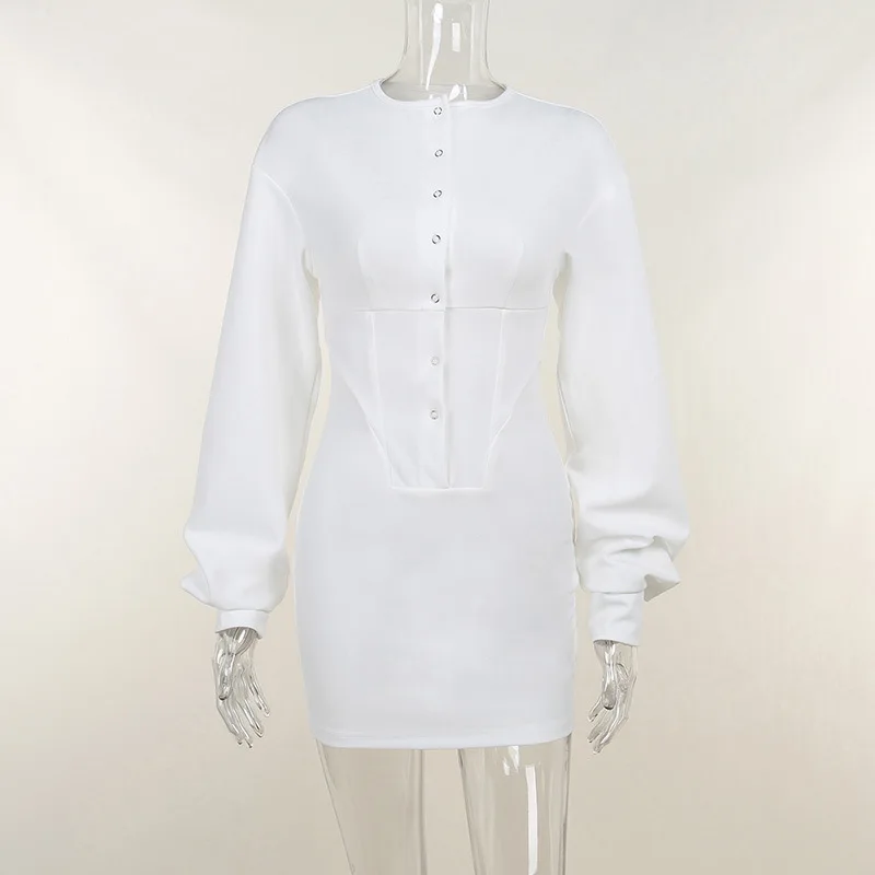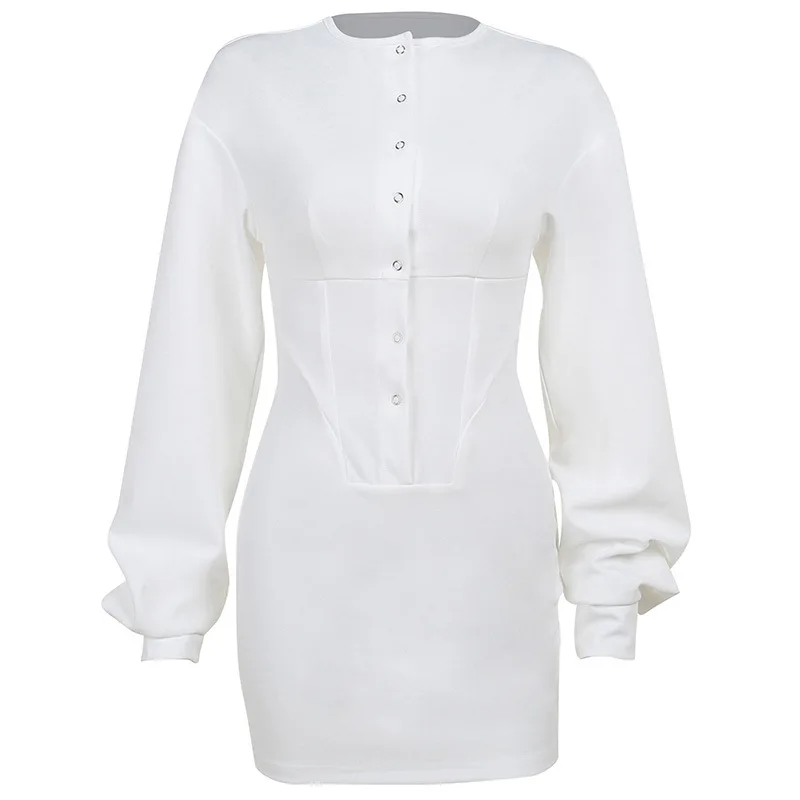 Bomblook QWDS27 Casual Women Classy Corset Dresses Button Down White Shirt Dress Long Sleeve Mini Dress