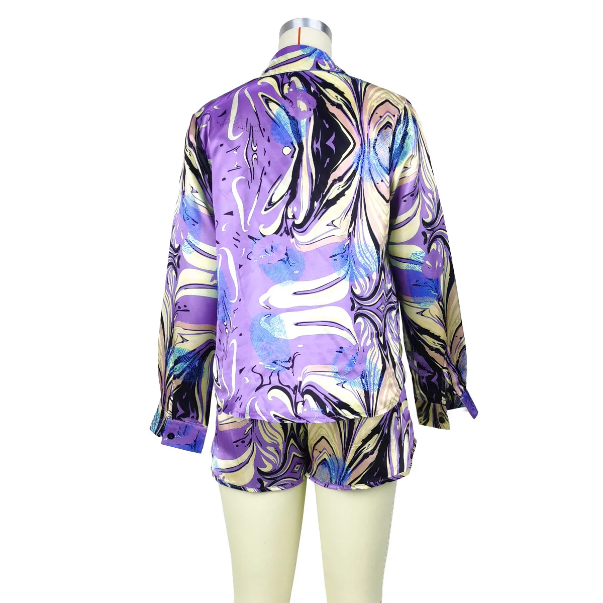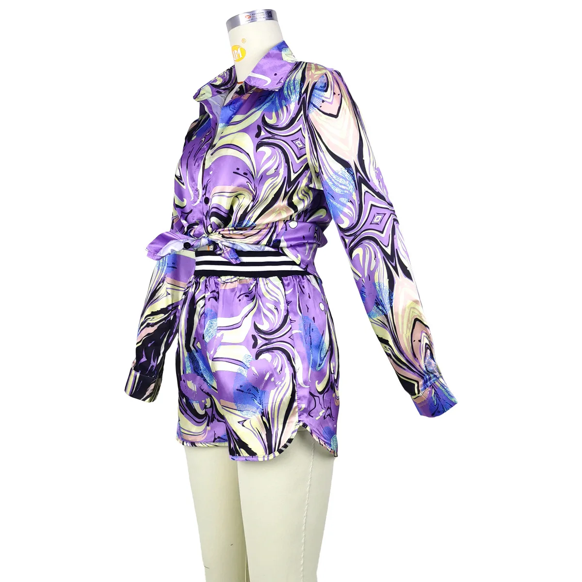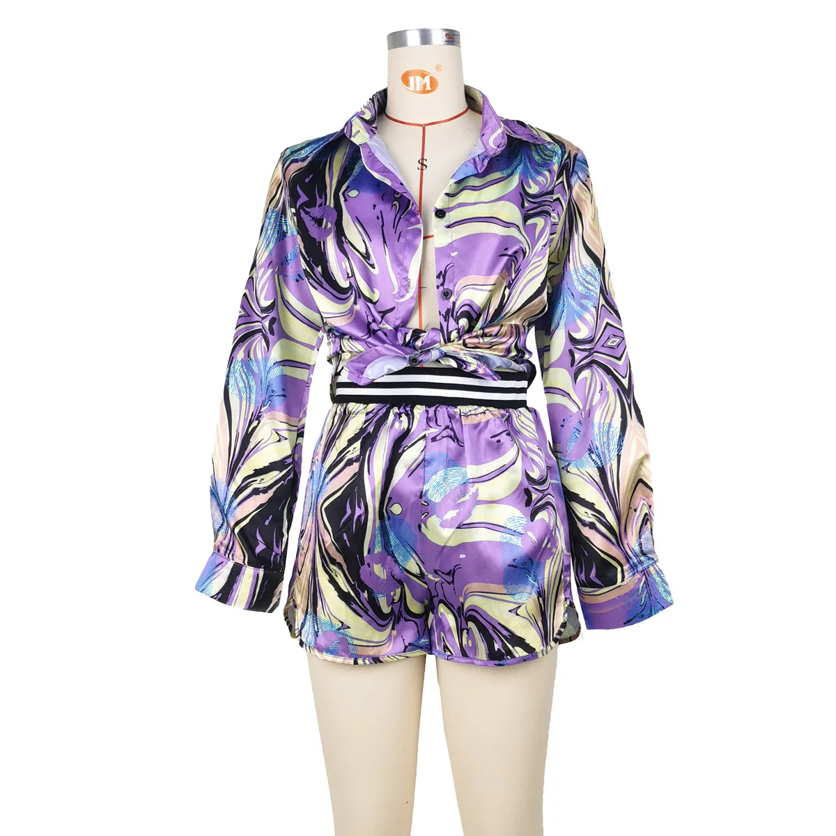 Bomblook QWST33 New Autumn Printed Long Sleeve Shirt Casual Hot Pants Two Piece Set