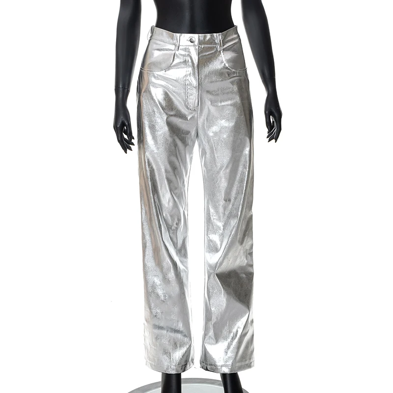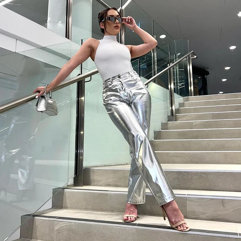 Bomblook X22PT500 2022 Fall Luster Leather Pants Women Casual Trouser Pants Women
