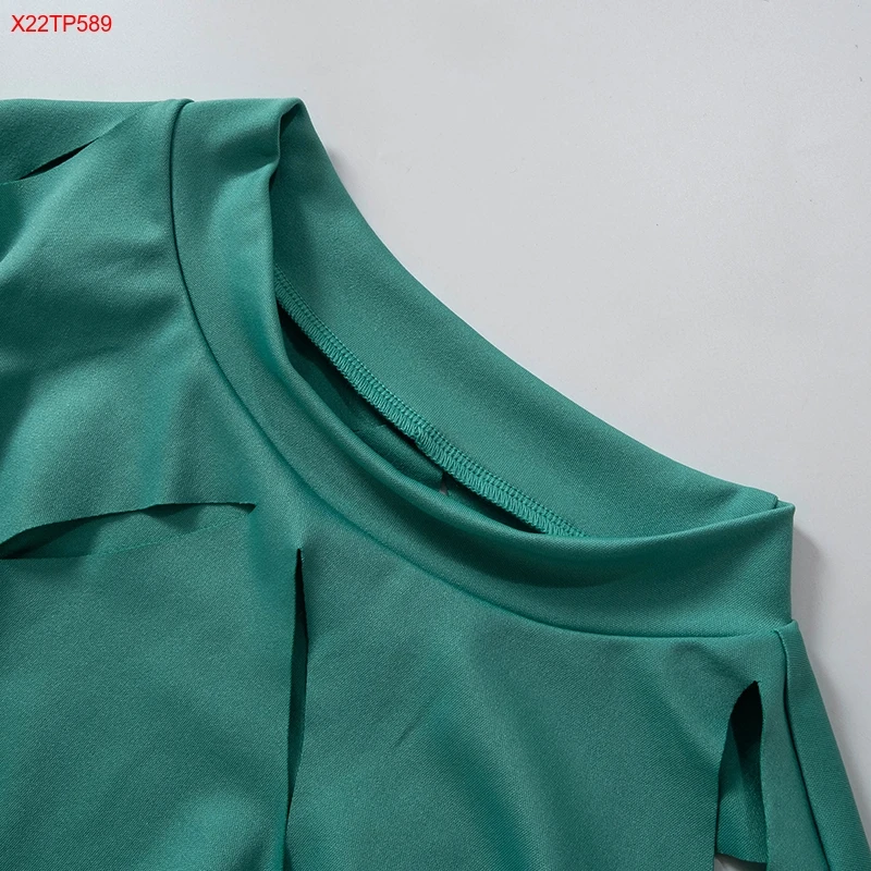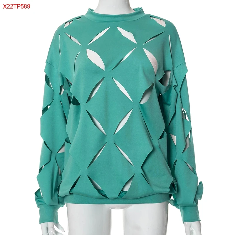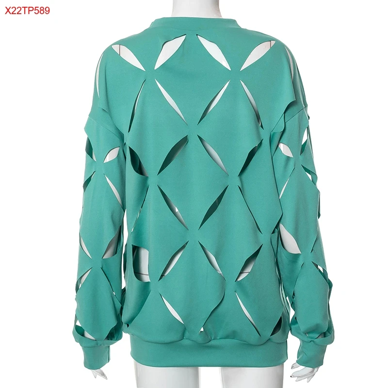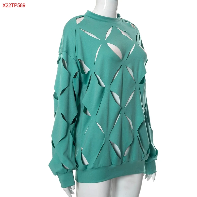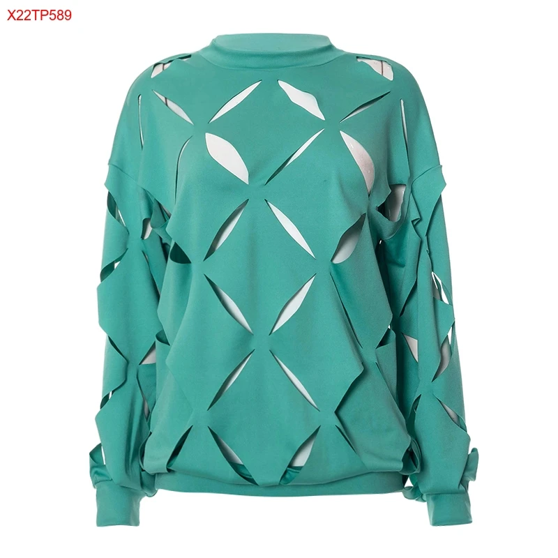 Bomblook X22TP589 New Arrivals O Neck Fashion Loose Blouse Women Long Sleeve Cut Out Top