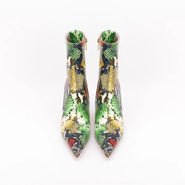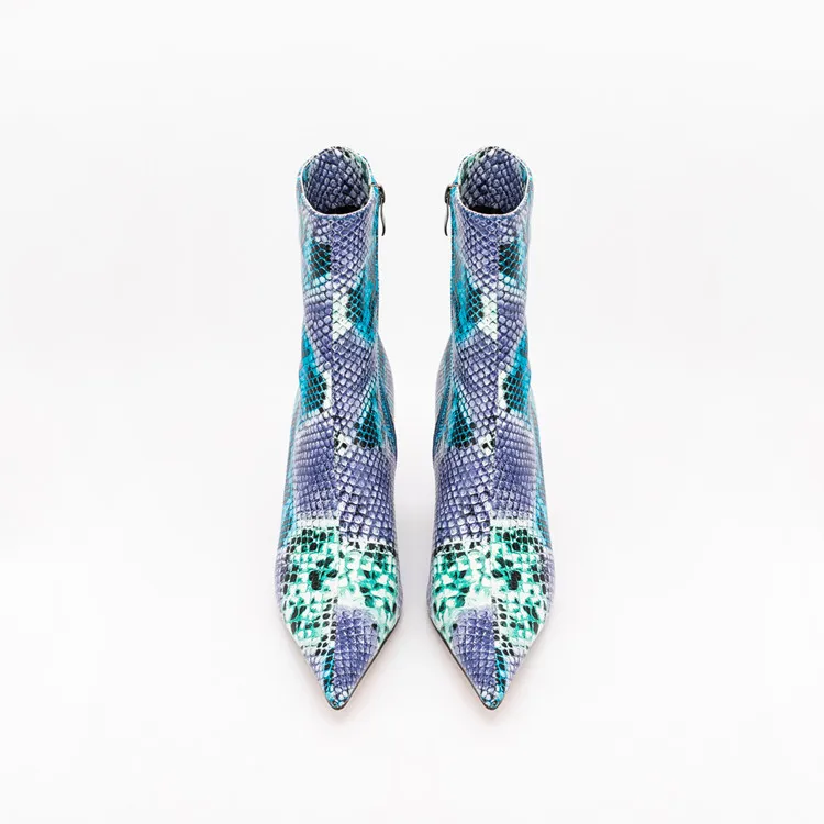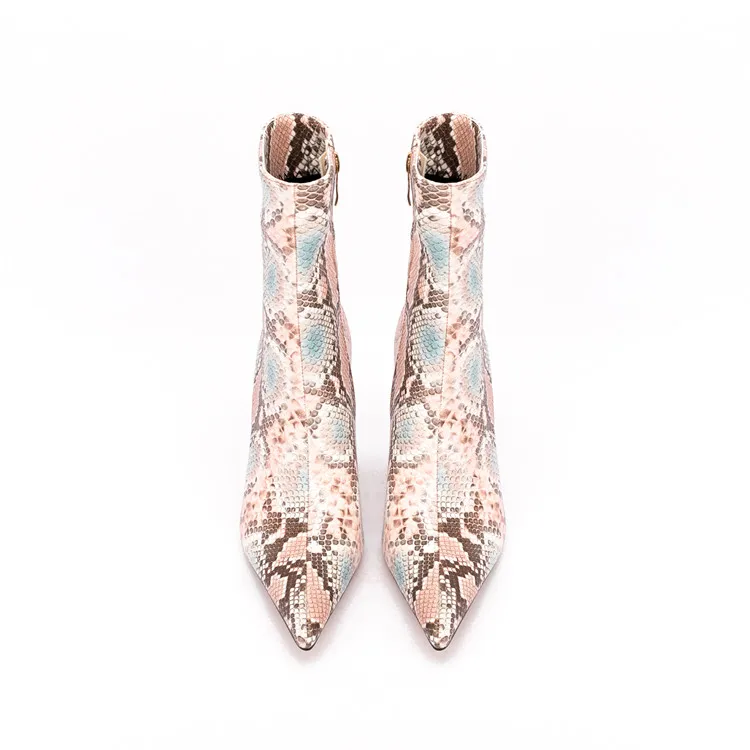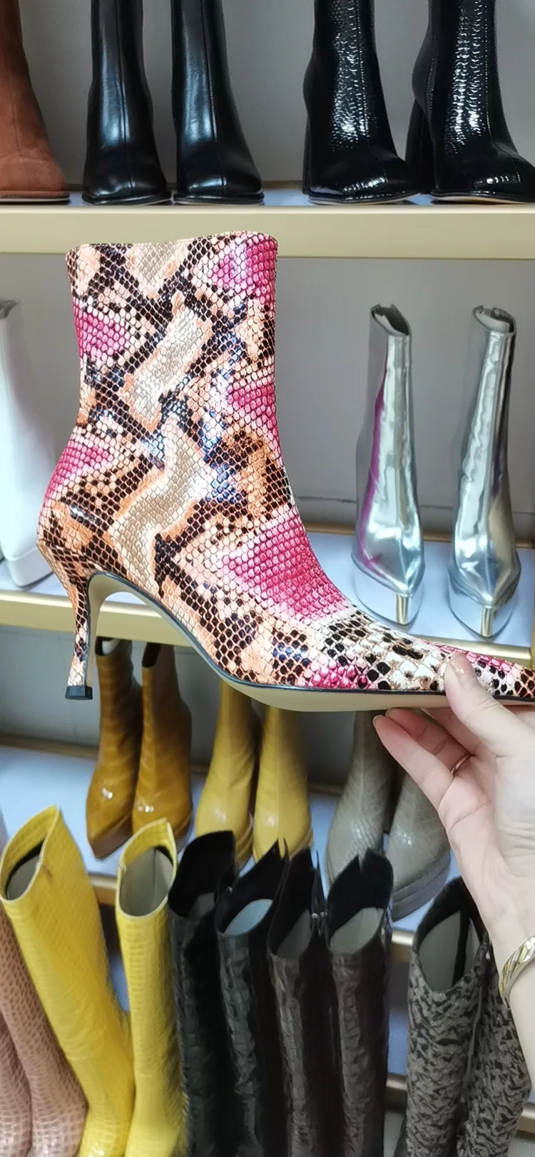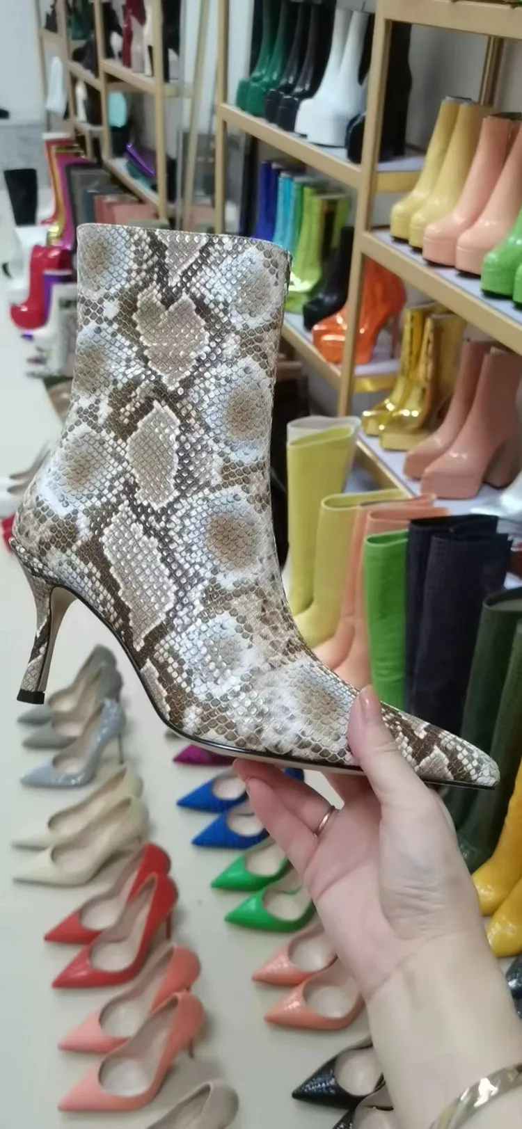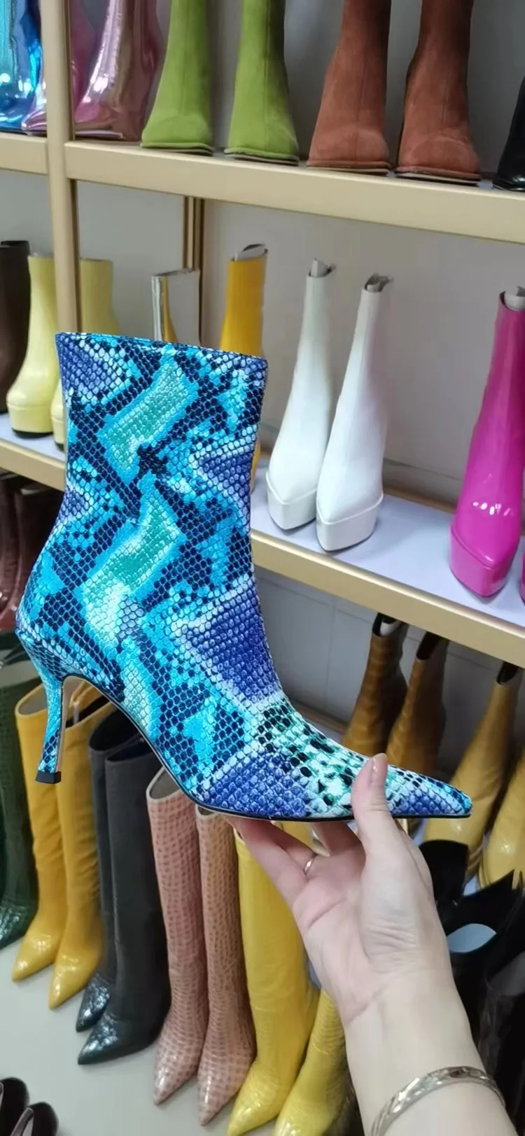 Bottes Femme Fashion Designer Embossed Pu Ladies Pointy Toe Thin Heel Short Boots Women Kitten Heel Ankle Booties