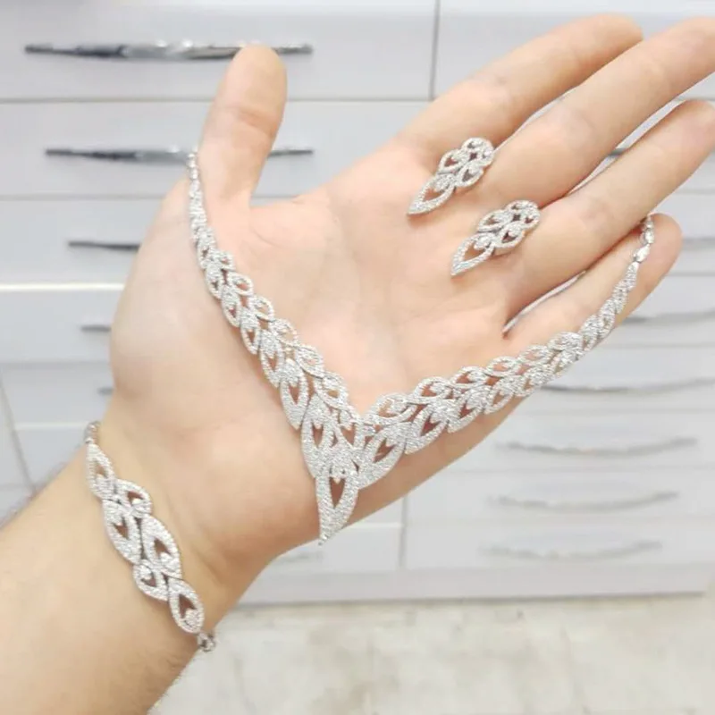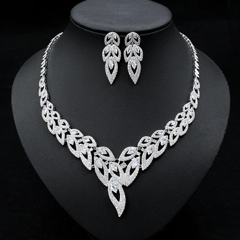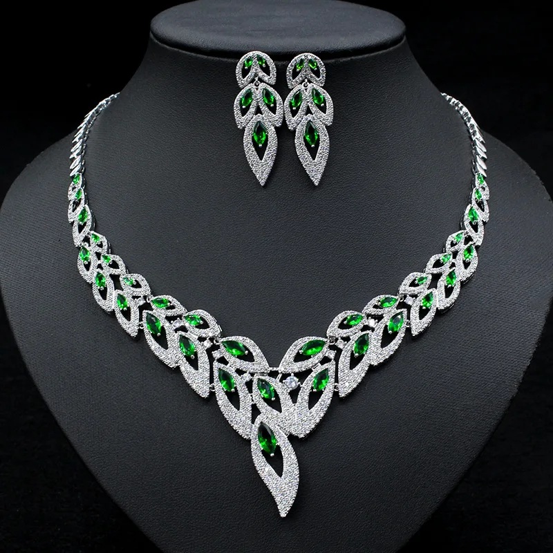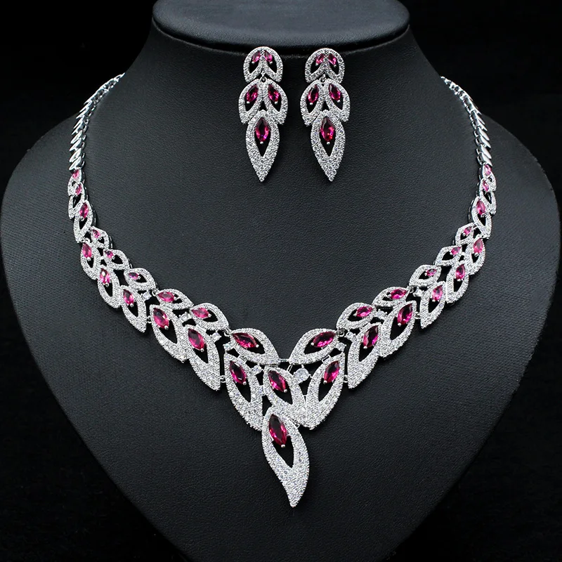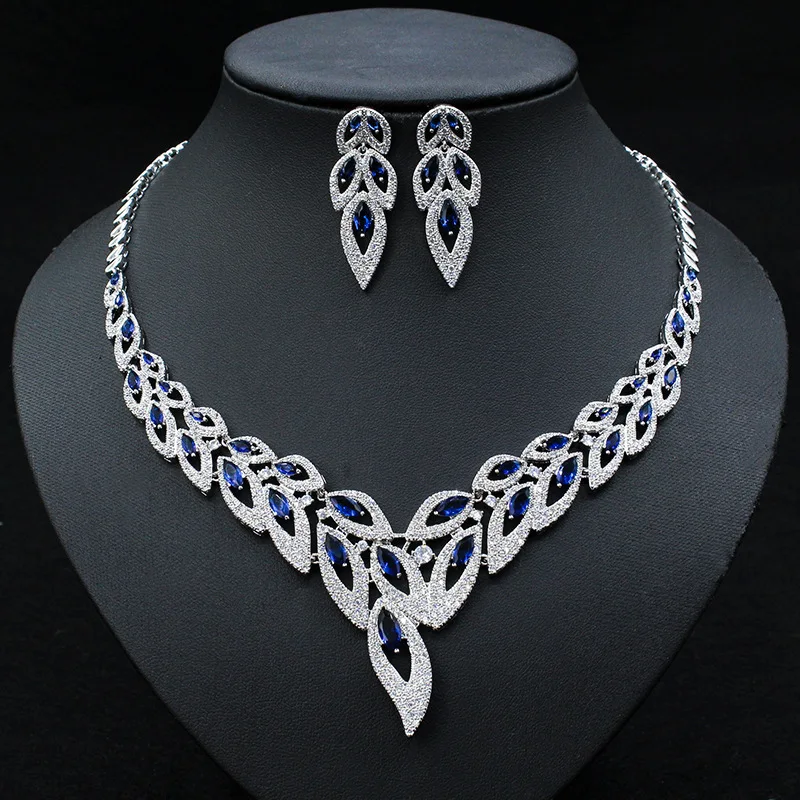 Boutique Geometry Irregular Color Zircon Jewelry Necklace Earrings Women Bride Wedding Engagement Jewelry Set