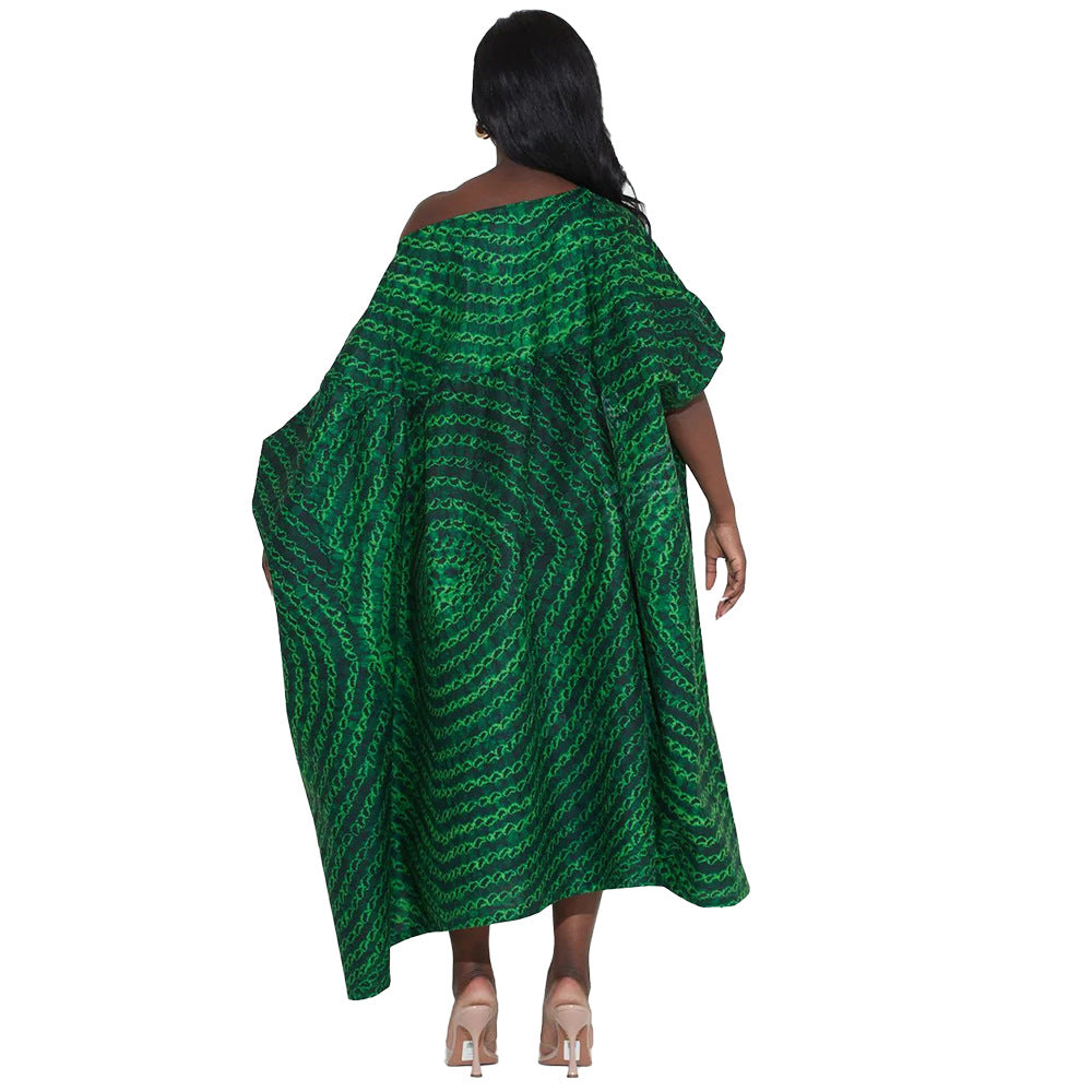 BR3083 New plus size one-line collar fashionable printed high waist dress