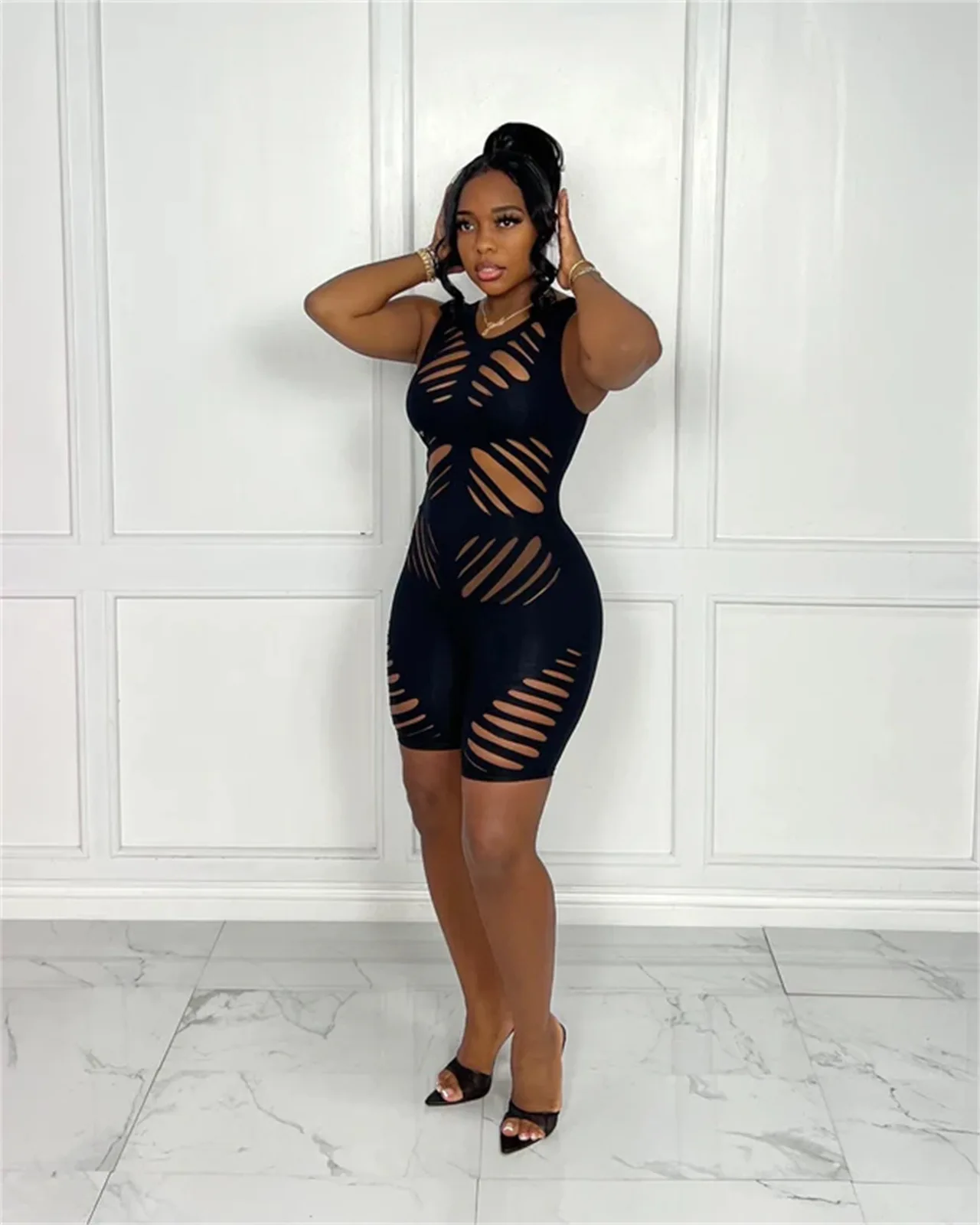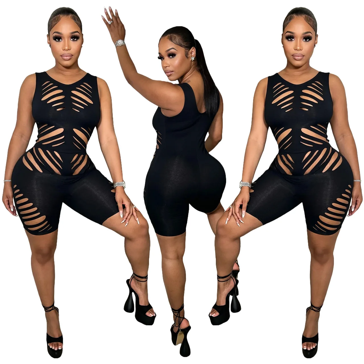 BR3107 women summer hollow-out waist sleeveless vest solid color jumpsuit