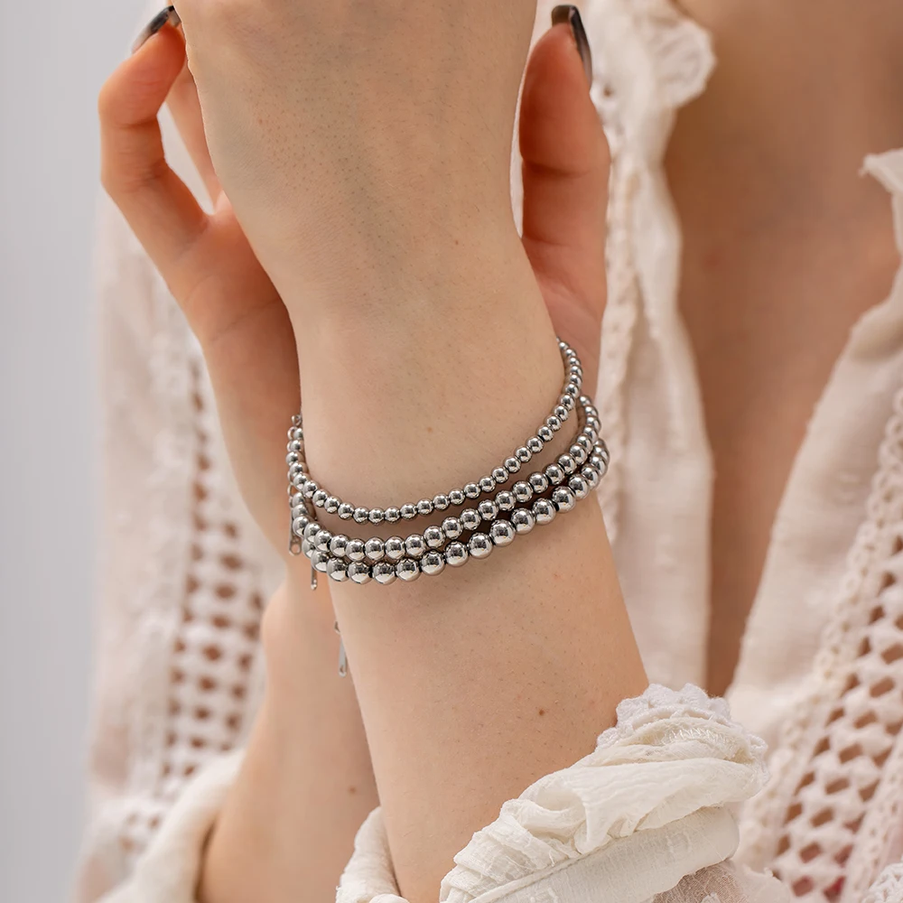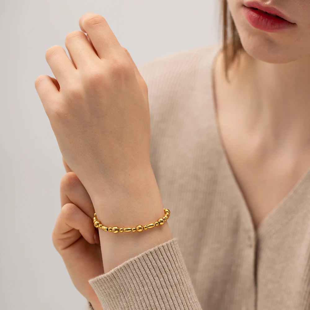 BR991 Minimalist INS 18K Gold Plated Stainless Steel Jewelry Heart Pendant Bead Chain Bracelet for Women