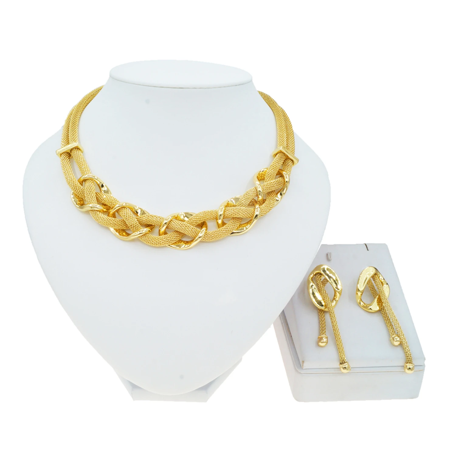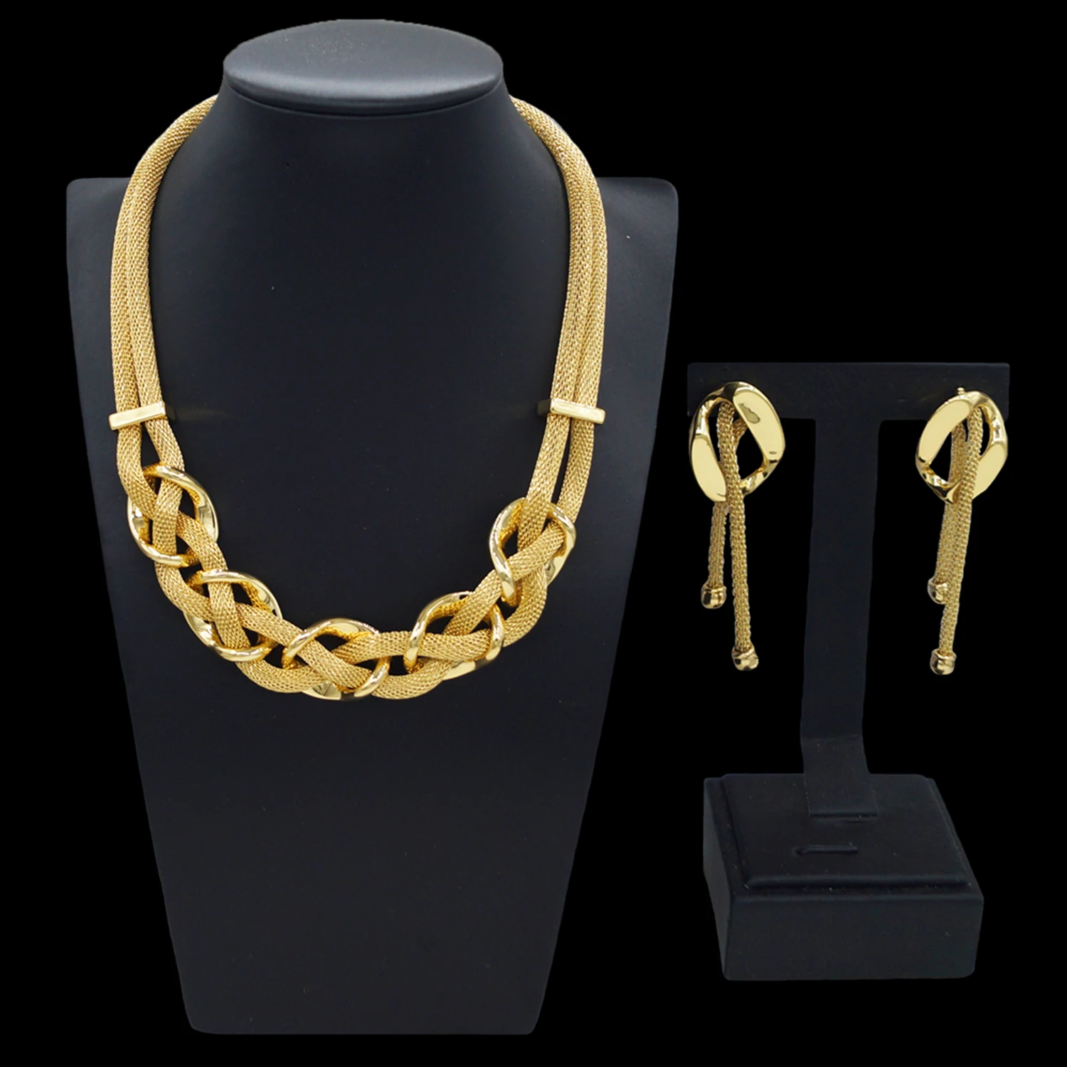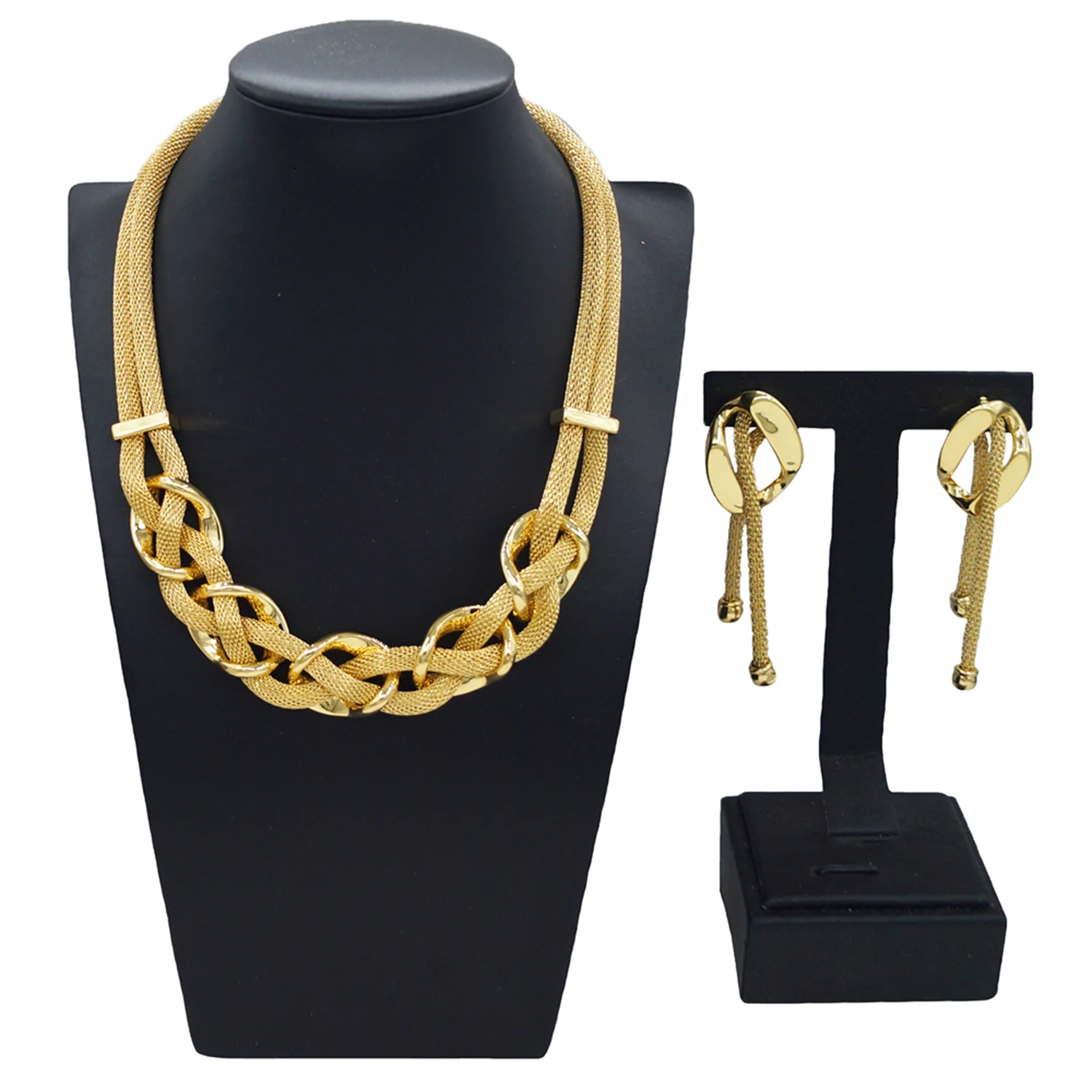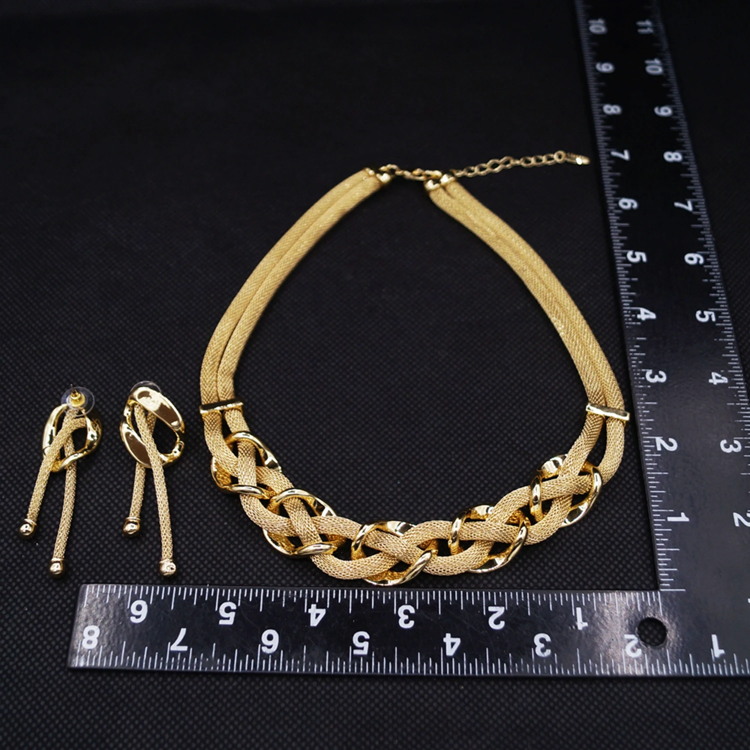Braid Classical Style Dubai Jewelry Set Nice Quality African Jewelry For Woman 24 K Gold Plated Factory Supply Jewels Necklace