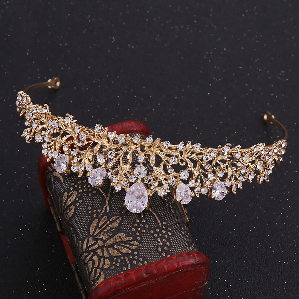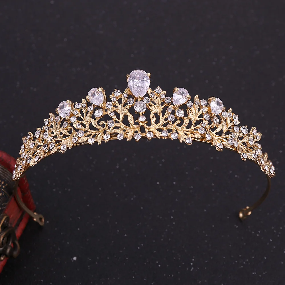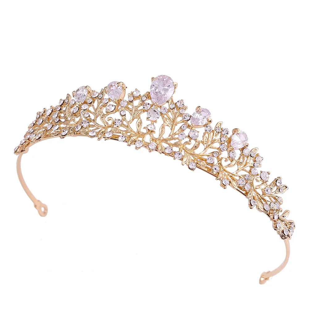 Bridal Alloy Zircon Crown Flower Korean Rhinestone Hair Hoop Wedding Accessories Headpiece Gold CZ Tiara