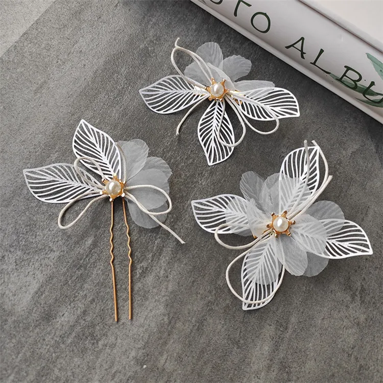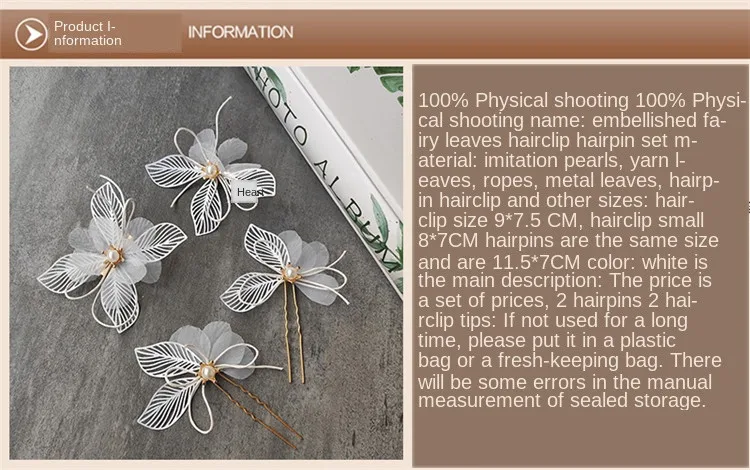 bridal hair accessories bride tiara embellished leaf hairpin hair pin set wedding dress edge clip hair accessories