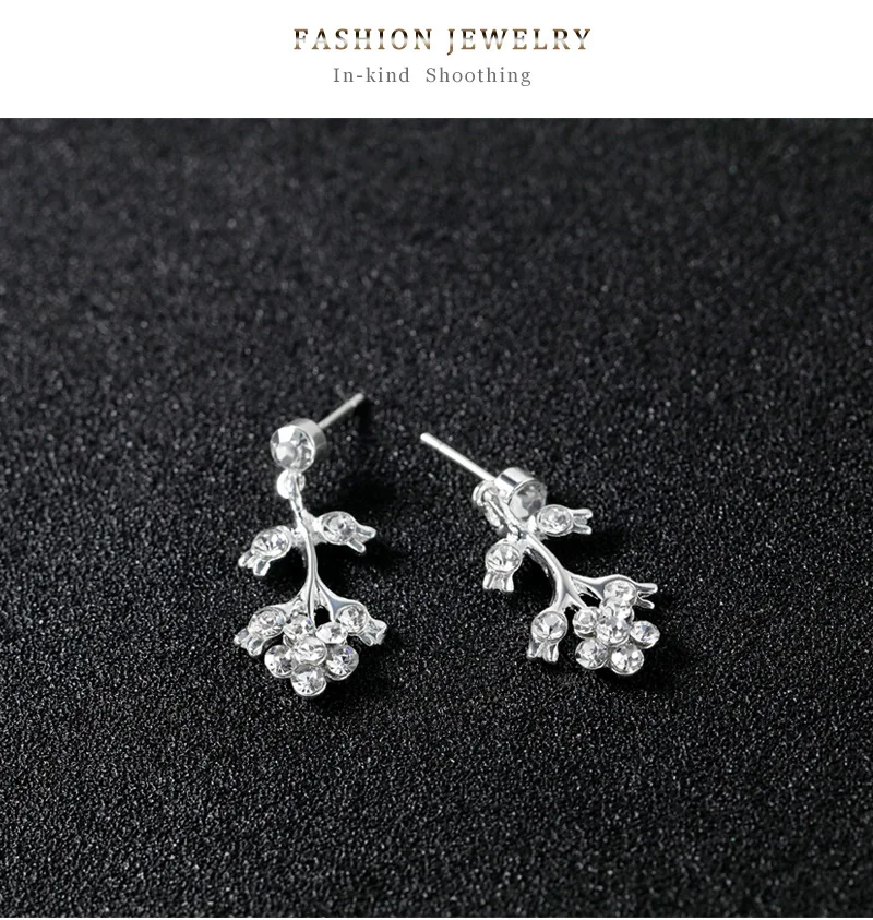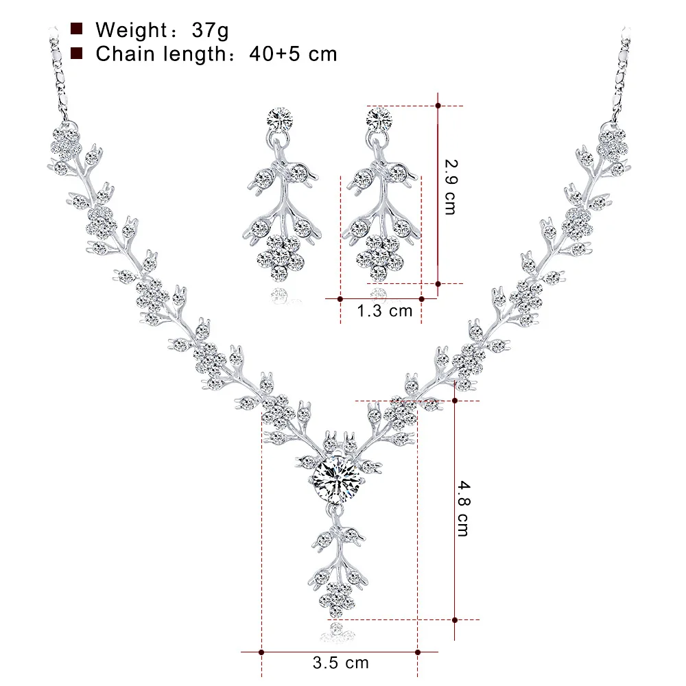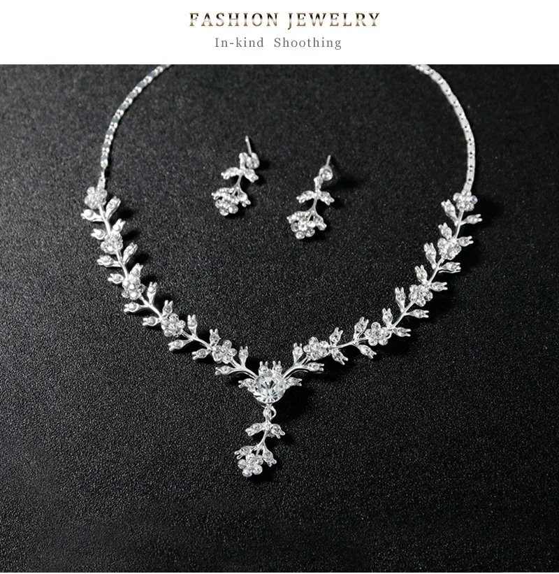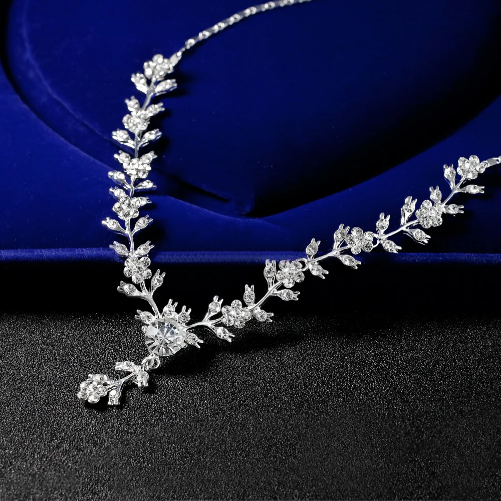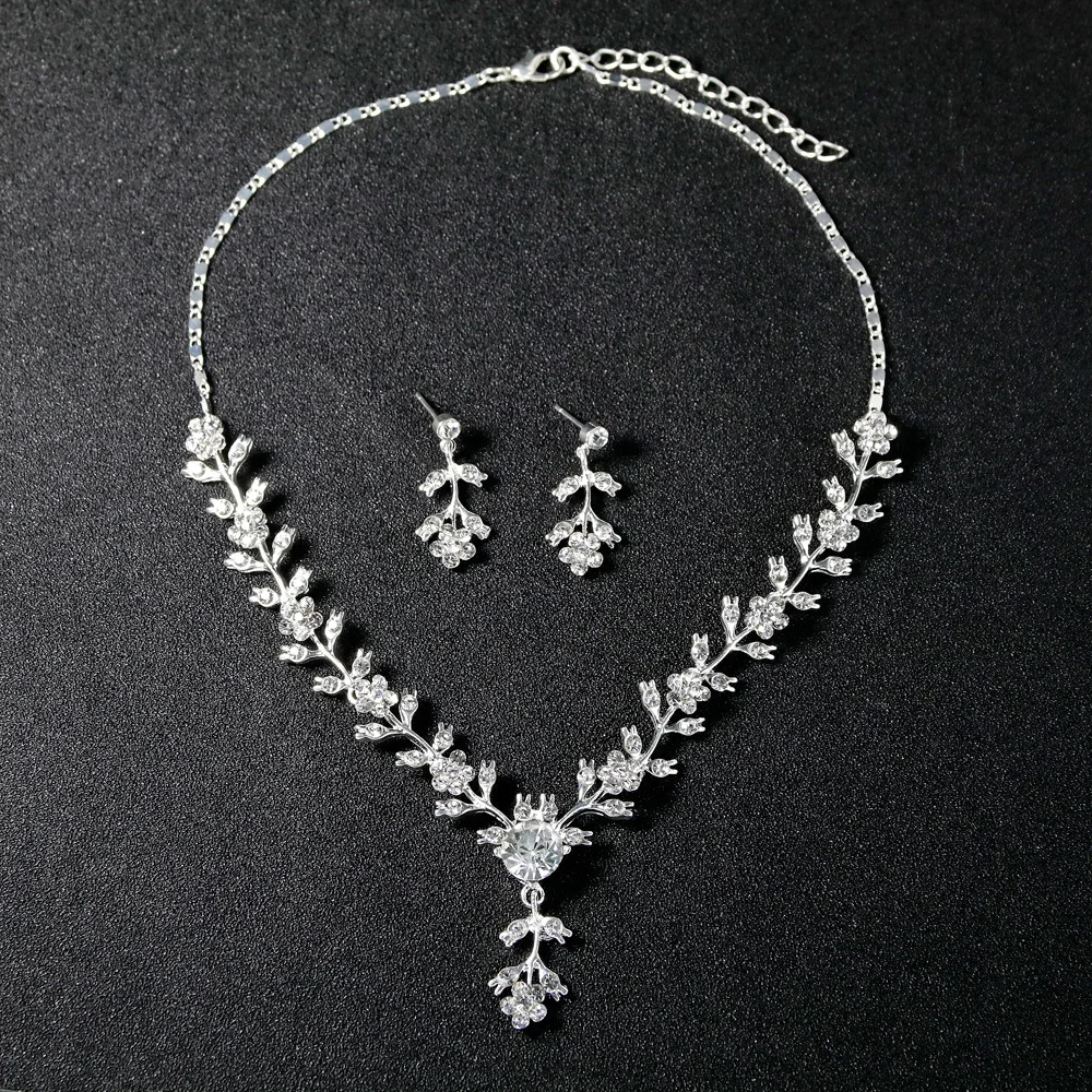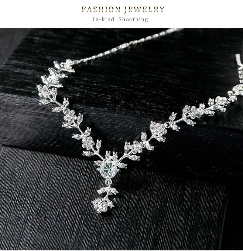 Bridal Wedding Jewelry Set Women Rhinestone Plant Necklaces And Earrings Sets