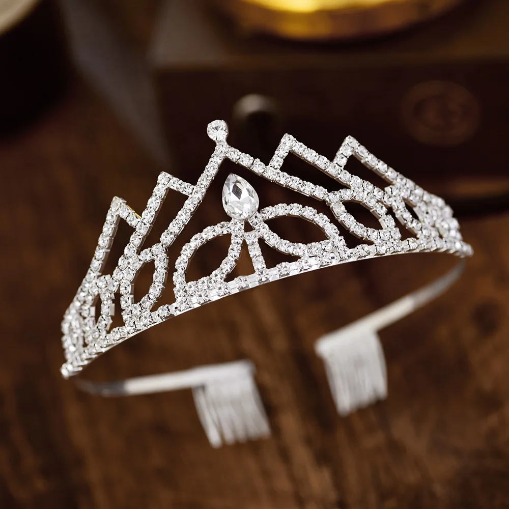 Bride rhinestone girls crowns Princess acting wedding dress crown jewelry kids baby crown girl