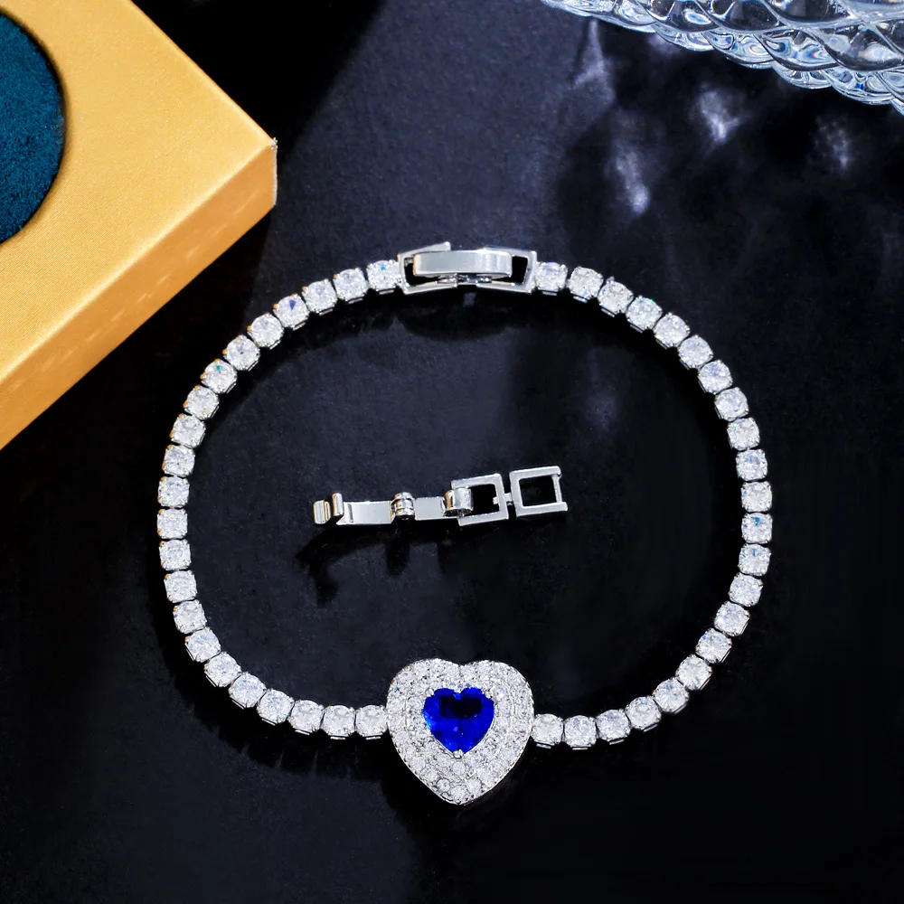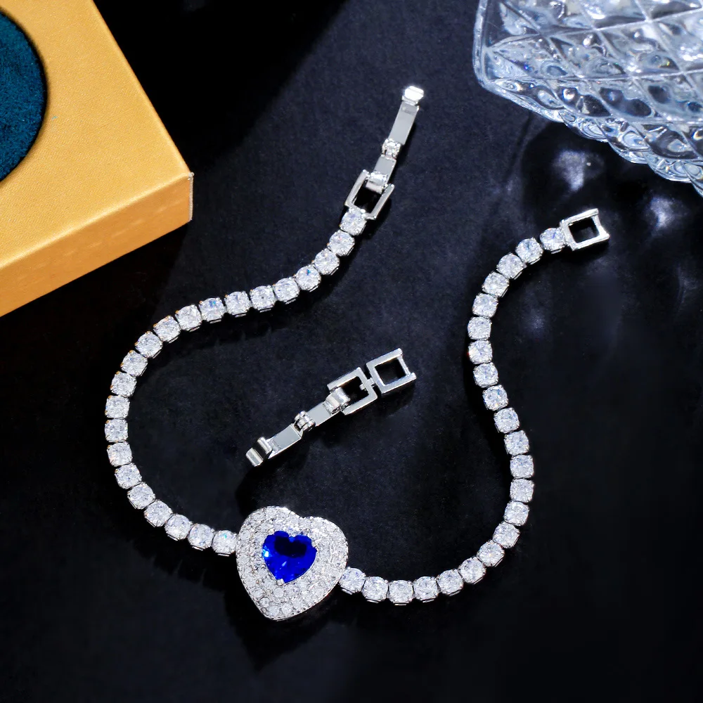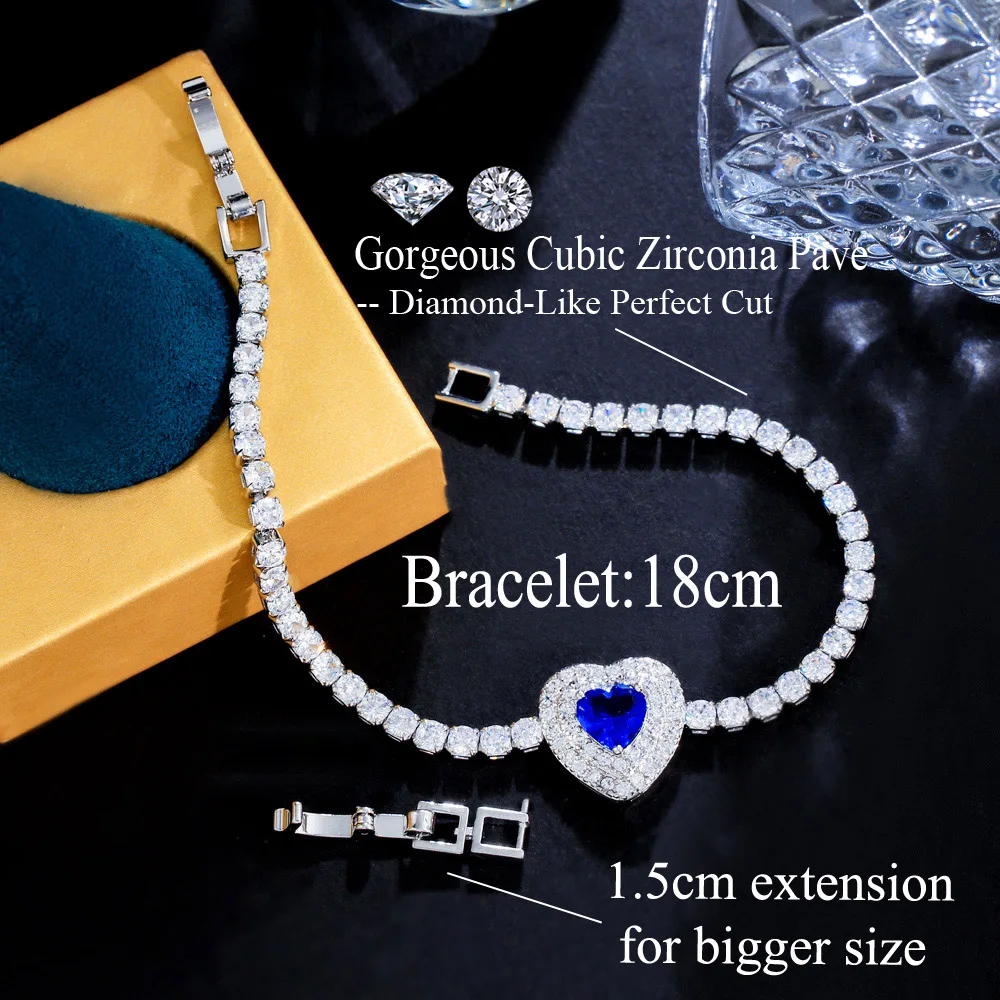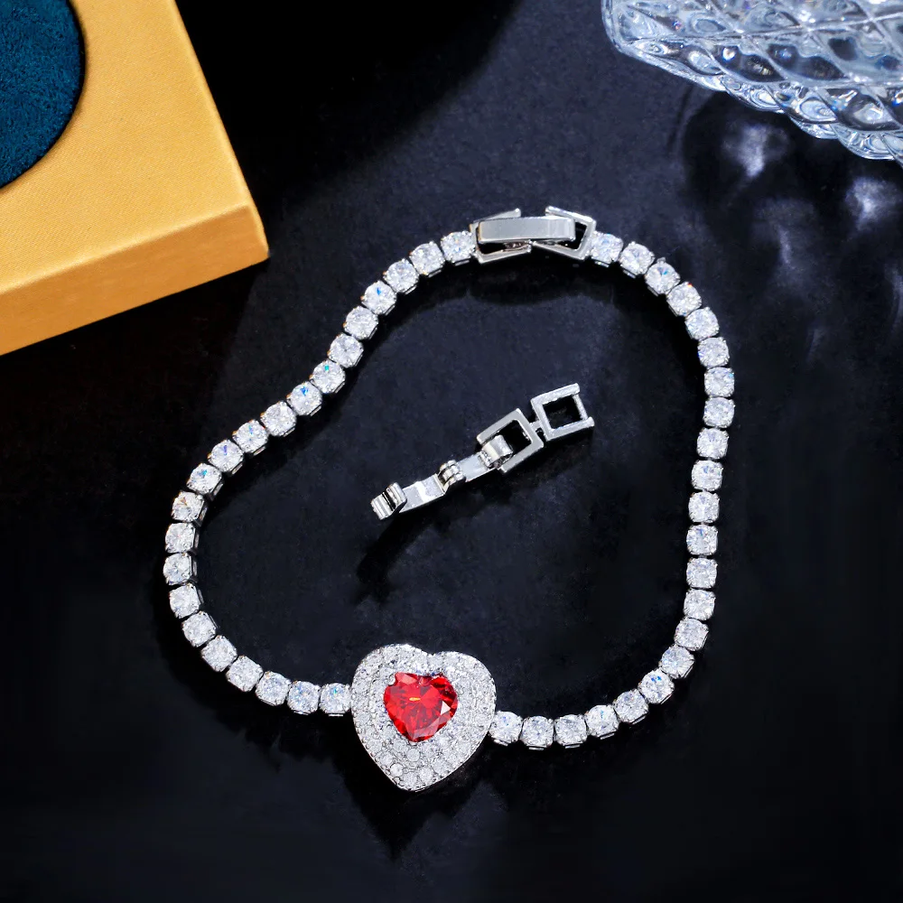 Bright Design Round Bling Cubic Zircon Crystal Red Love Heart Shaped Chain CZ Tennis Charm Bracelets for Women Trendy Jewelry