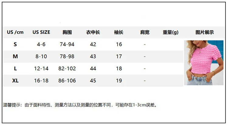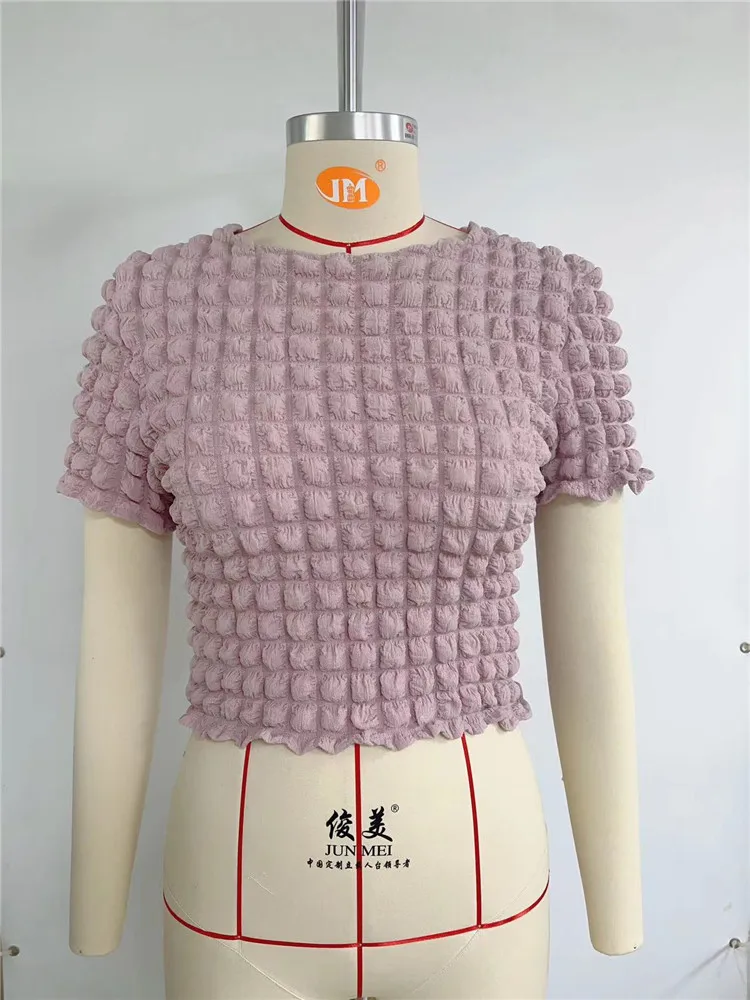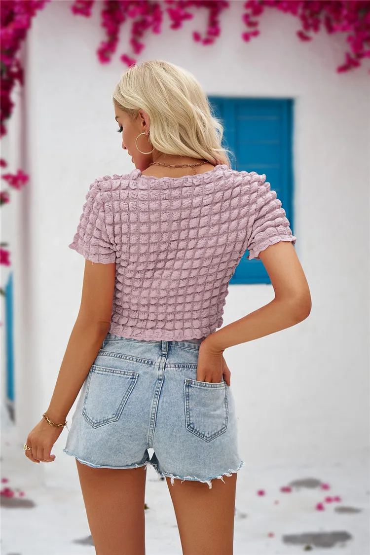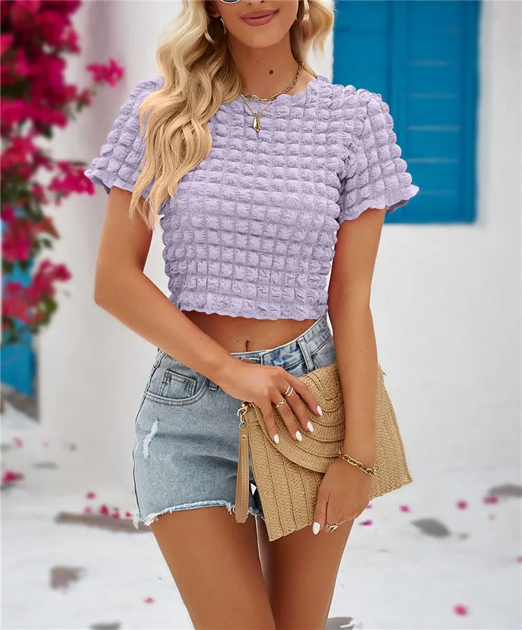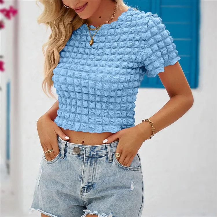 Bubble Texture Short Sleeve Crop Top Street Style Summer Fashion Women Sexy T Shirts