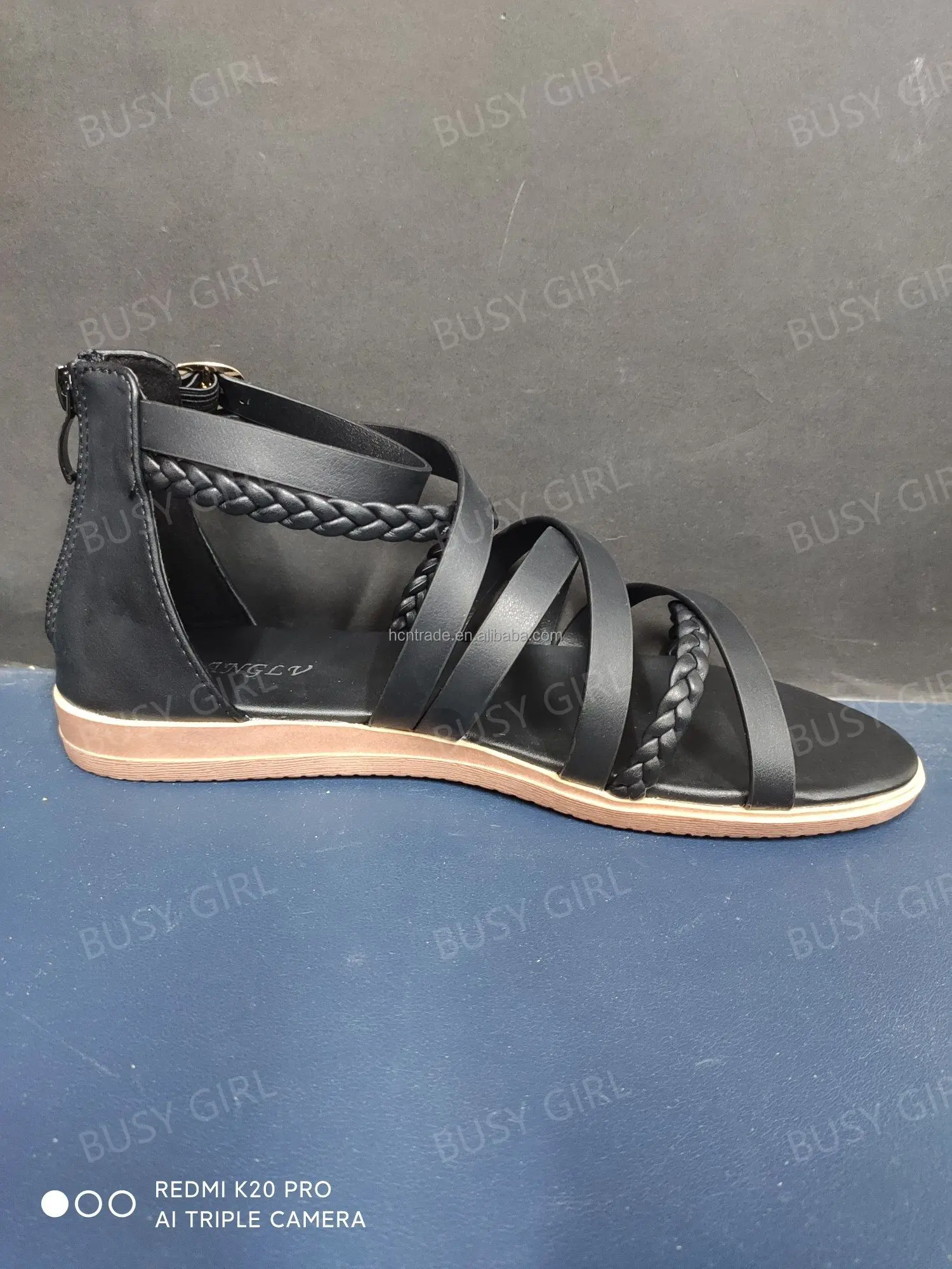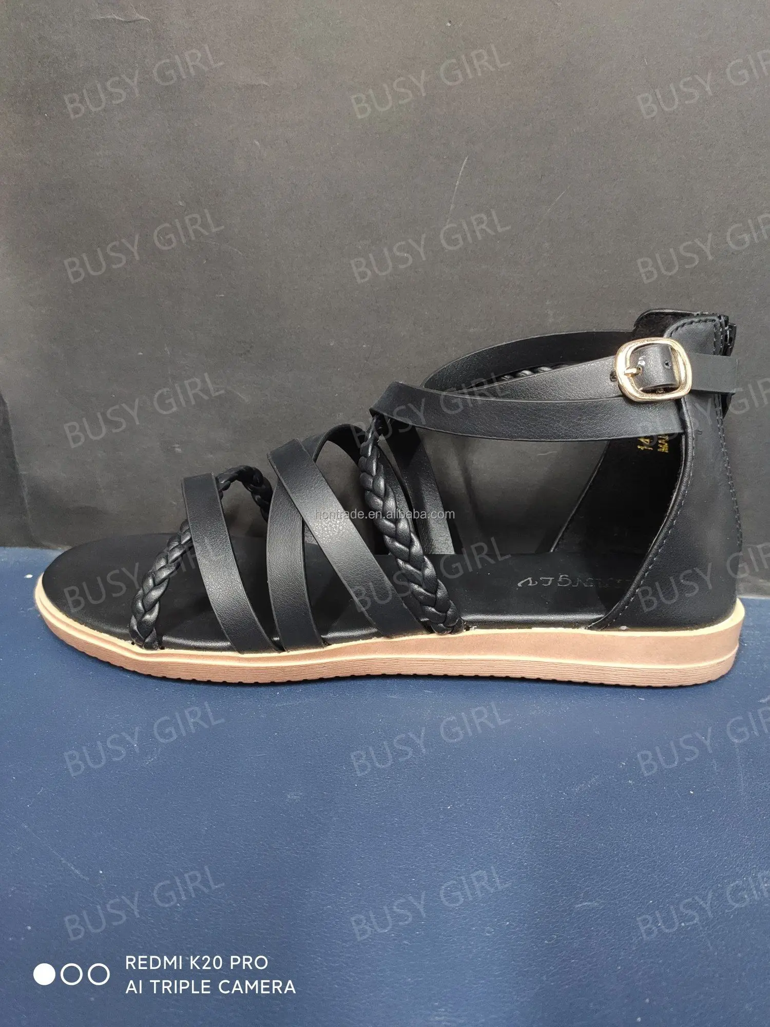 BUSY GIRL JZJ3007 Custom logo women fashion shoes Bohemia style large size ankle strap flat sandals