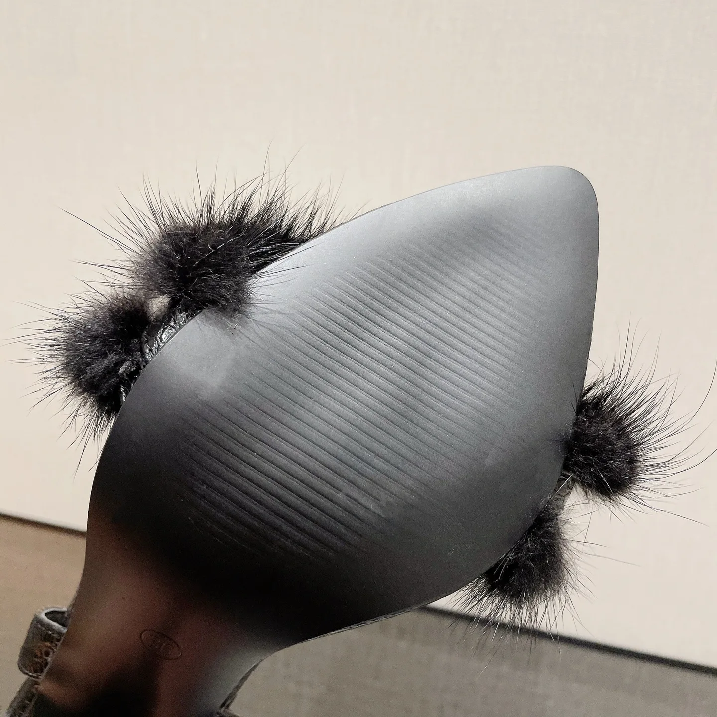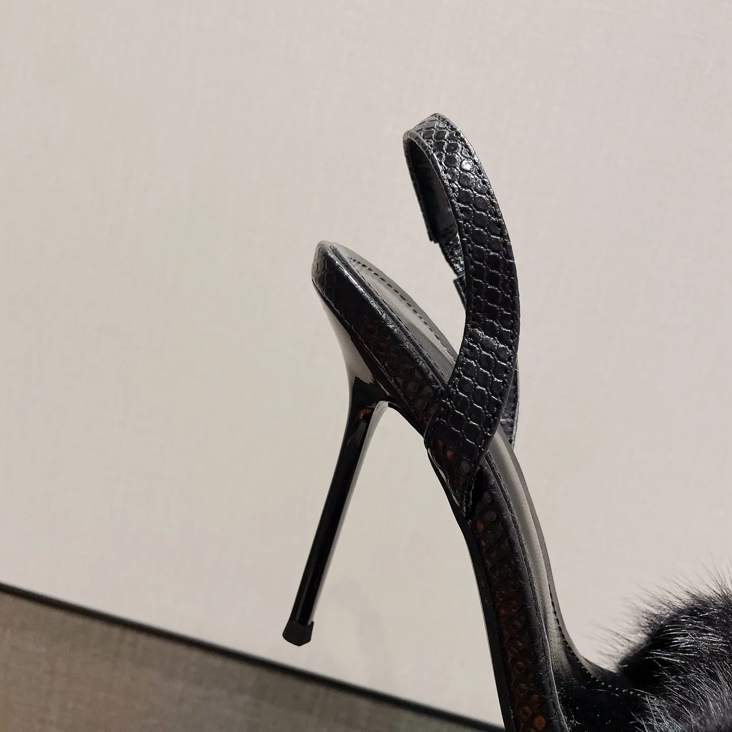 BUSY GIRL SL4339 luxury lady sandals stiletto high heels shoes for women buckle square black fake fur leather sepatu wanita