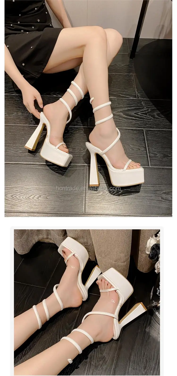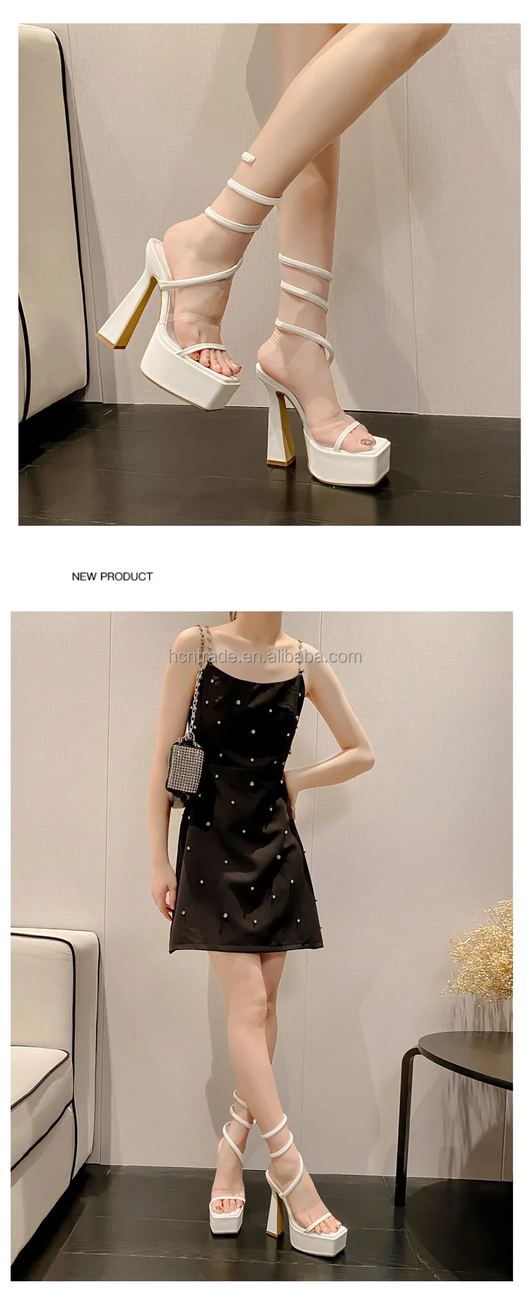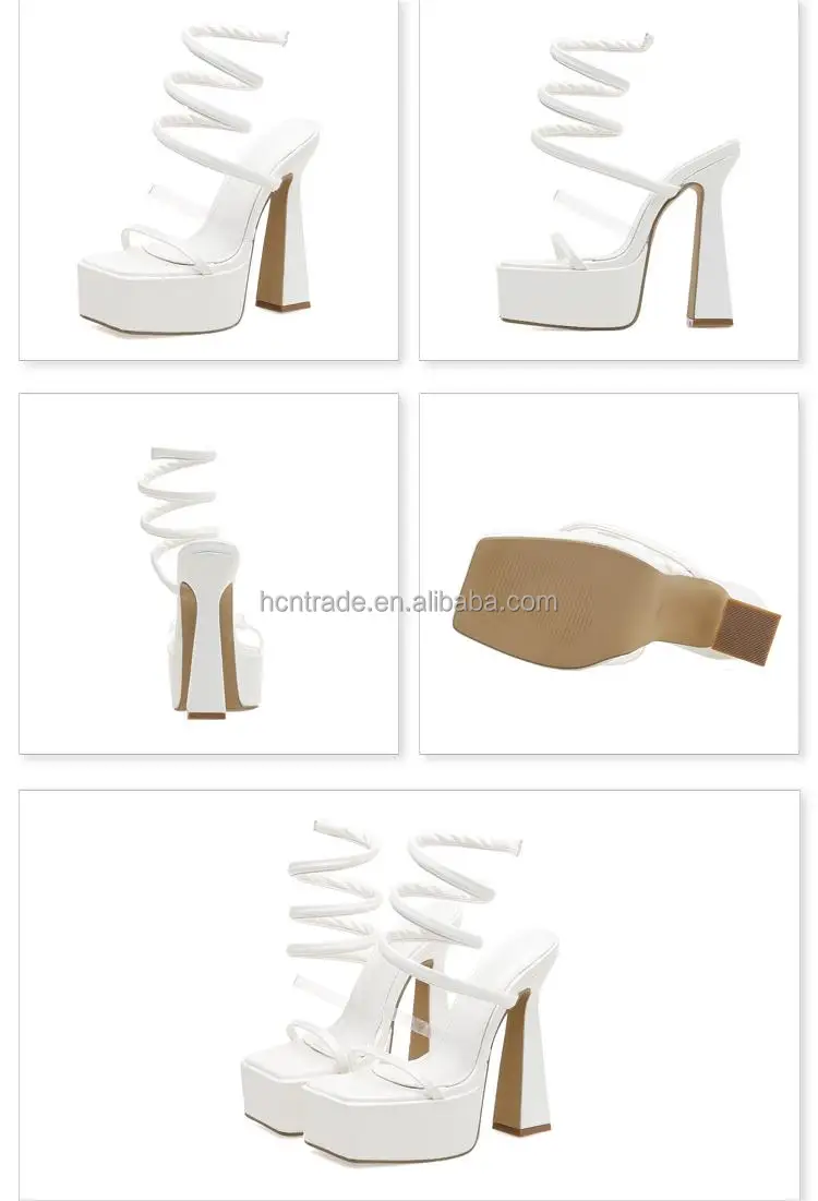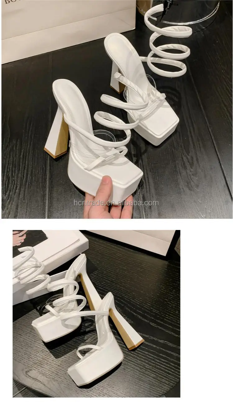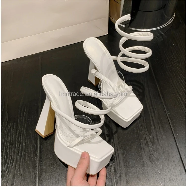 BUSY GIRL XL4828 heeled sandals for women 2023 party dress white platform 15cm block heels for ladies sandals coil ankle heels