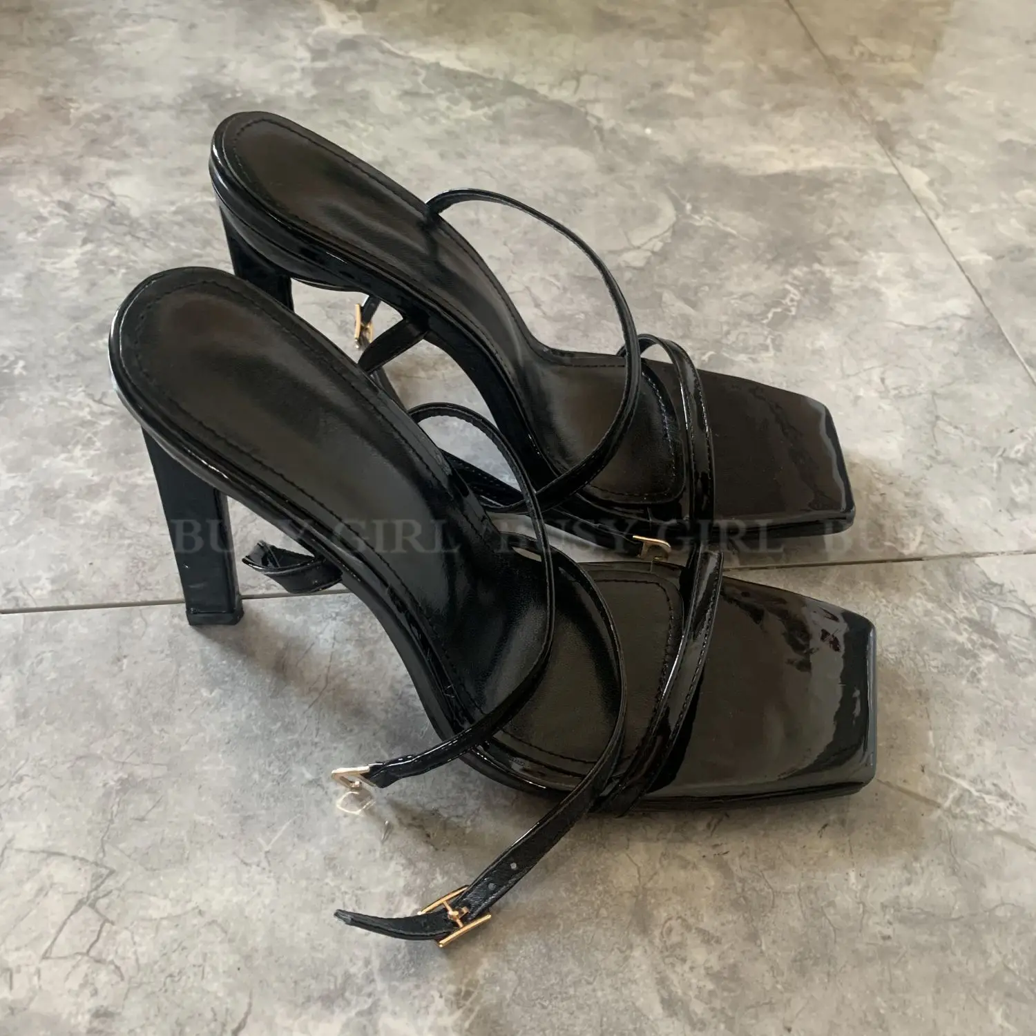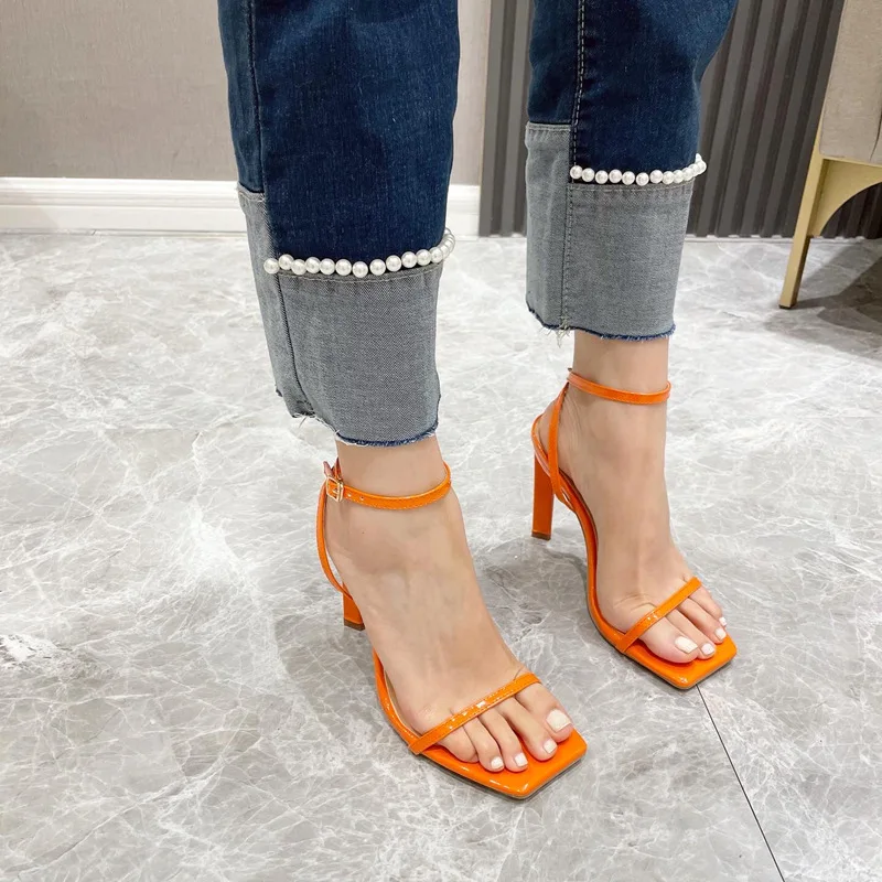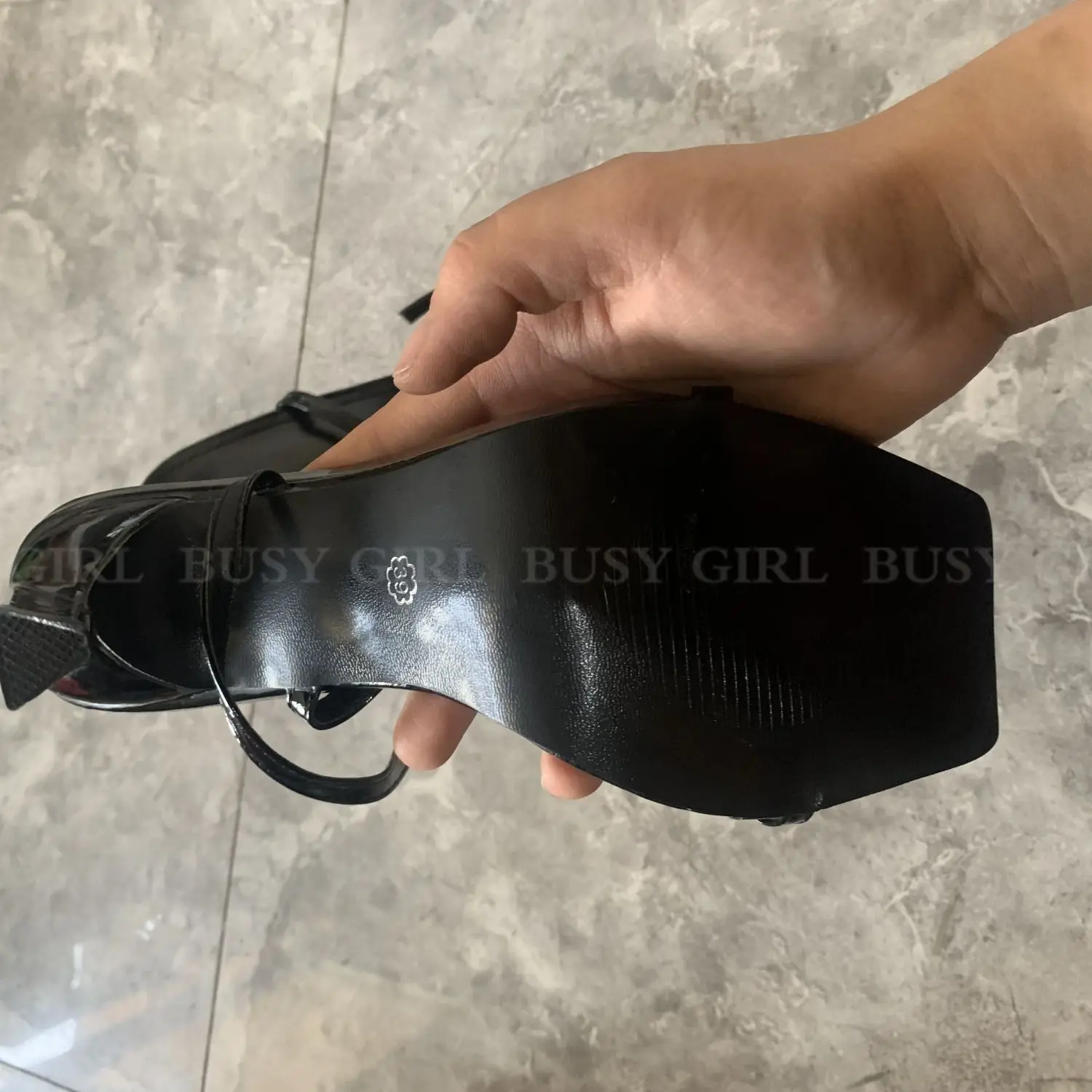 BUSY GIRL XSD3416 Women's square toe block heel heels shallow buckle plastic single shoe lace-up splicing heeled sandals