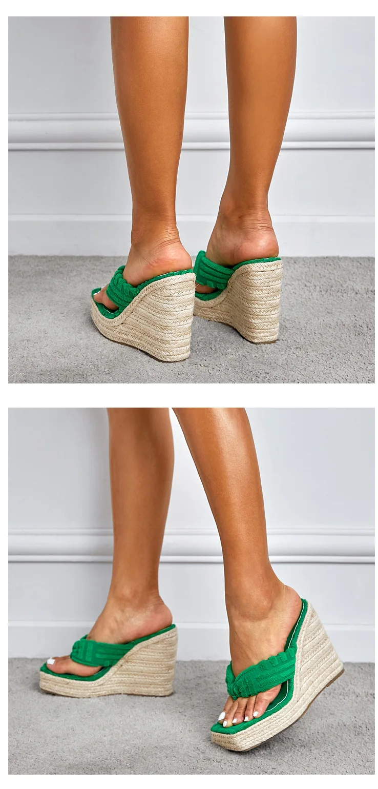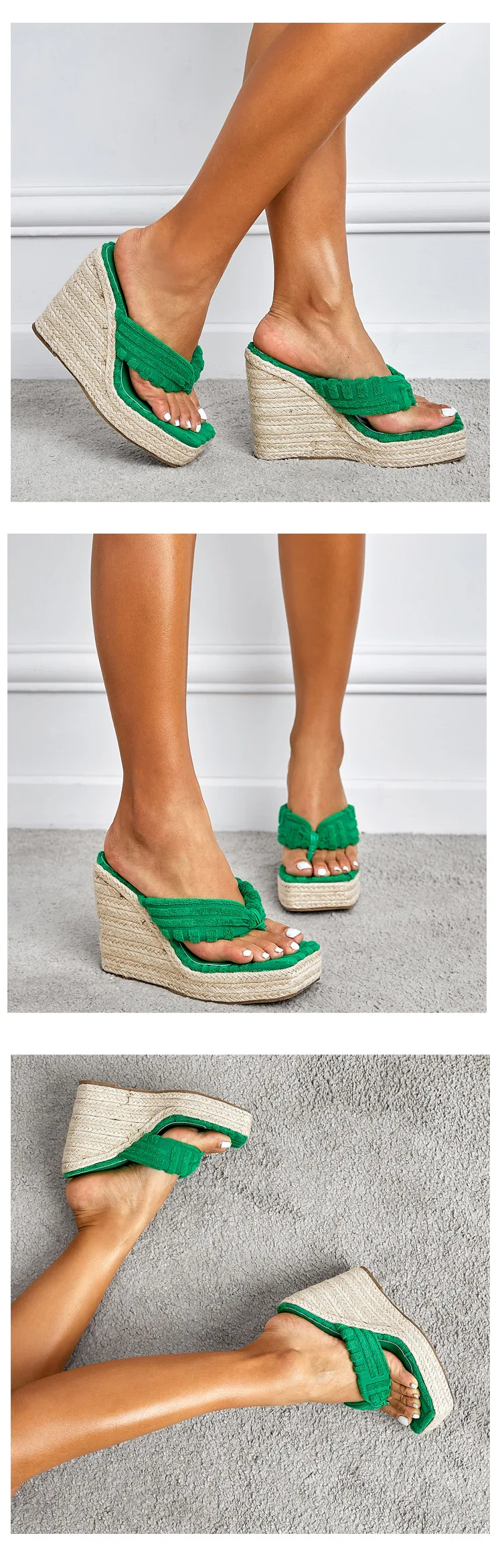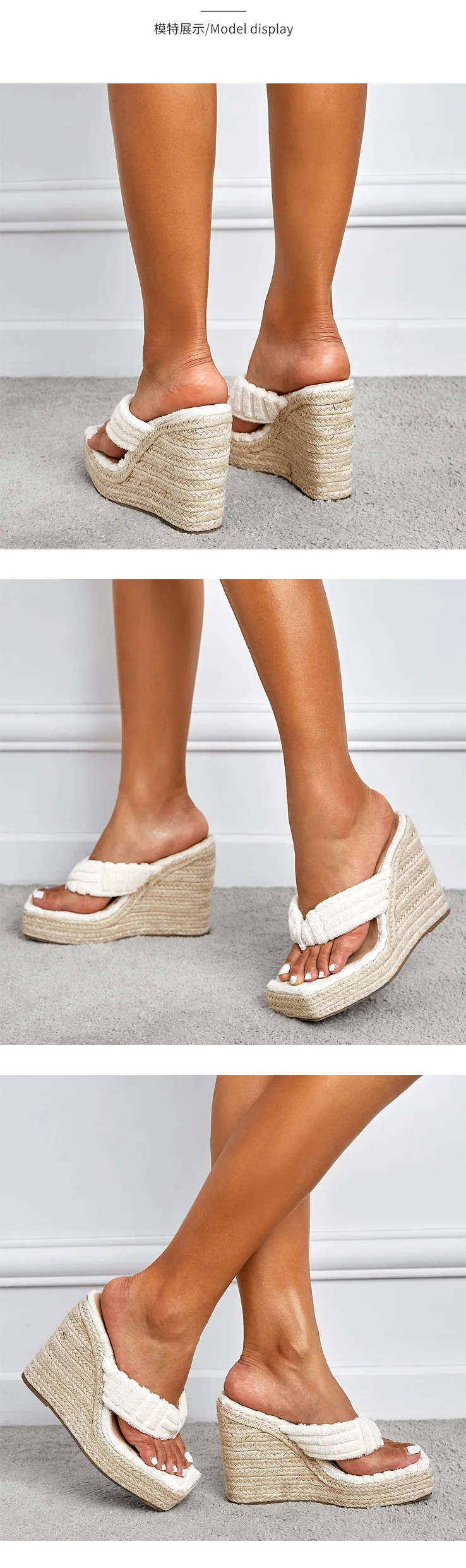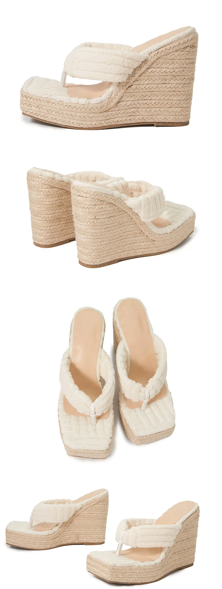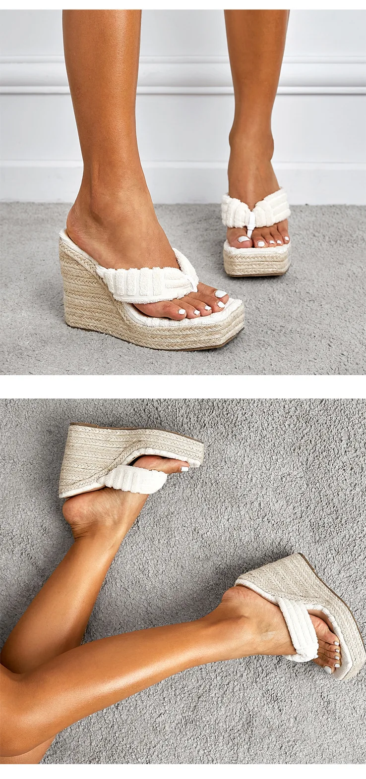 BUSY GIRL XSD4746 Towel Wedge Flip-flop Slippers For Women Rope Platform Heels For Ladies Chunky Block Heels Slippers