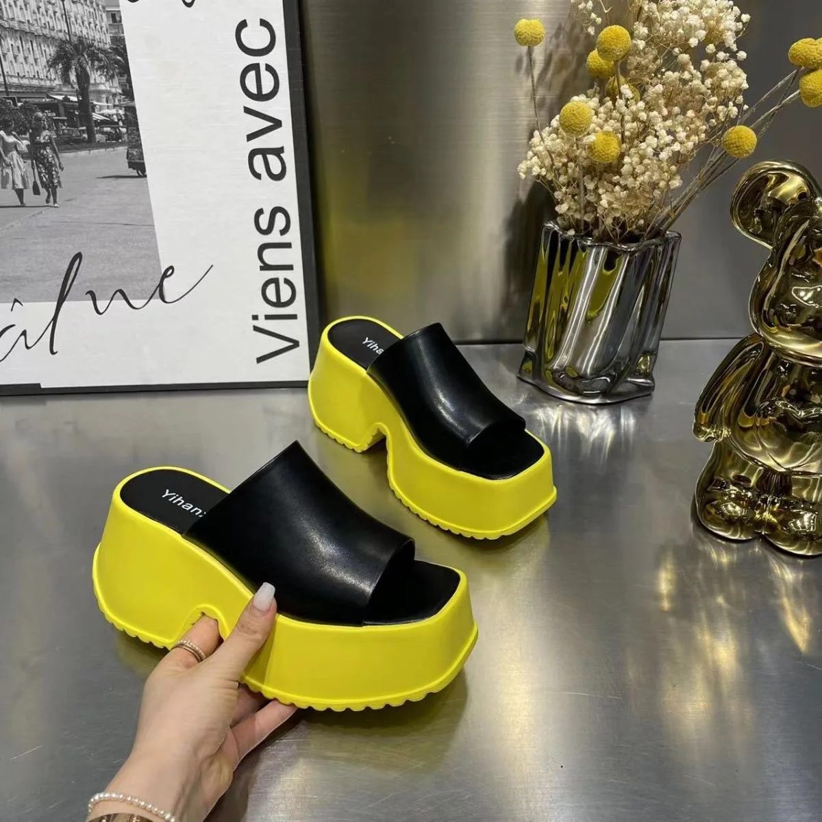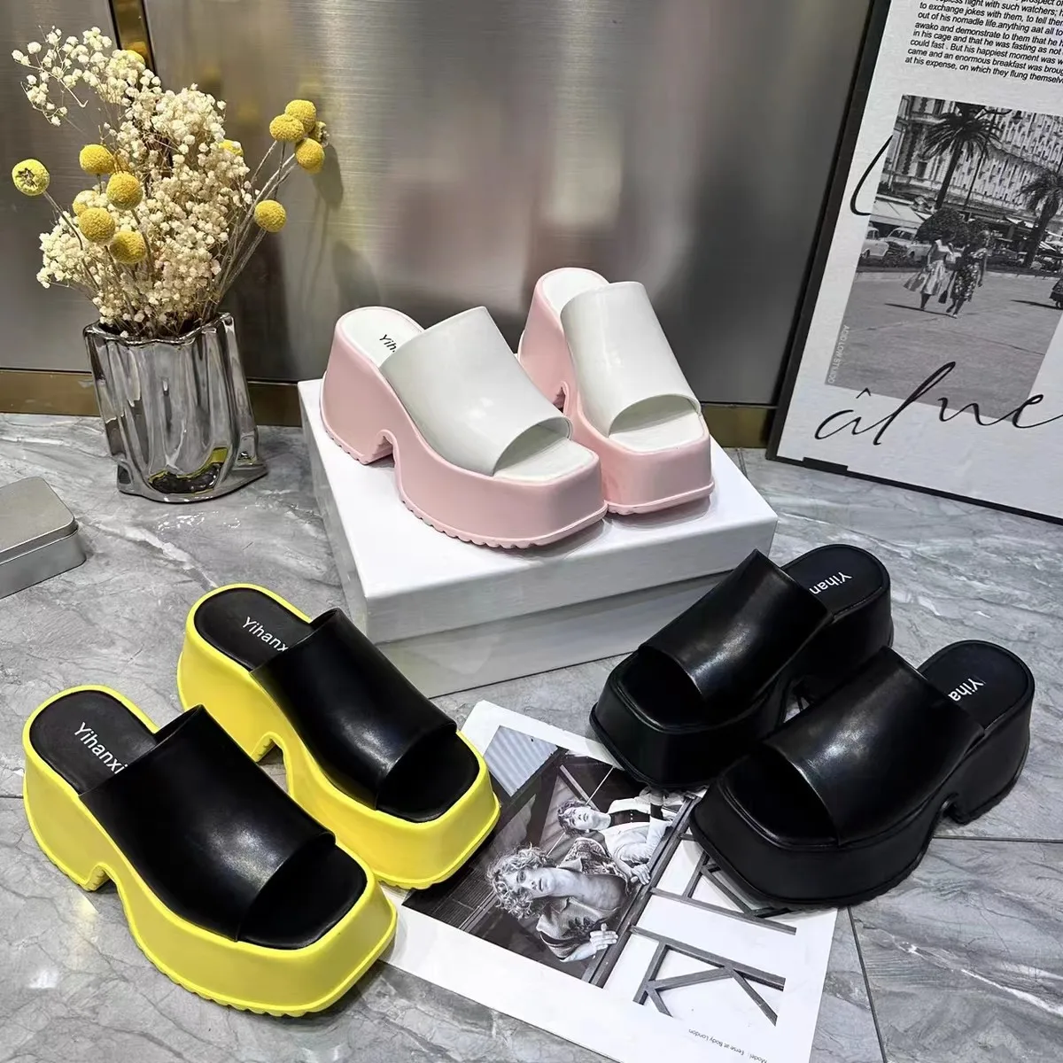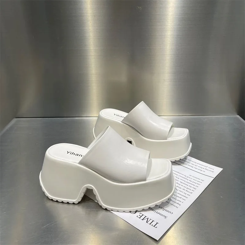 BUSY GIRL XW4761 Black White Platform Slippers Women Wedge Sandals Ladies Slippers 2023 Platform Sandals Women Slippers