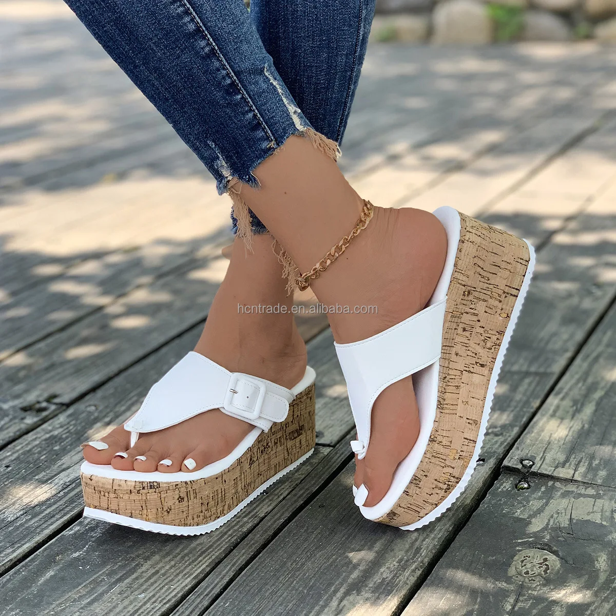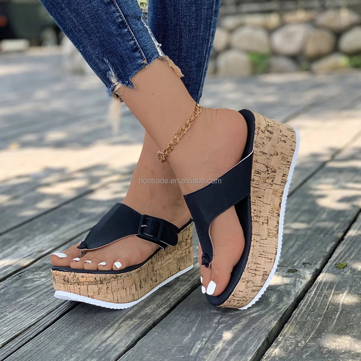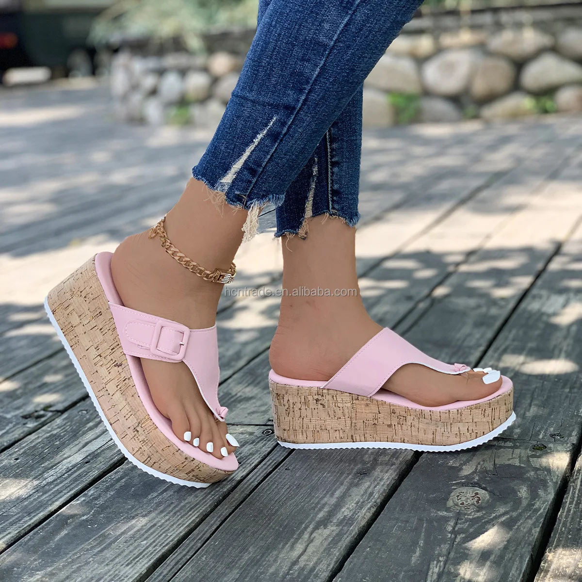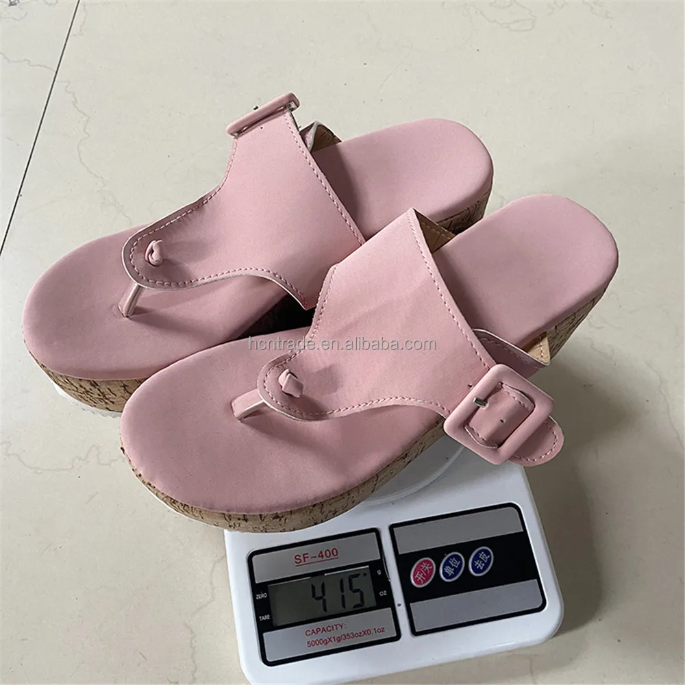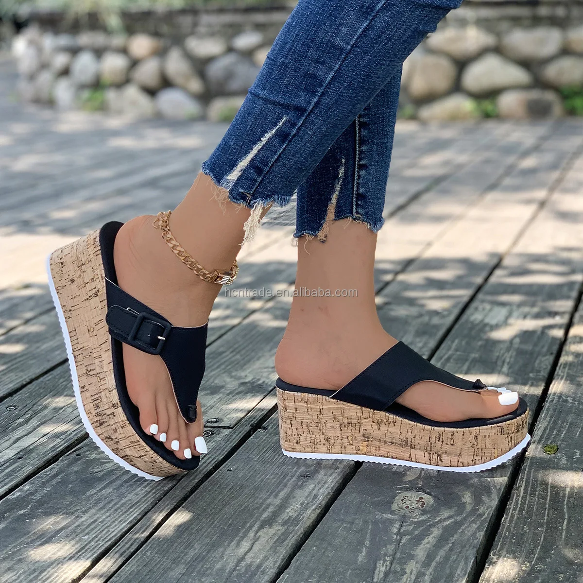 BUSY GIRL YY4859 Wood sole sandals women slides flip flops woman 2023 summer chunky wedge heels beach wood platform sandals