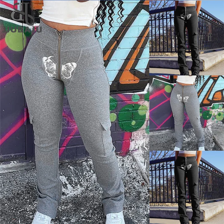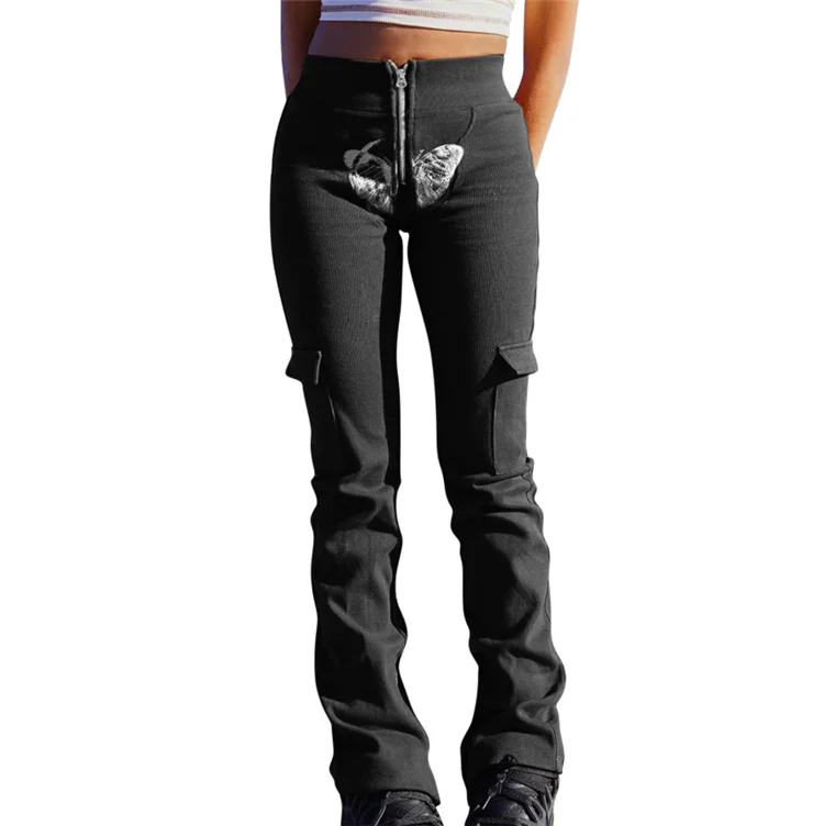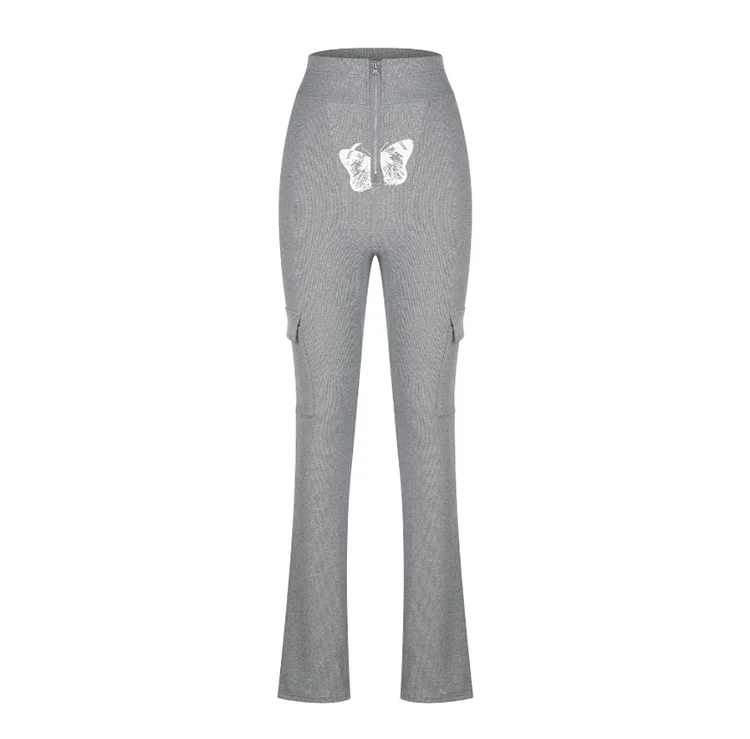 Butterfly Knitted Pants Women Bottoms 2023 Streetwear Long High Waist Cargo Pants