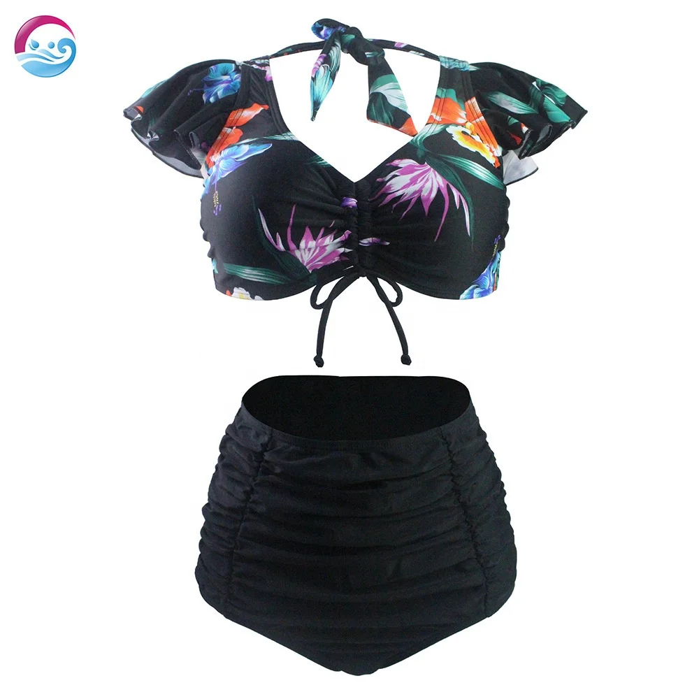 C-1965 Tummy Control Ruffle Sleeve Swimwear Sexy Bikini High Waisted Swimsuit Vintage swimwear Classic bikini swimwear