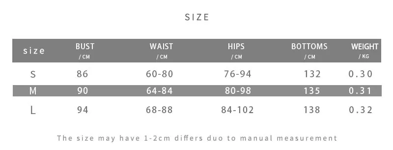 (Note:All weights and sizes are measured,SIZE ERROR up1-3CM,WEIGHT ERROR at most 10g .)