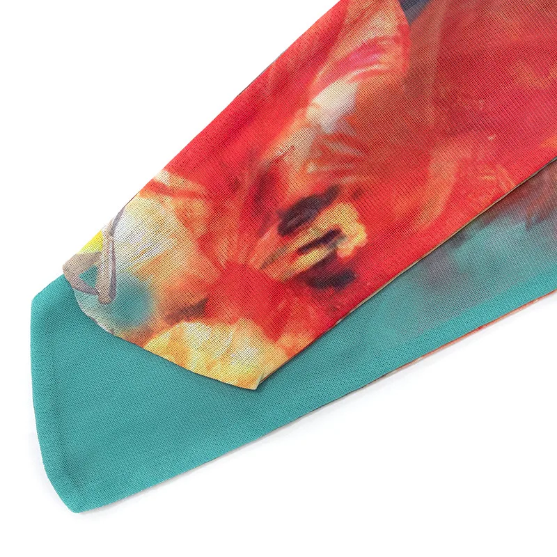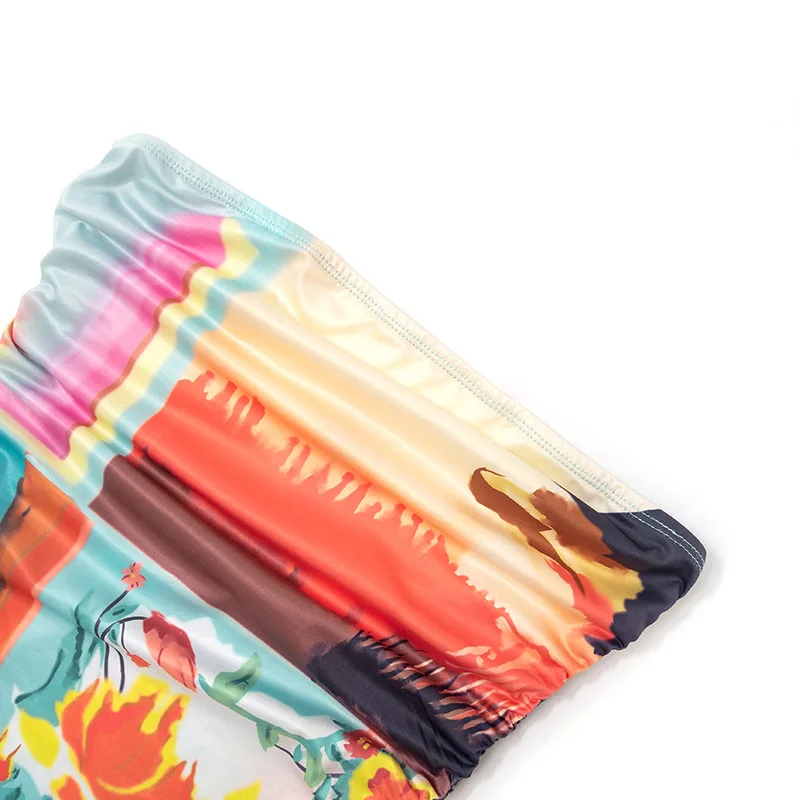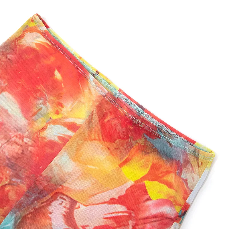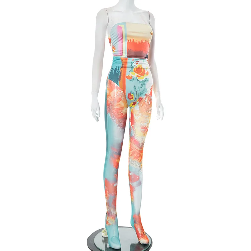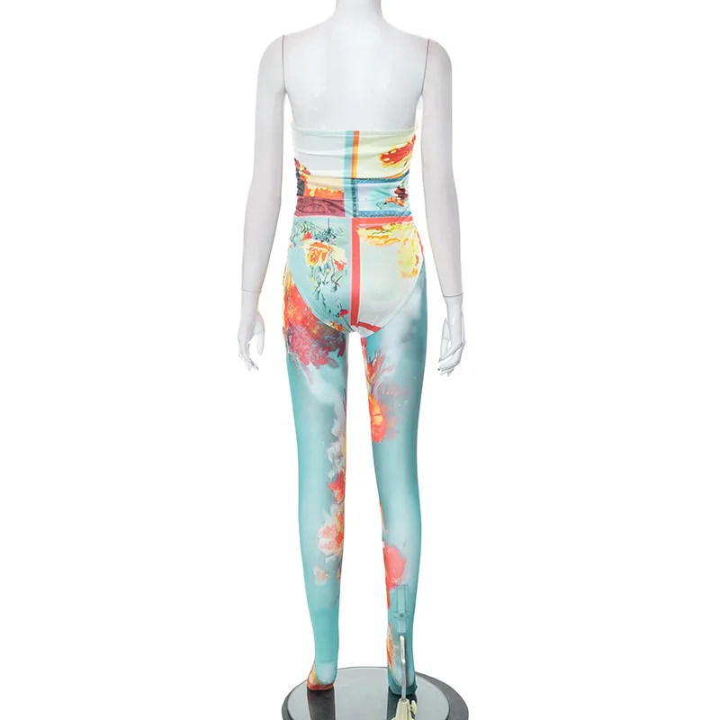 C0092 2023 Summer Tight Print Wrapped Chest Bodysuit High Waist Mesh Pants Fashion Two Piece Set for Women