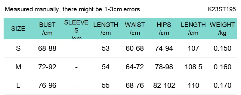 (Note:All weights and sizes are measured,SIZE ERROR up1-3CM,WEIGHT ERROR at most 10g .)