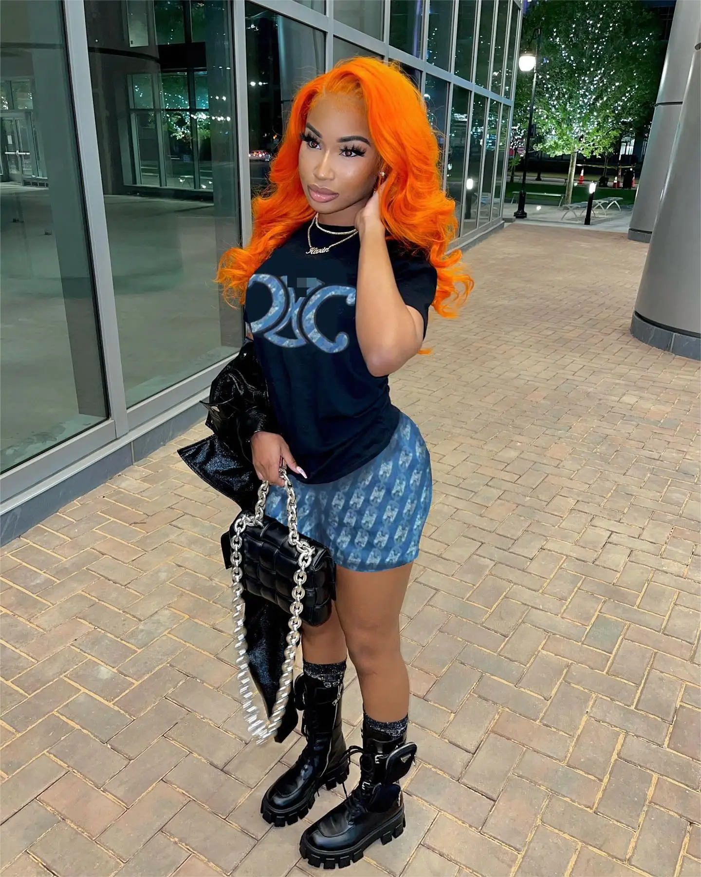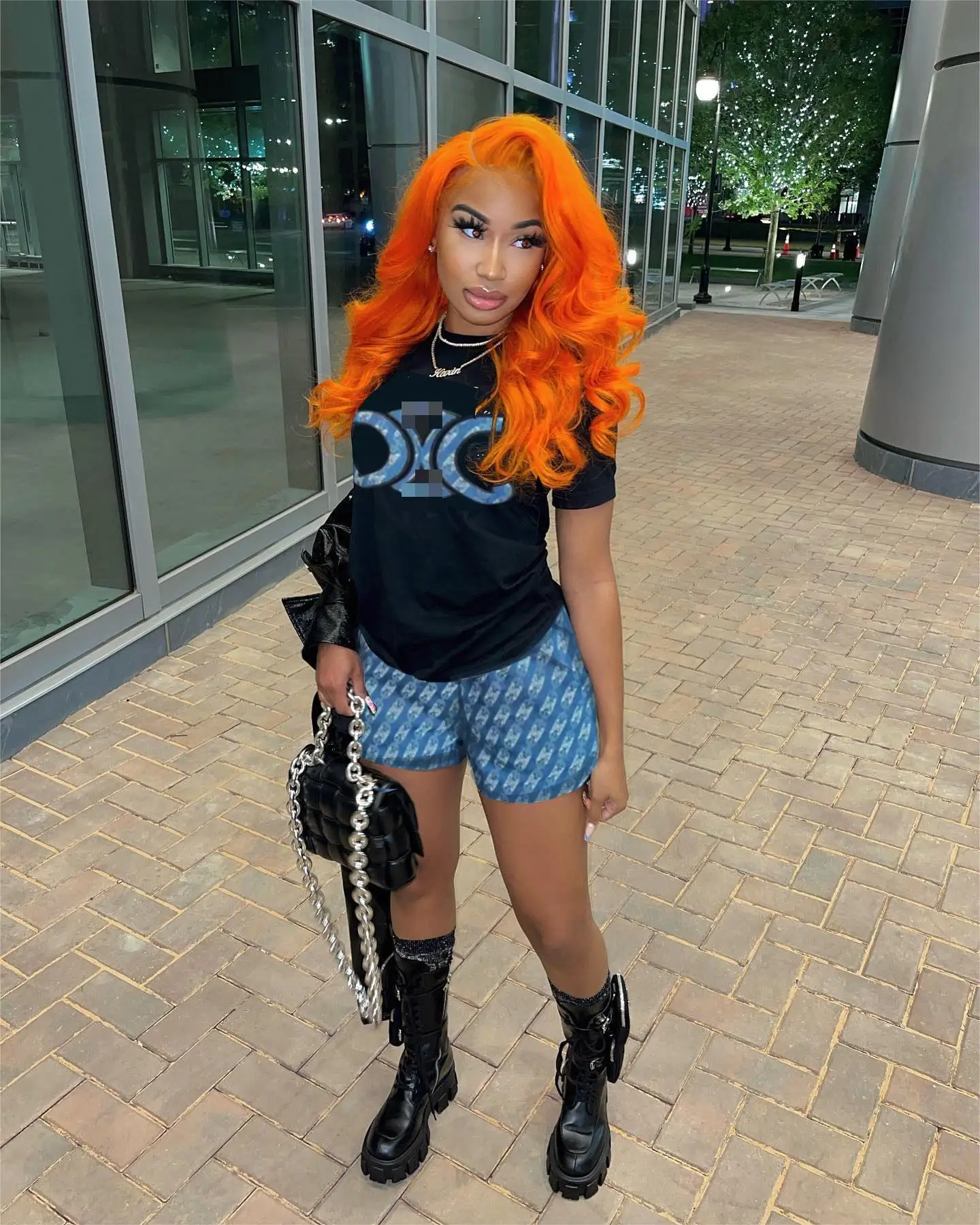 C0156 Spring 2023 New Fashion Designer Print Casual Loose Short Sleeve T-shirt Set
