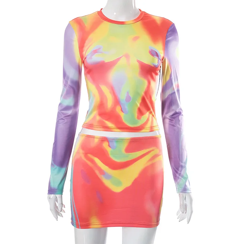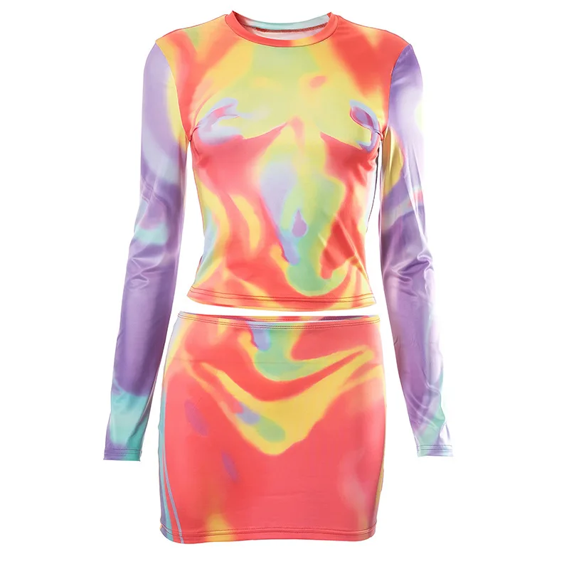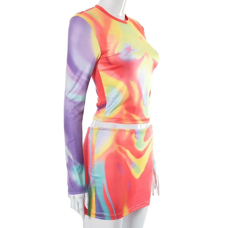 C0307 Wholesale of new color printed long sleeved tops stretch casual skirts sets