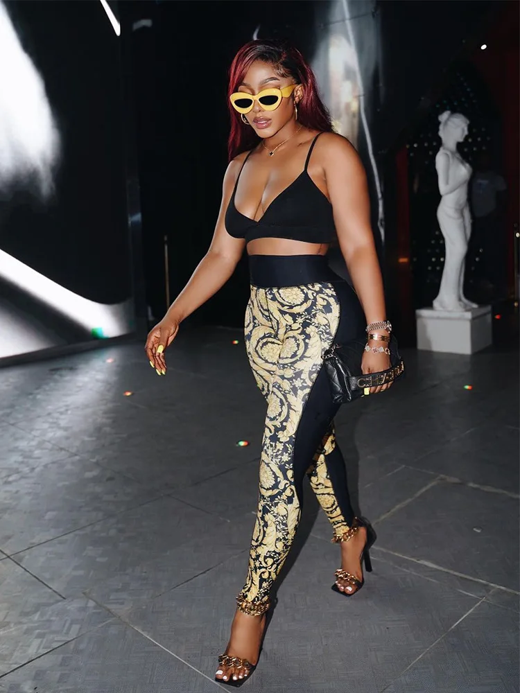 C0554 2023 Summer New Fashion Casual Digital Printing Slim Fit Two Piece Set