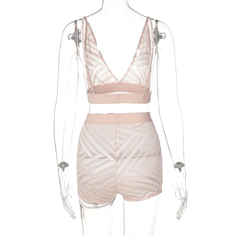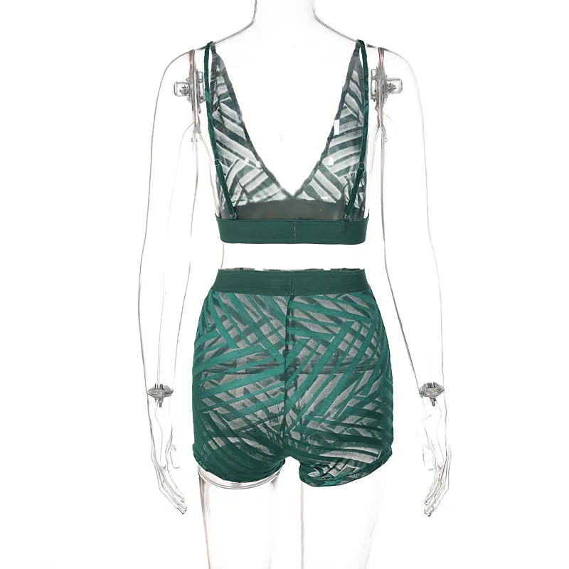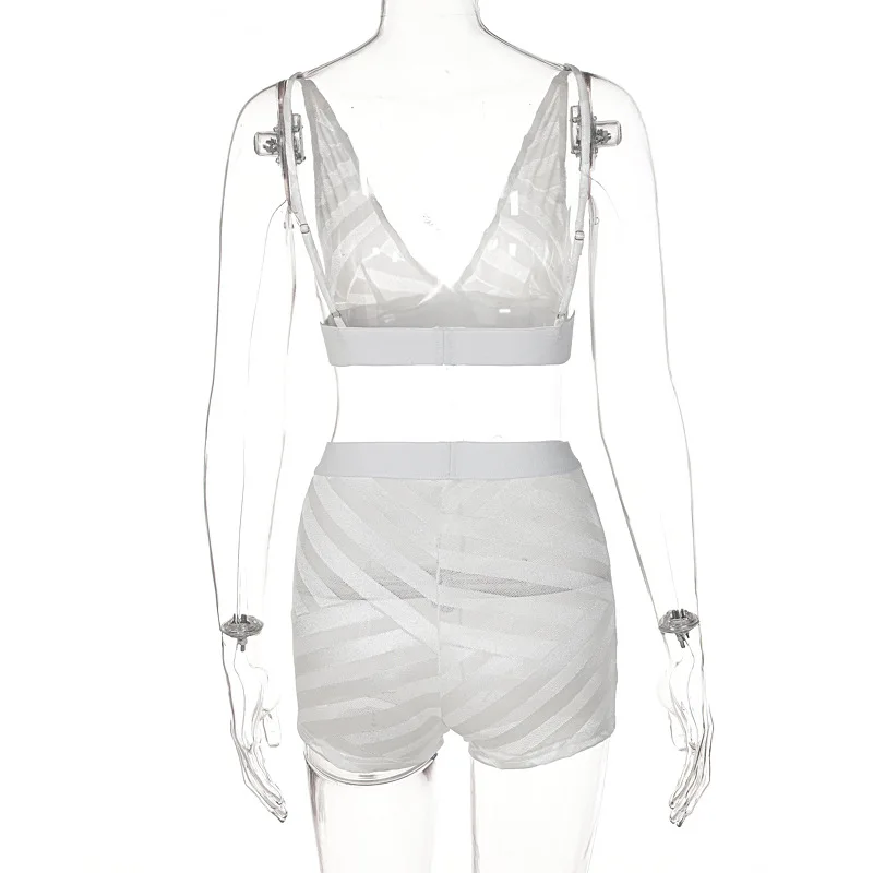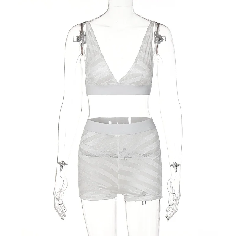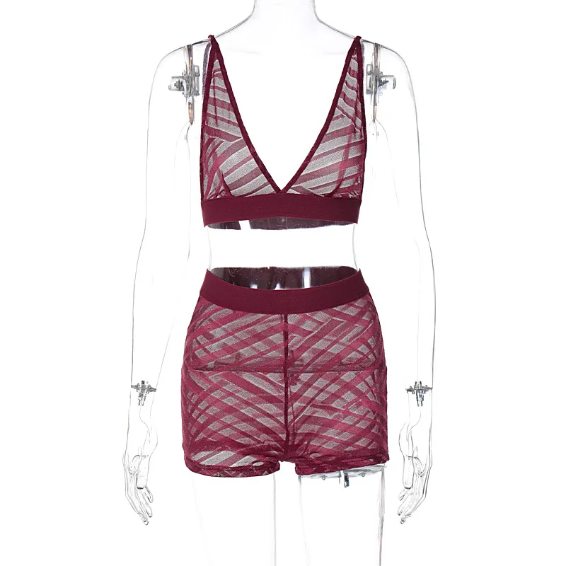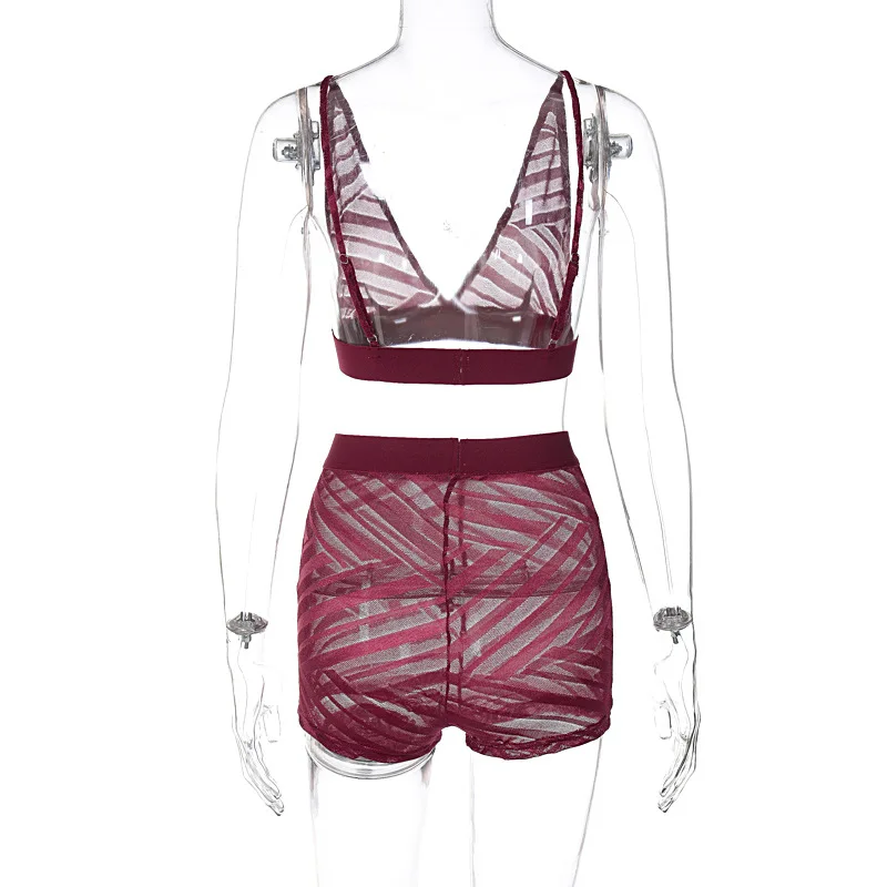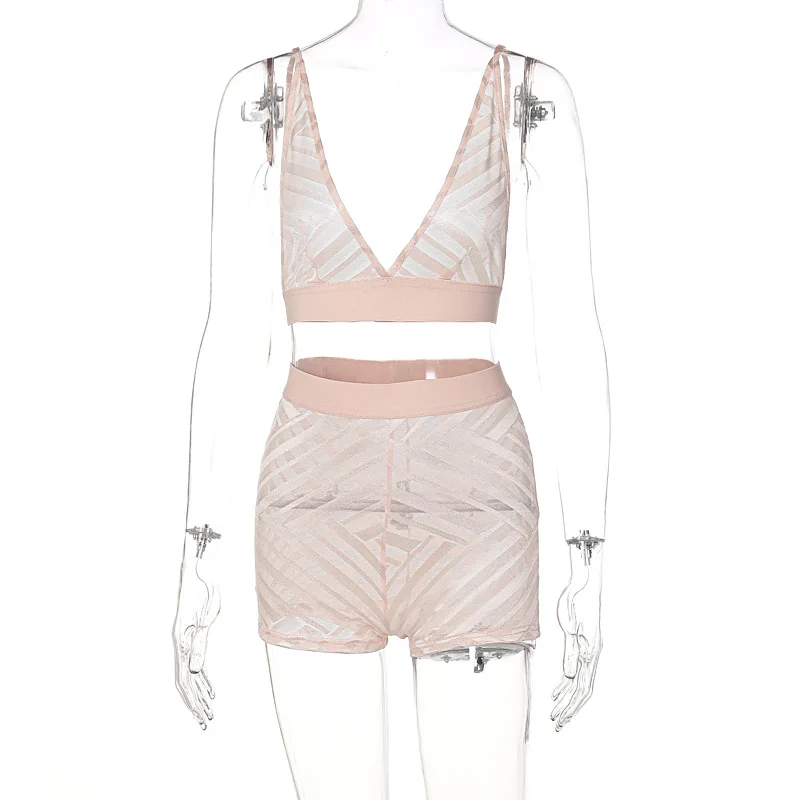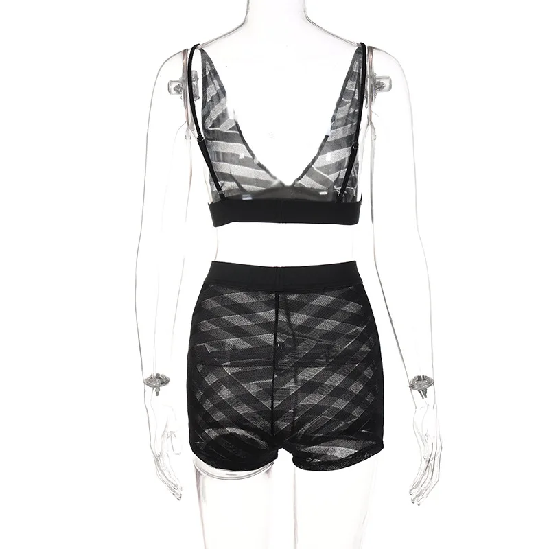 New women's sexy mesh patchwork shorts and small tank top set for women