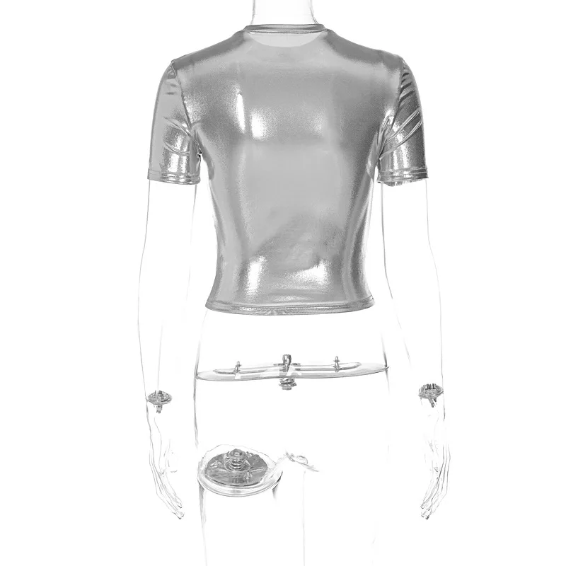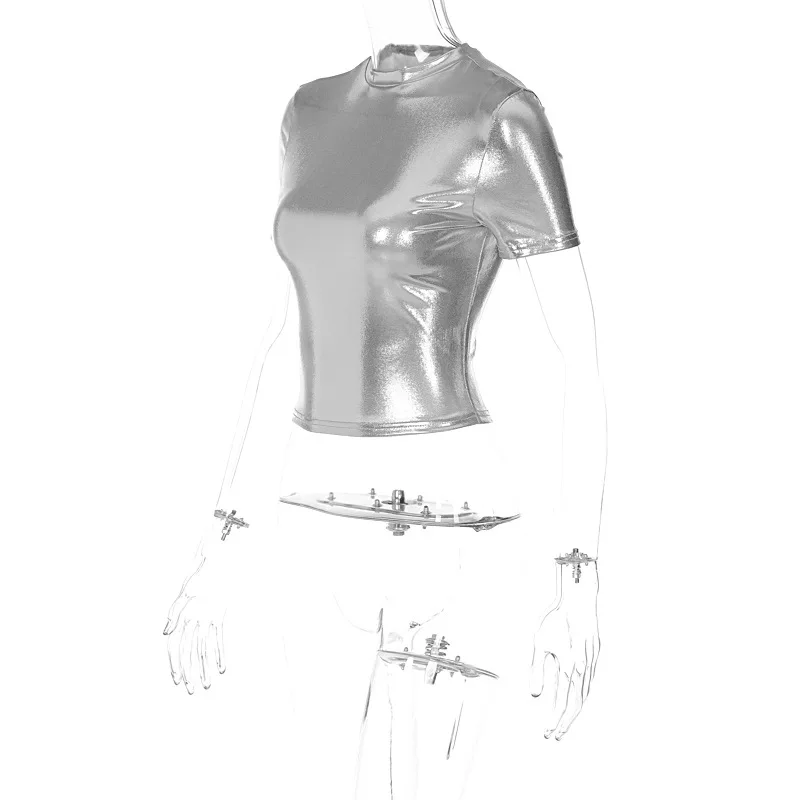 C0831 2023 Summer New Fashion Metal Round Neck Short Sleeve Tight y2k T-shirt Top Wholesale
