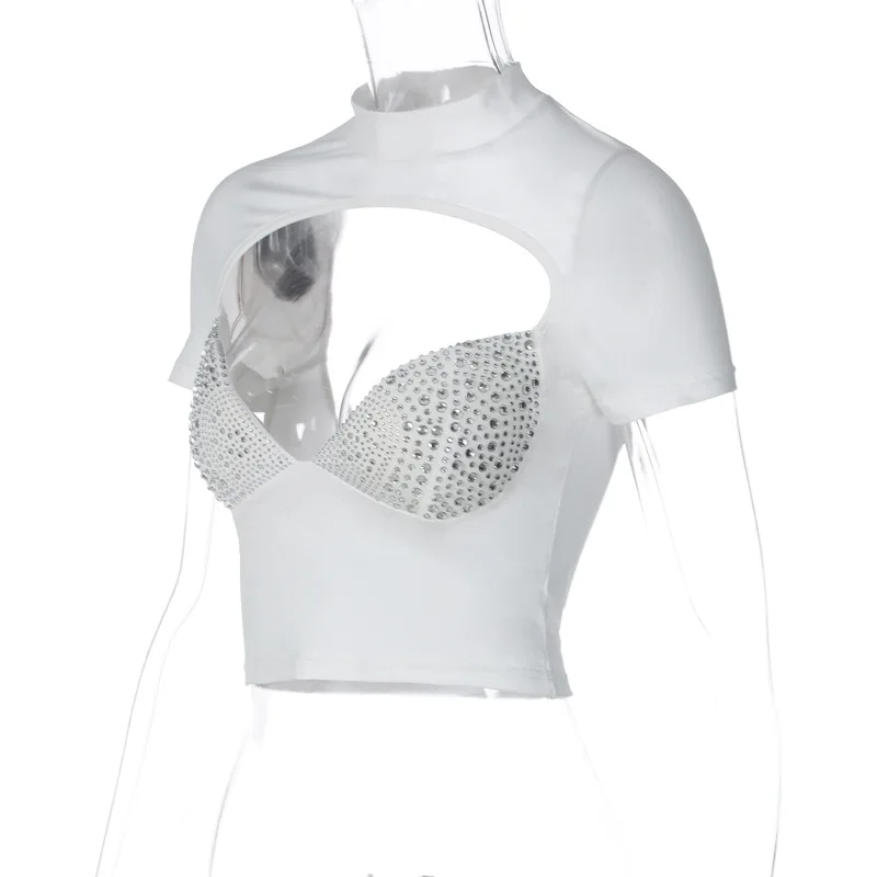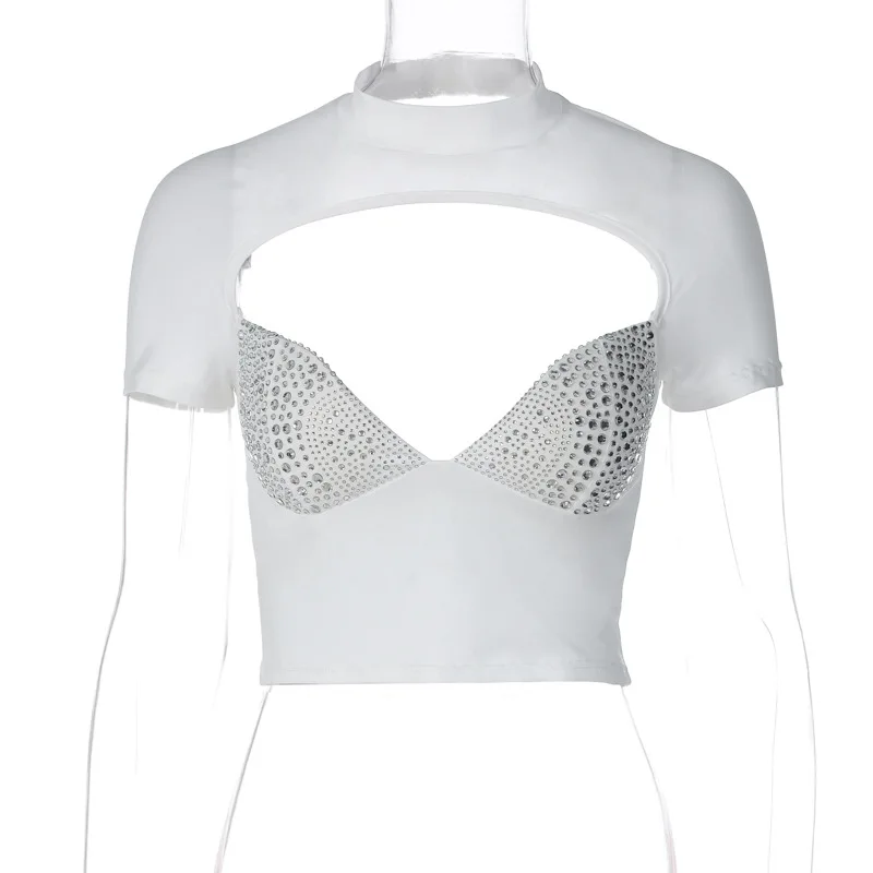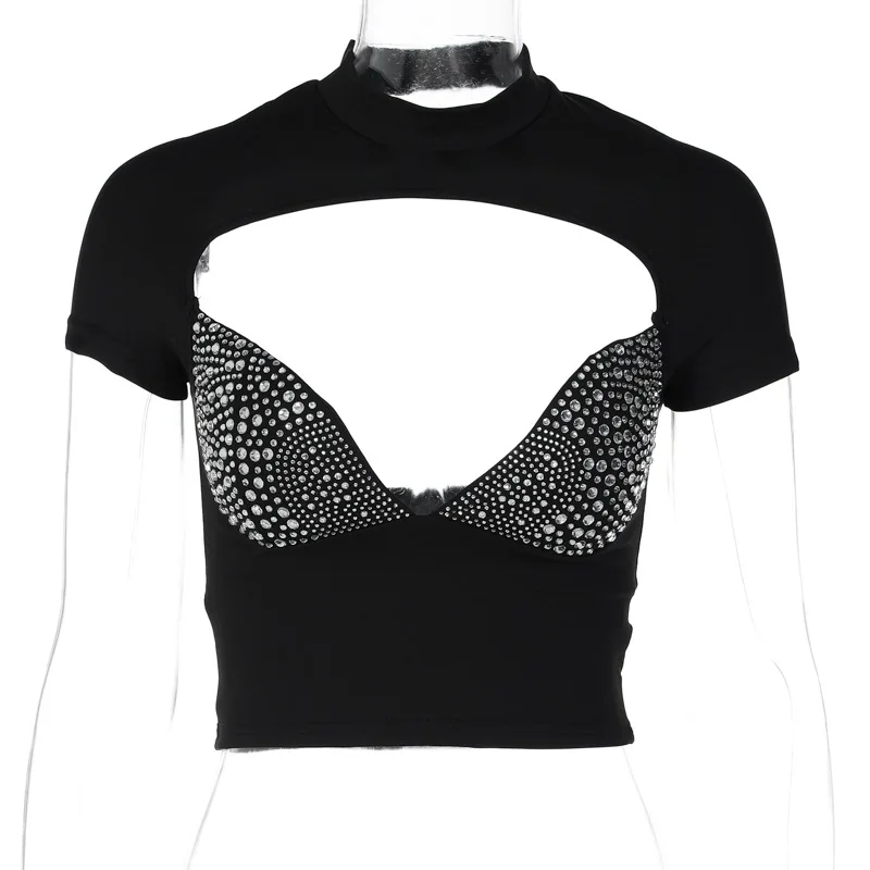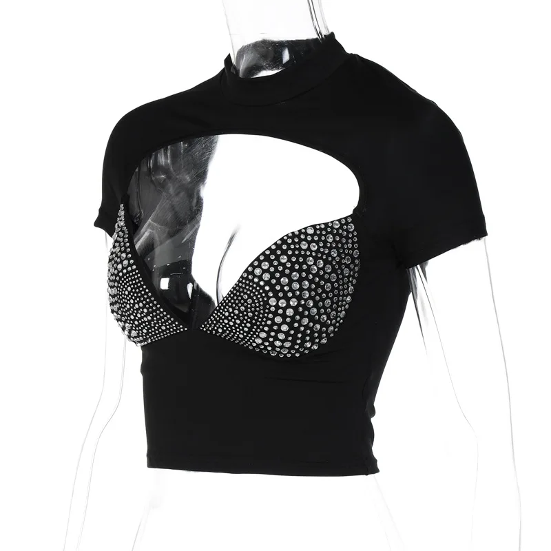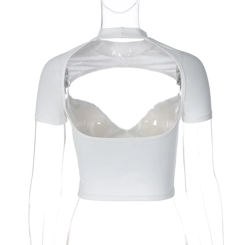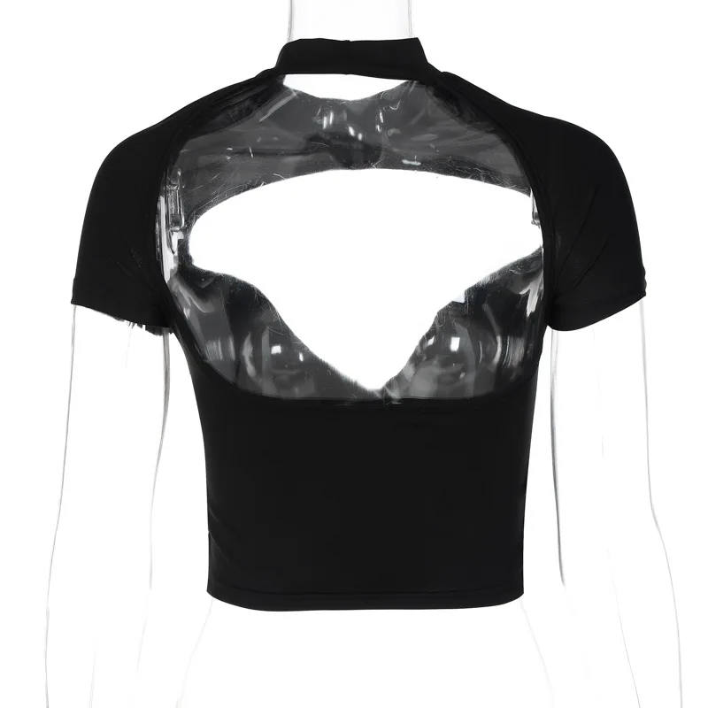 C0949 2023 Summer New Sexy Hollow out Fashion Short Sleeve T-shirt Crop Top Women