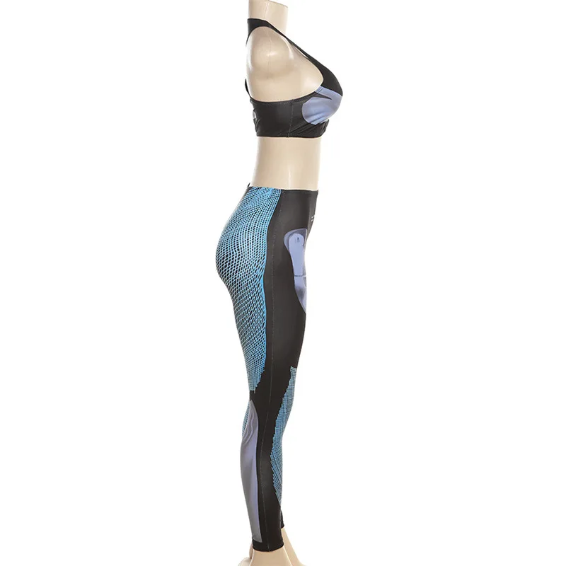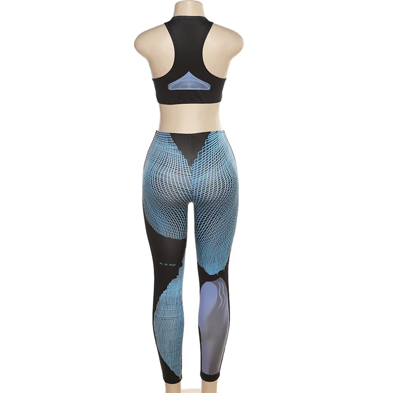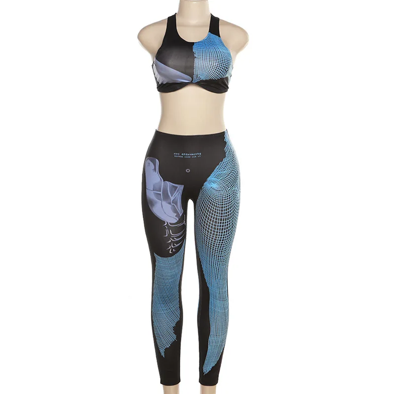 C1033 Summer Digital Printed Sleeveless Tank Top Slim Fit Sports Pants Women's Set