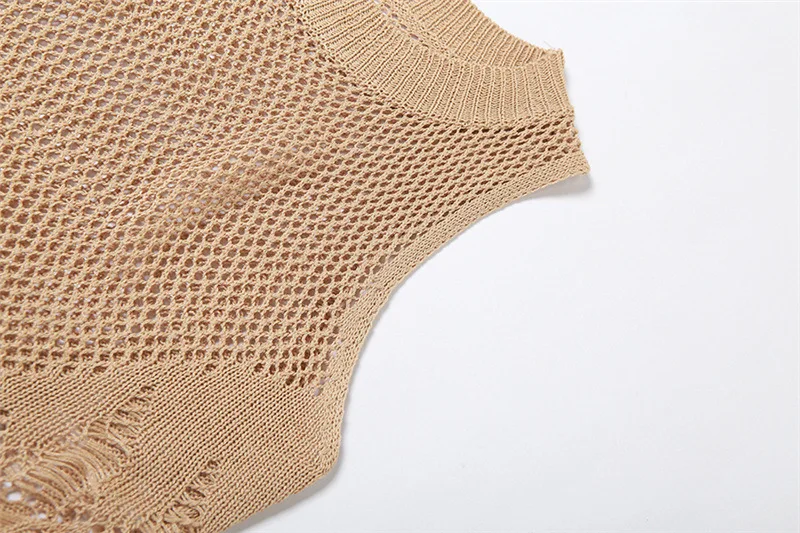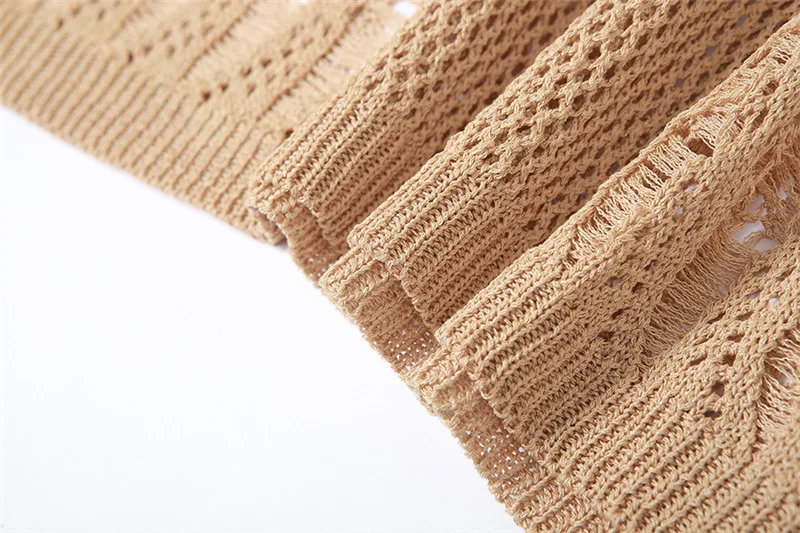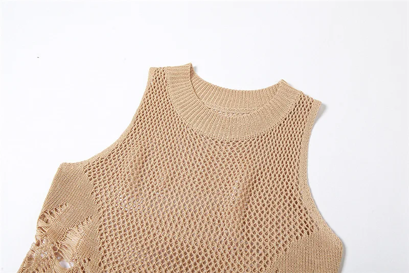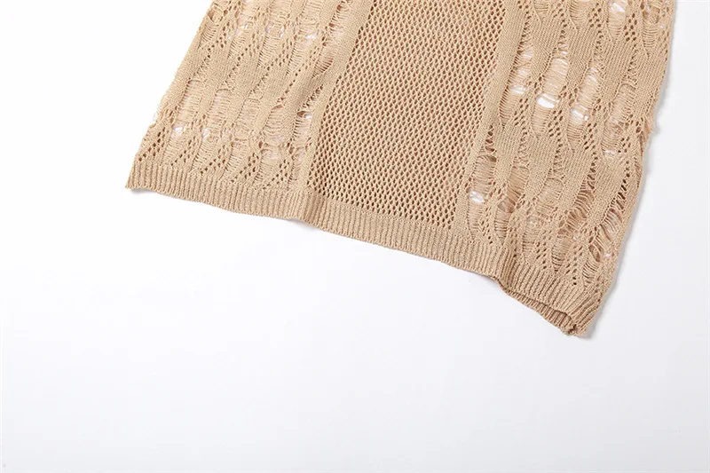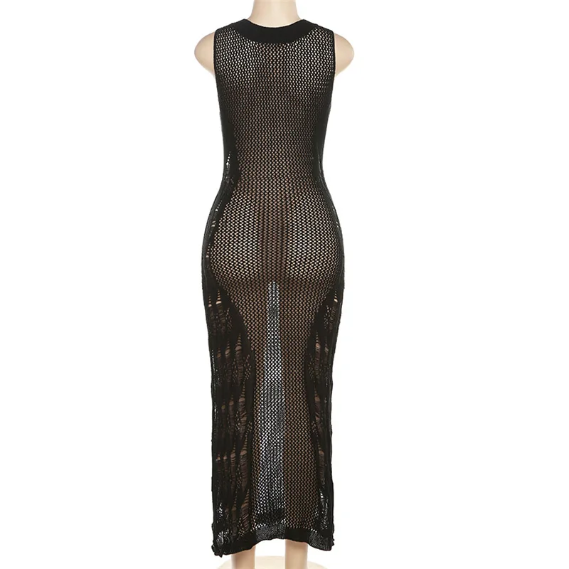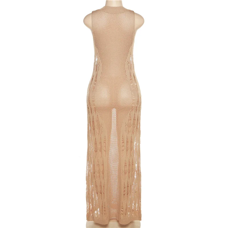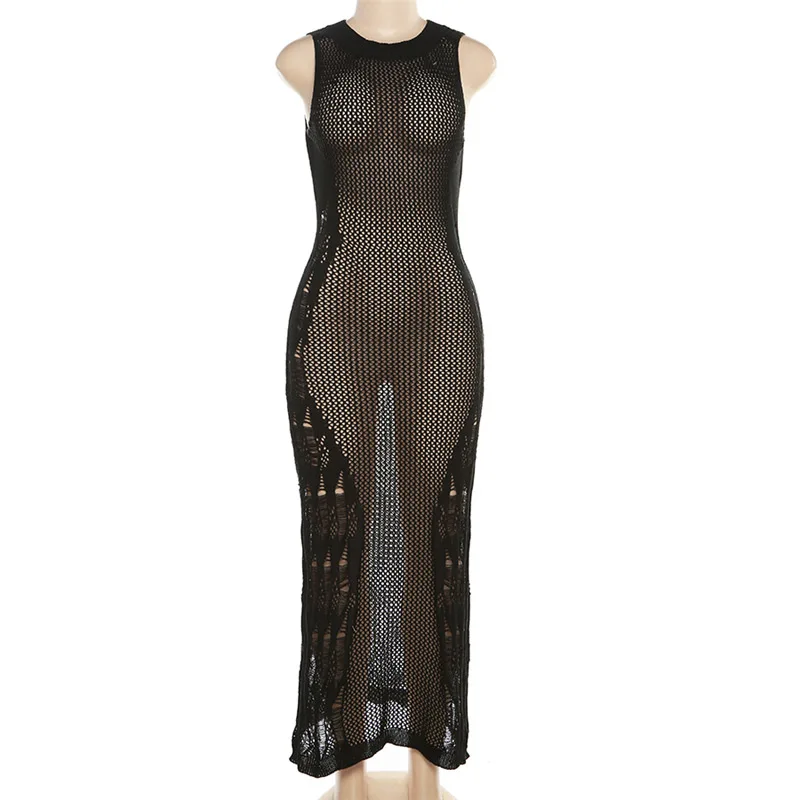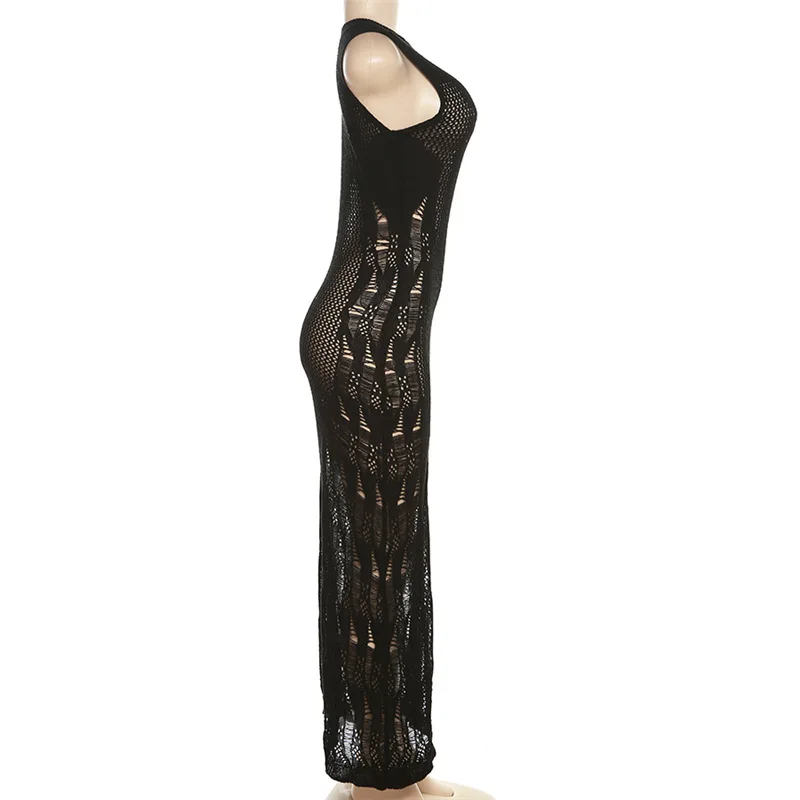 C1126 Summer Sexy Solid Sleeveless Hollow out Long Crochet Dress Knitted Beach Dress Women