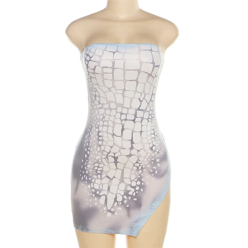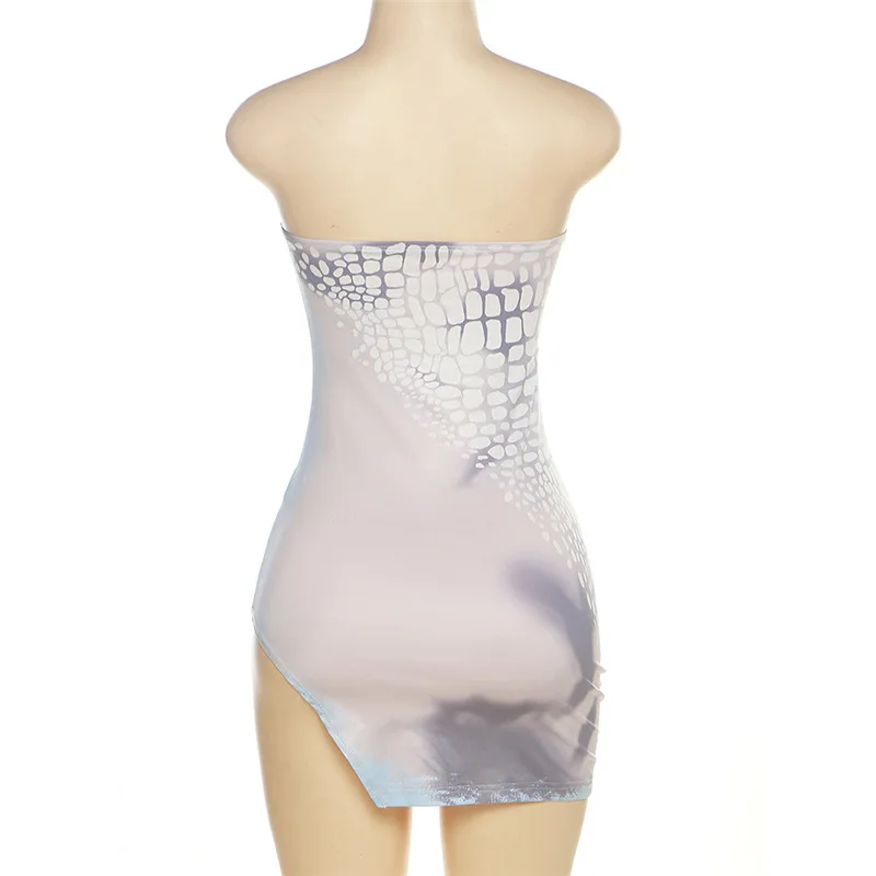 C1128 Summer Women's Fashion 3D Printing Spicy Girl Bra Open Back Split Hip Wrap Dress