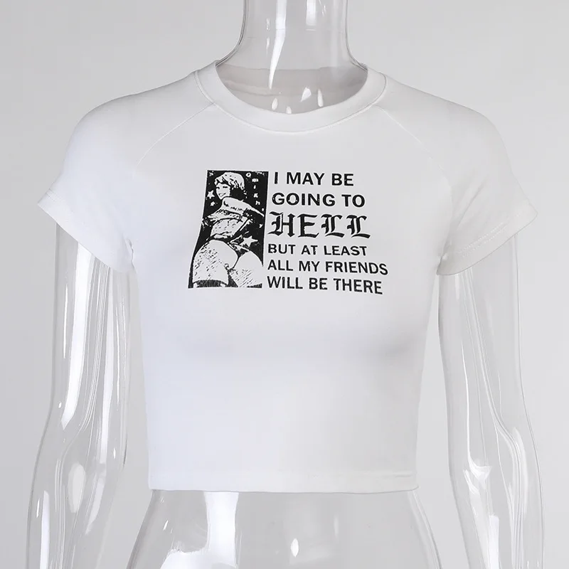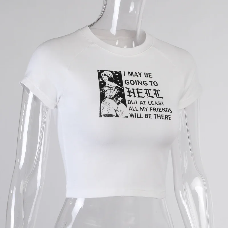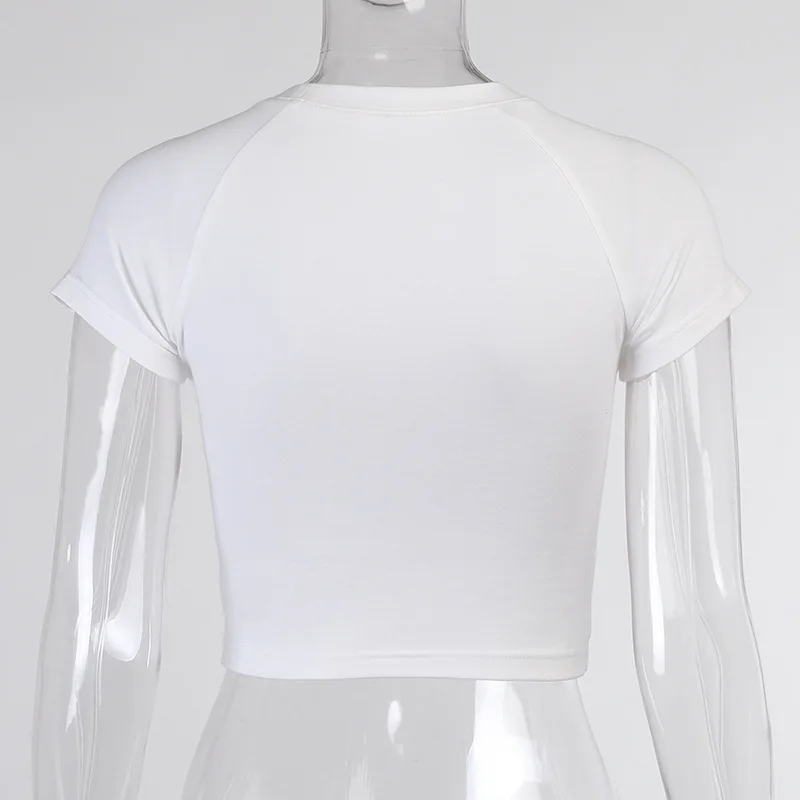 C1200 Summer Knitting Fashion Letter Printing Short Sleeve Crop Top Short T shirt Women