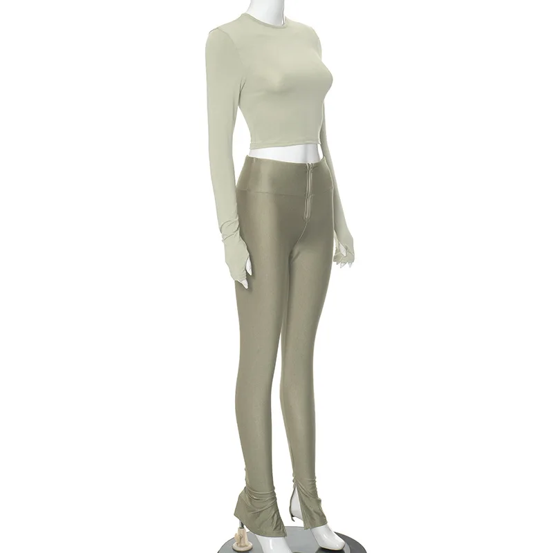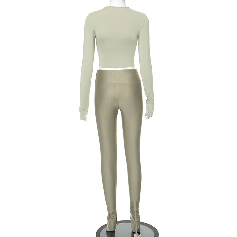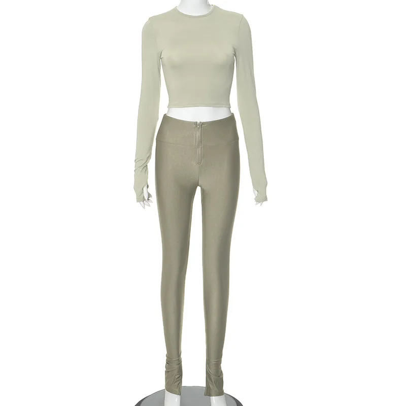 C1488 Winter new women's round neck long sleeved zippered pants casual two-piece set