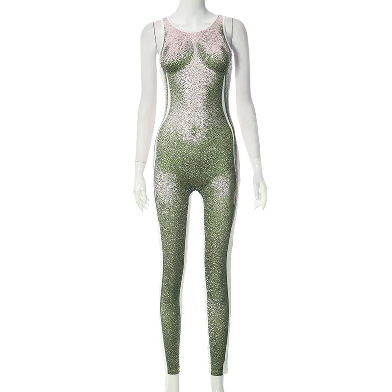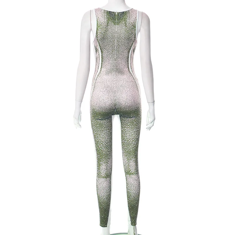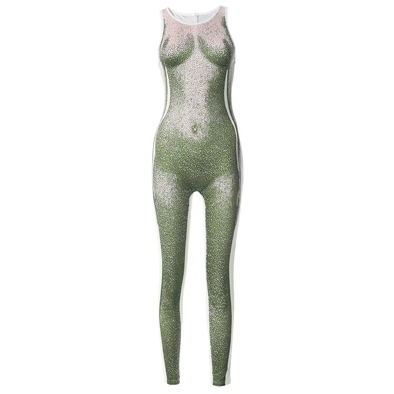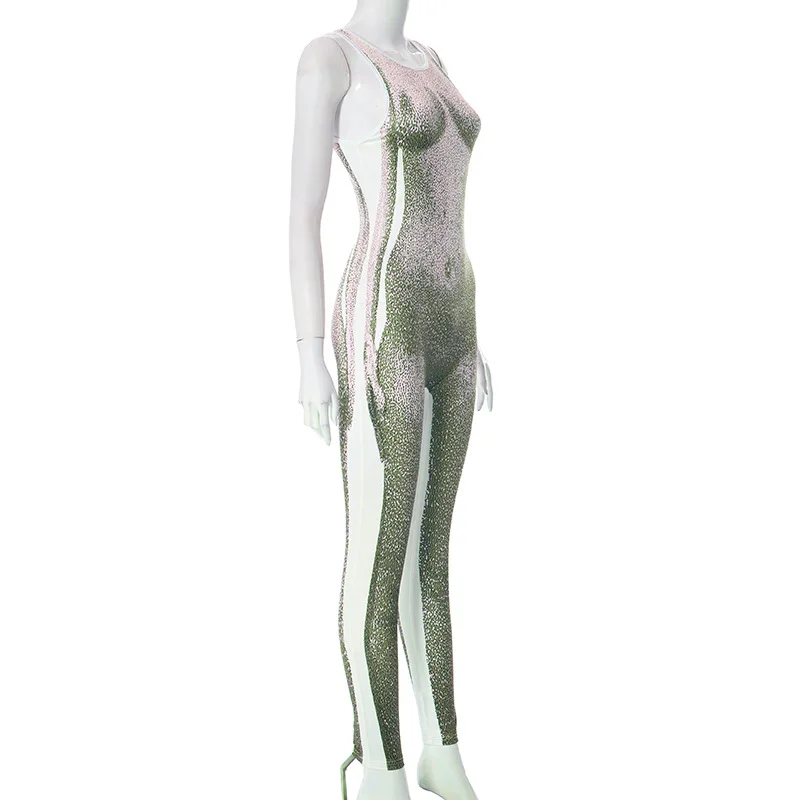 C1523 Hot selling sexy body print sleeveless round neck tight casual jumpsuit