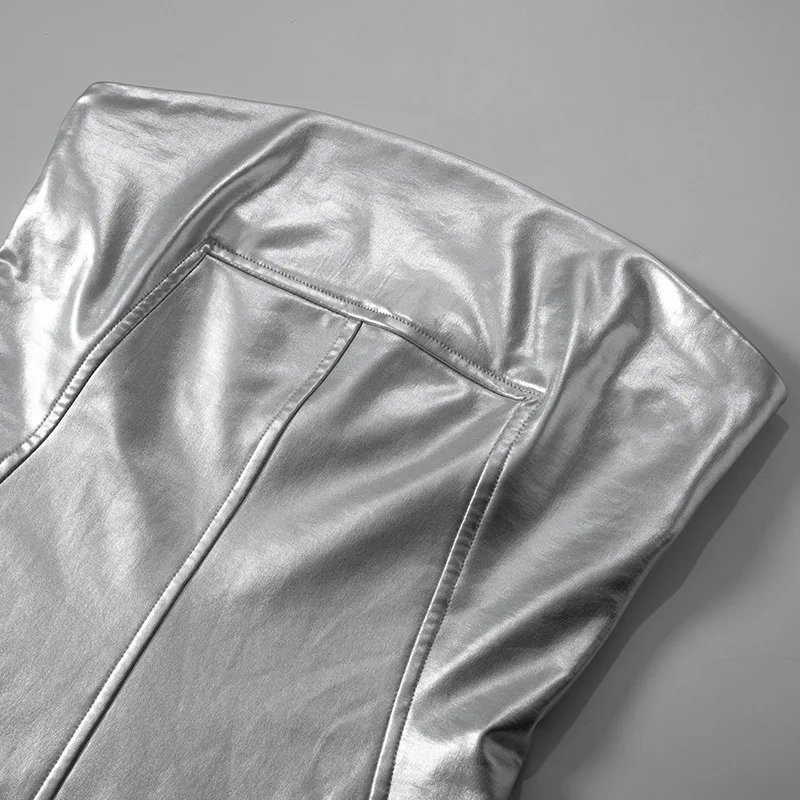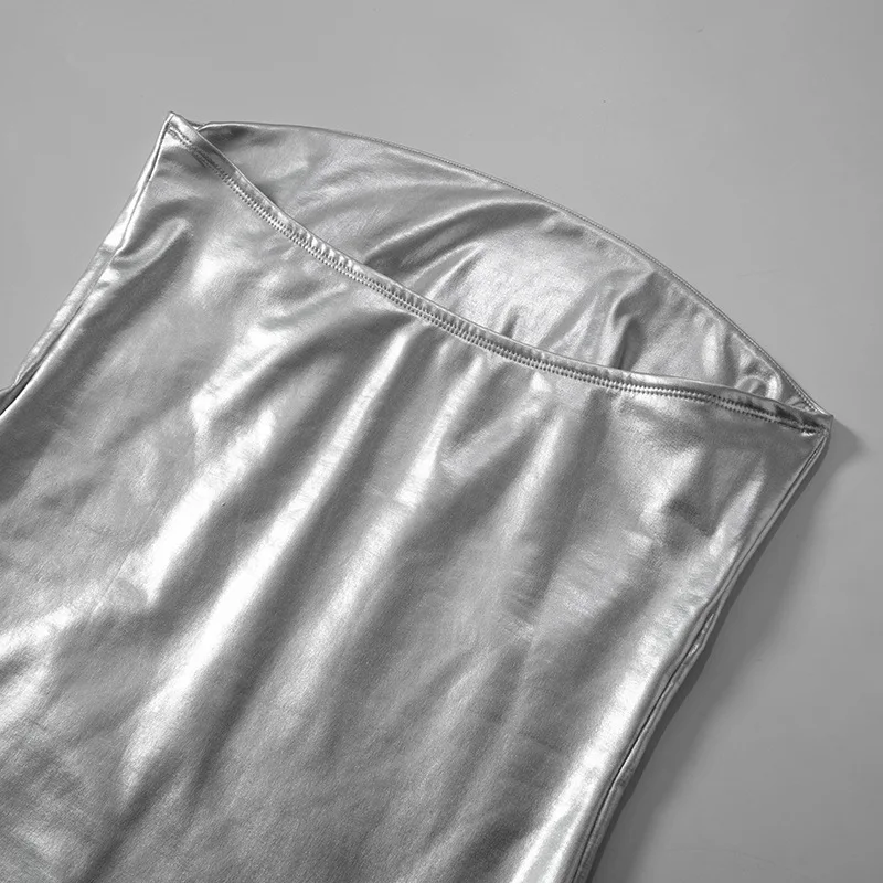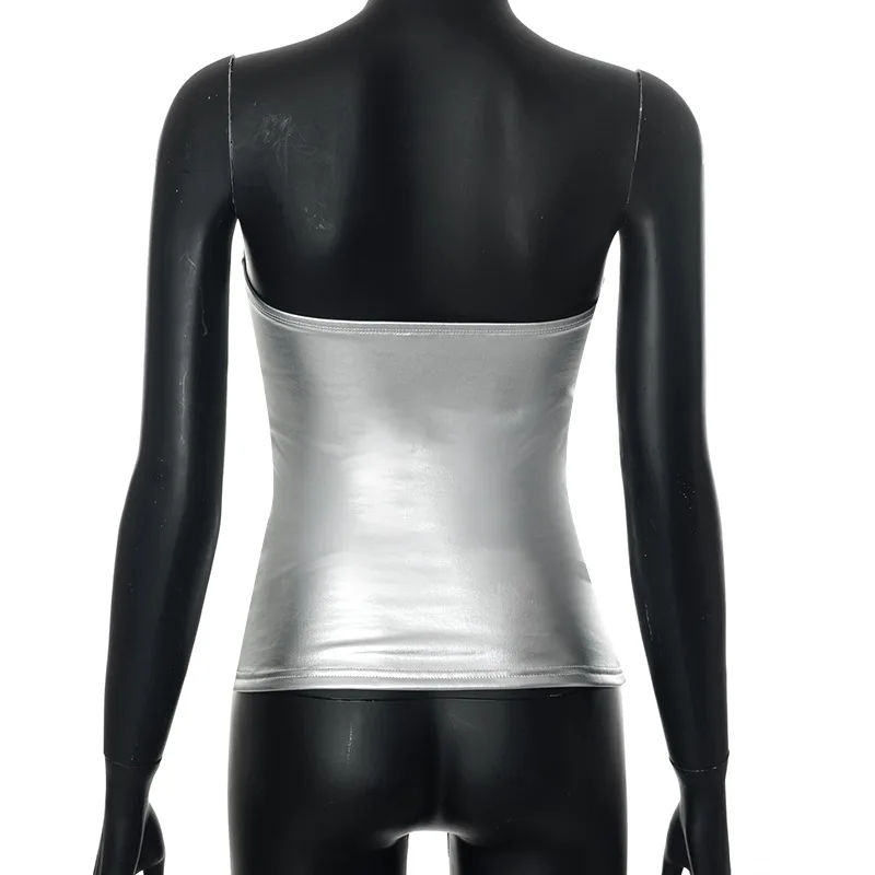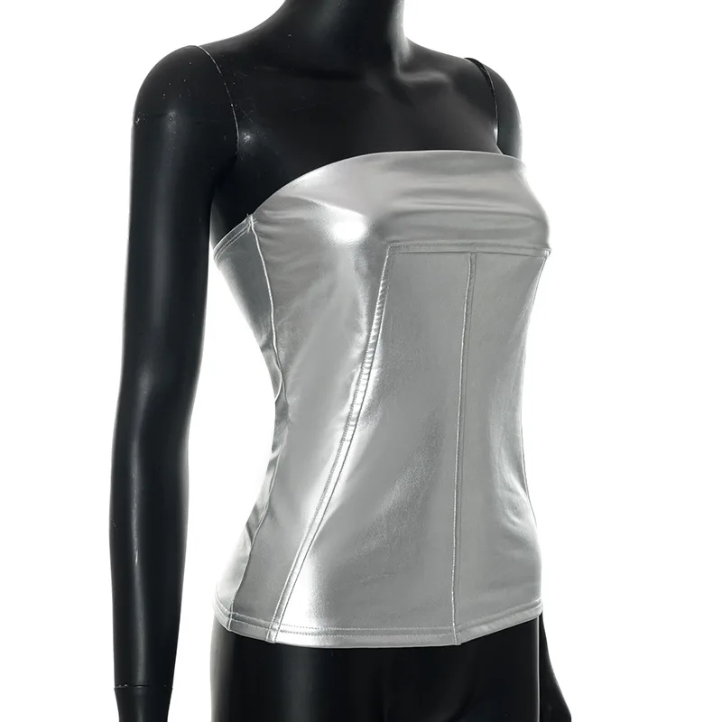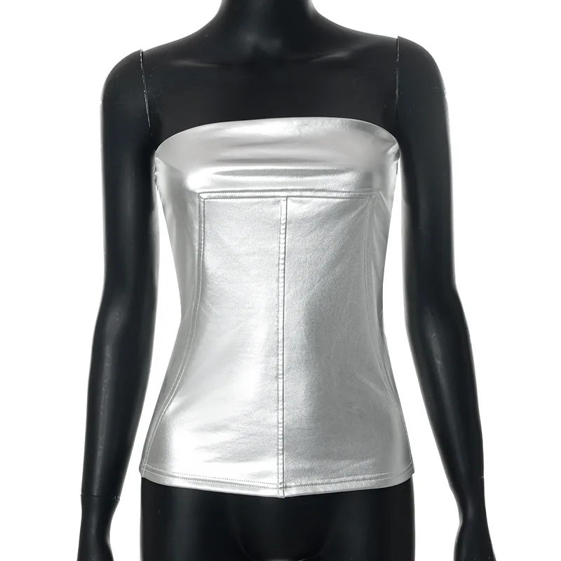 C1558 Spring New Solid Casual Off Shoulder Sleeveless Shiny Top Woman